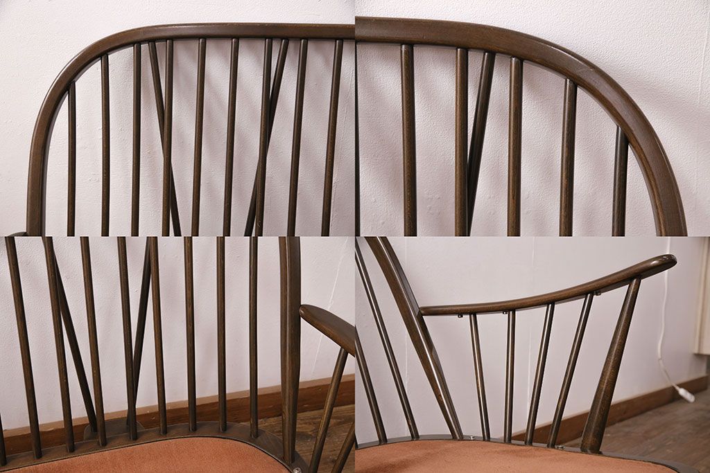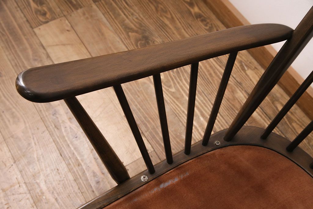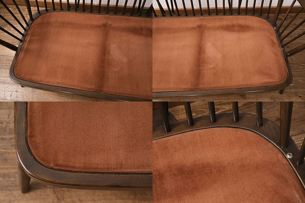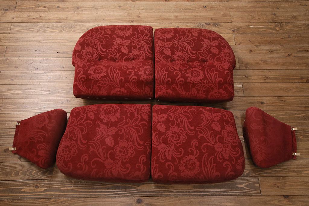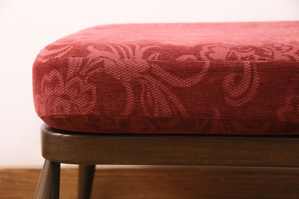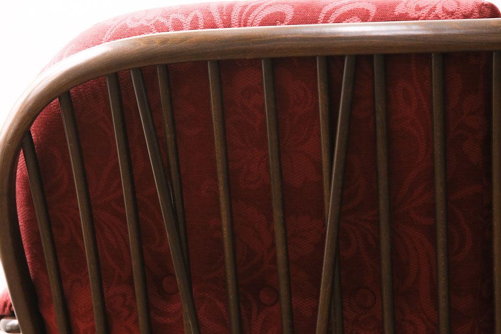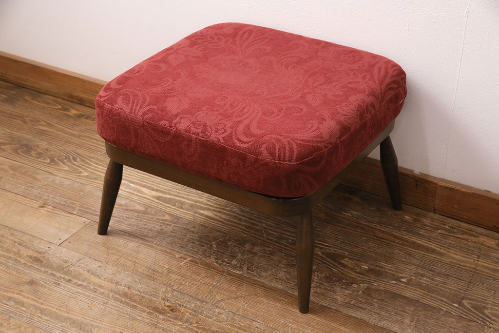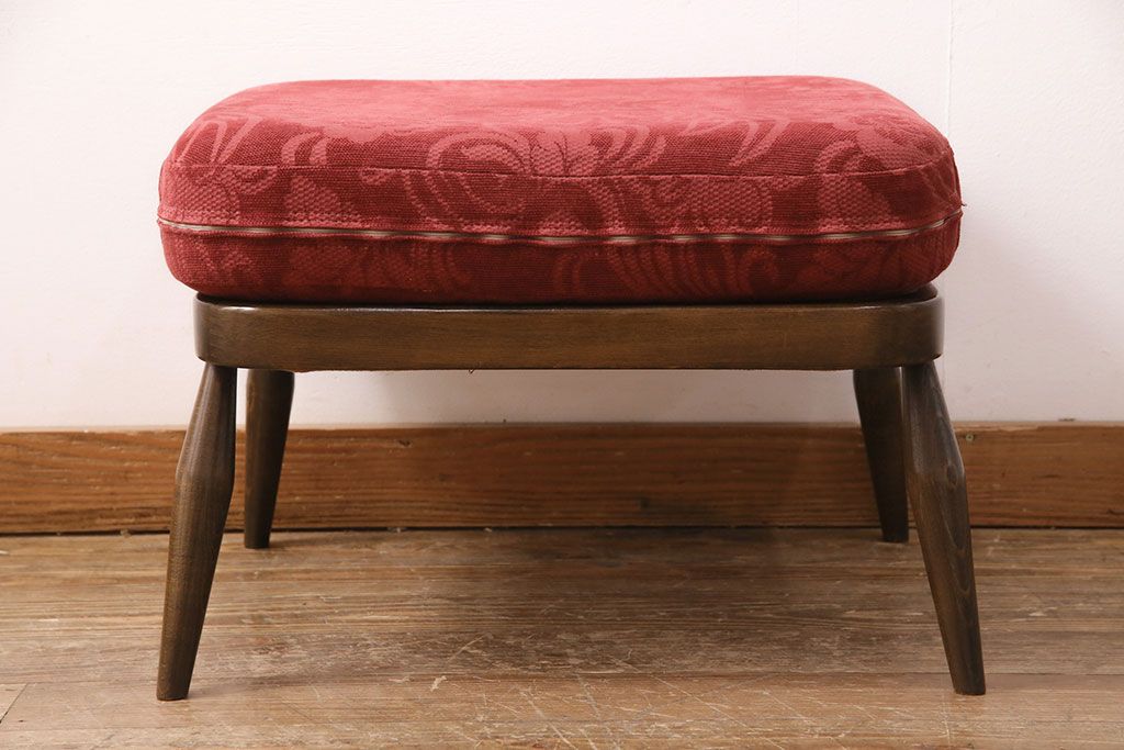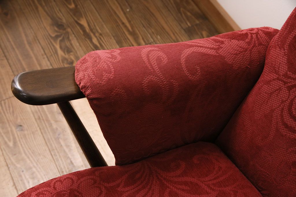 ラフジュ工房> ソファ> 2人掛けソファ > ヴィンテージ家具 ERCOL(アーコール) 艶やかなカラーが目を引くスツール(オットマン)付きビンテージ二人掛けソファ(アームソファ)(R-050062)