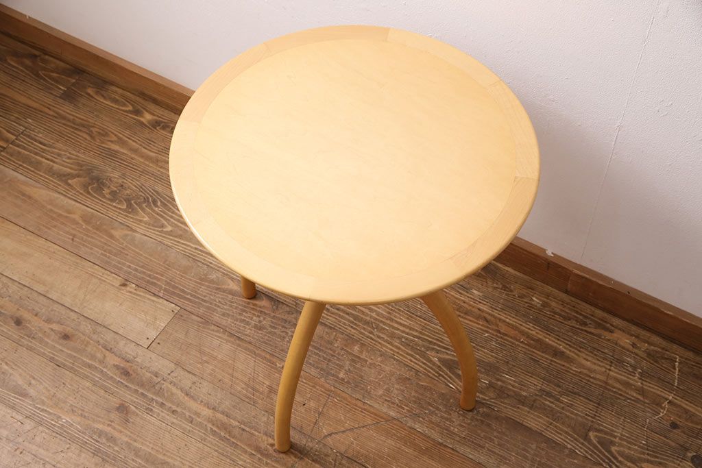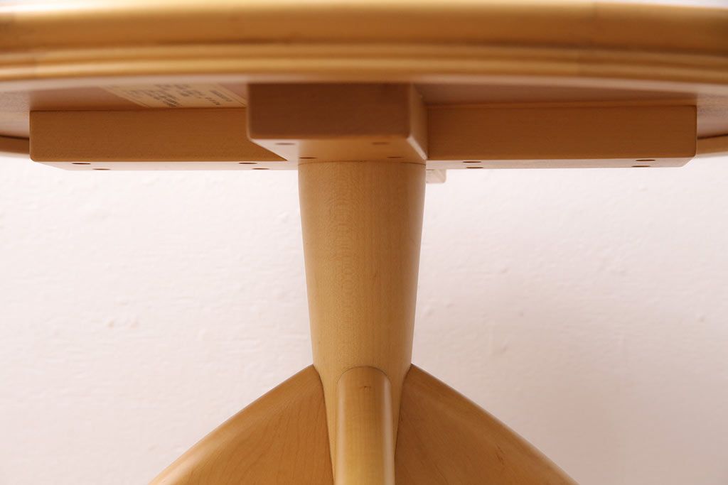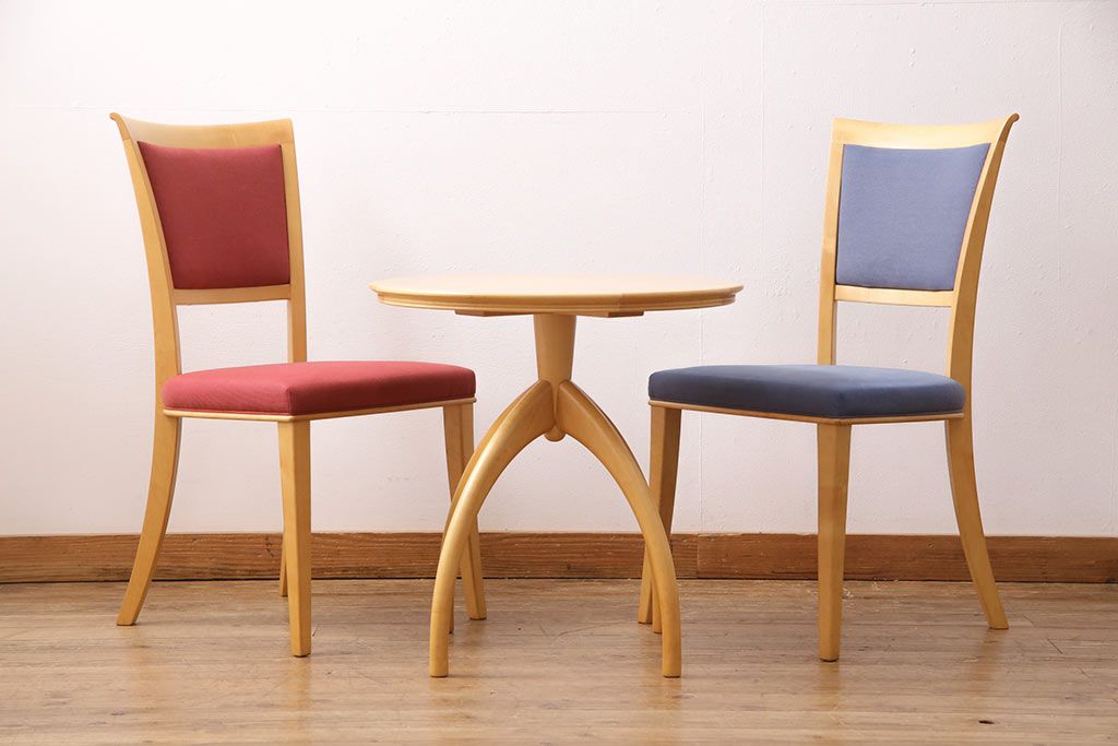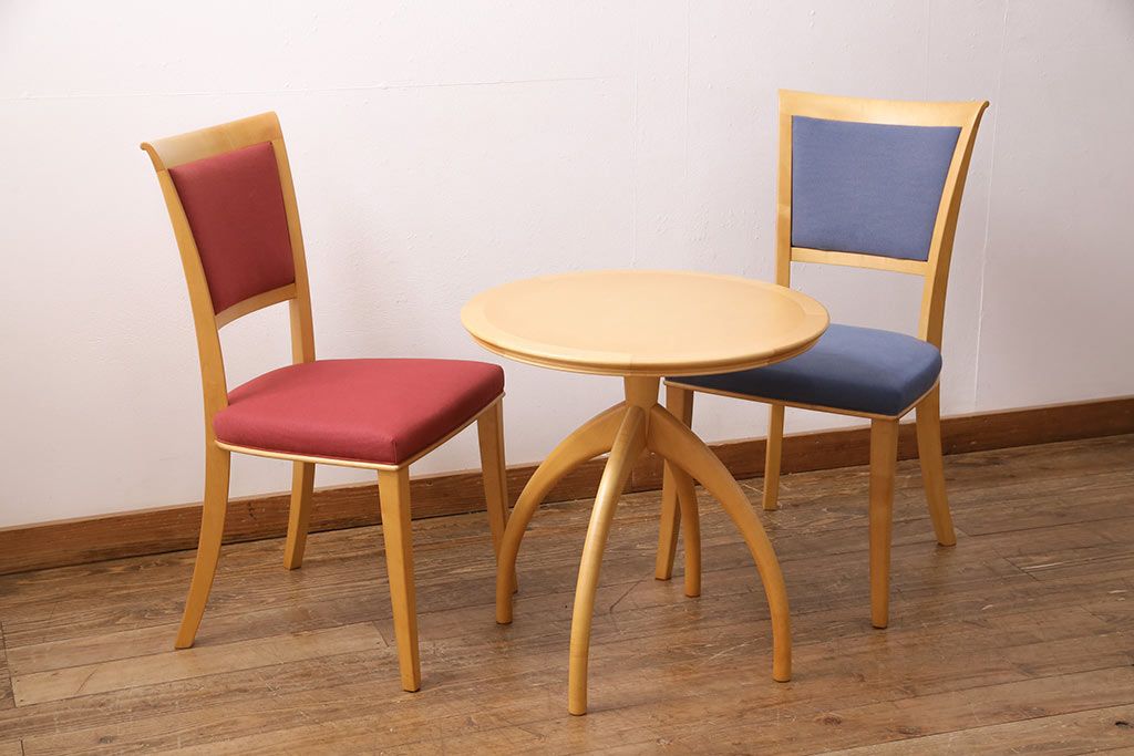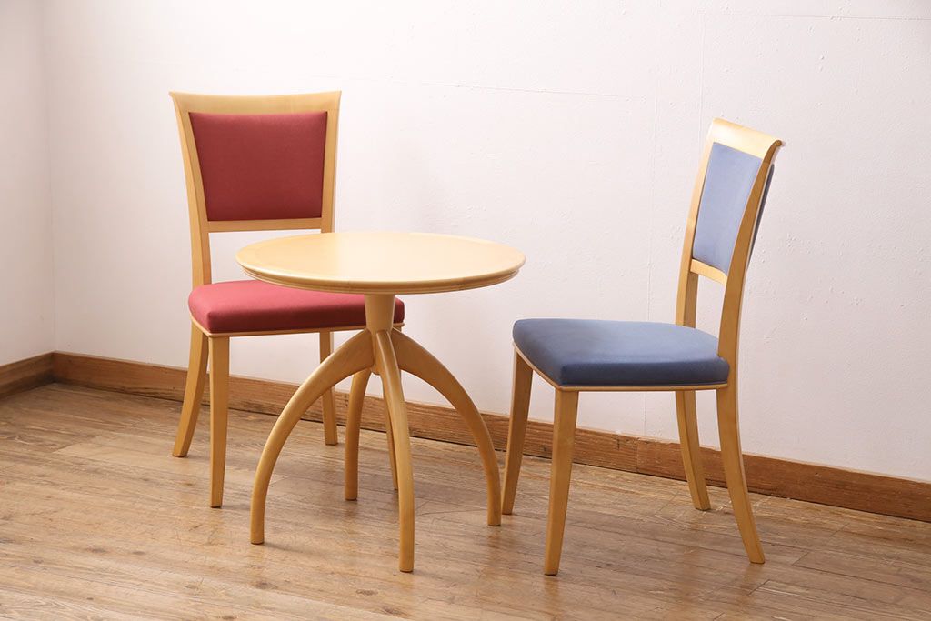 テーブル> 丸テーブル > 中古 滑らかな木肌が魅力のテーブル、チェア2脚セット(CONDE HOUSE、カンディハウス)(コーヒーテーブル、サイドテーブル、ラウンドテーブル、ダイニングチェア)(R-049726)