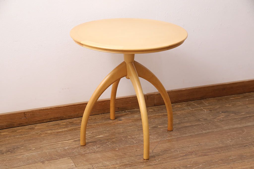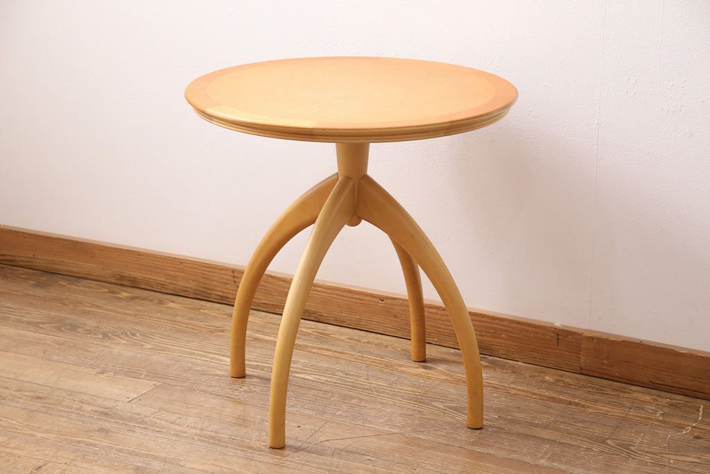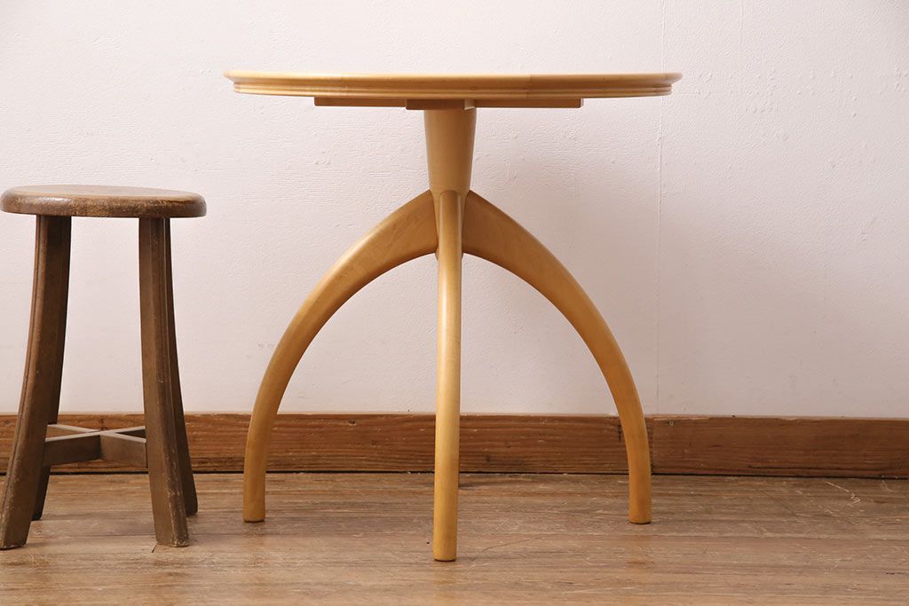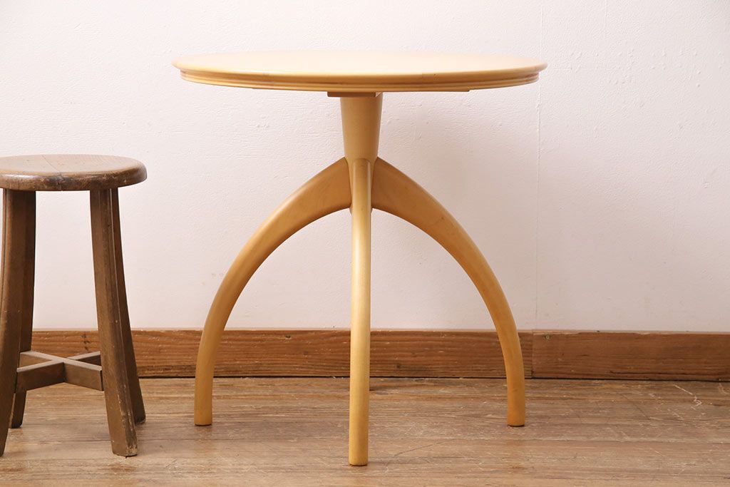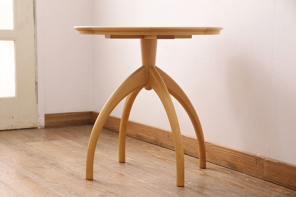 テーブル> 丸テーブル > 中古 滑らかな木肌が魅力のテーブル、チェア2脚セット(CONDE HOUSE、カンディハウス)(コーヒーテーブル、サイドテーブル、ラウンドテーブル、ダイニングチェア)(R-049726)