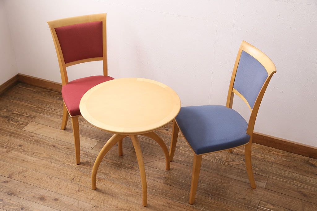 テーブル> カフェテーブル・コーヒーテーブル > 中古 滑らかな木肌が魅力のテーブル、チェア2脚セット(CONDE HOUSE、カンディハウス)(コーヒーテーブル、サイドテーブル、ラウンドテーブル、ダイニングチェア)(R-049726)