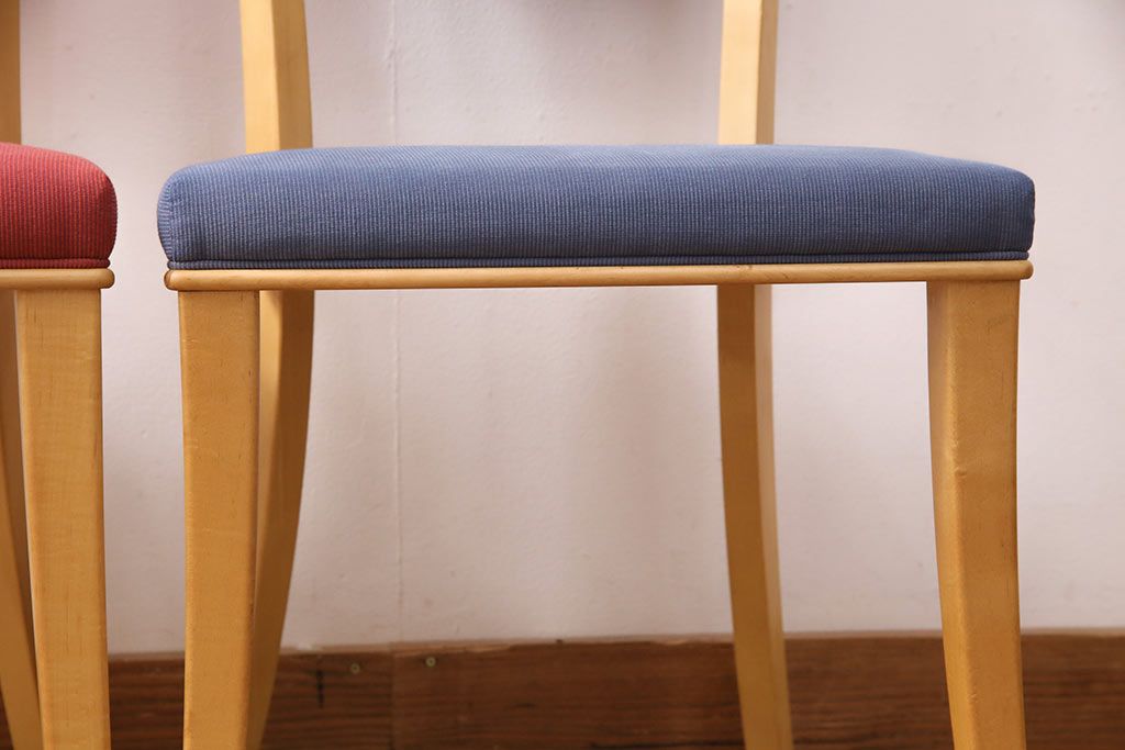 1枚目の画像にあるチェア2脚のうち、1脚のみ計測致しました。各サイズ、重量は1枚の数値を記載しておりますので、そちらをご参考ください。