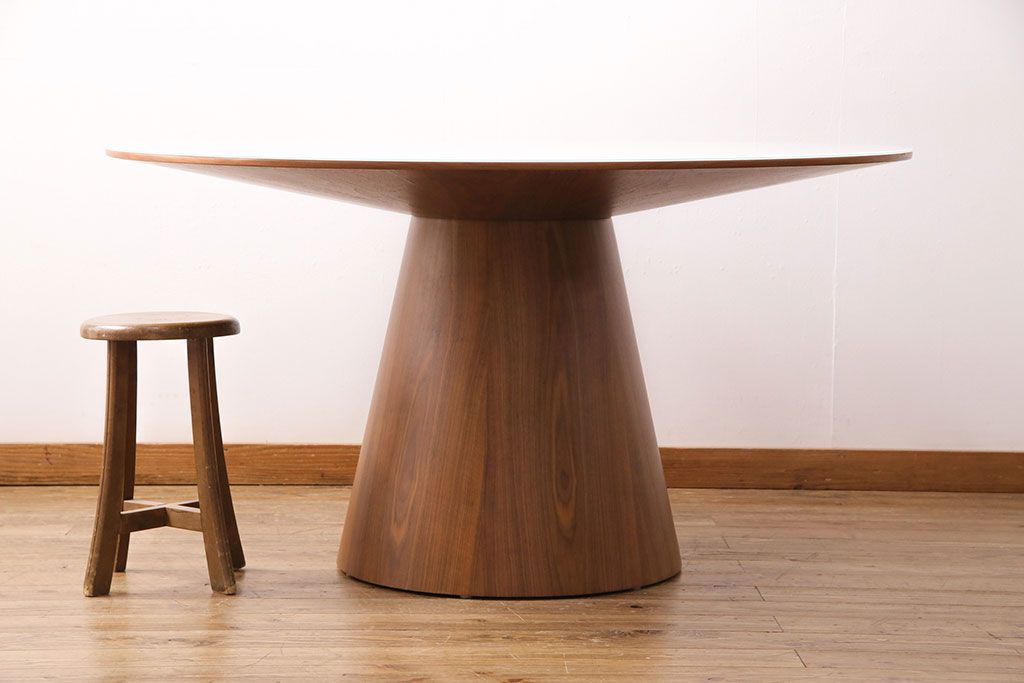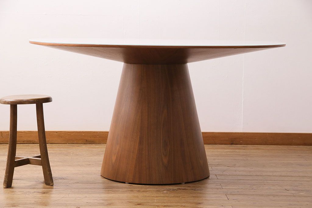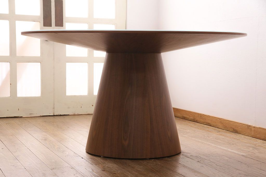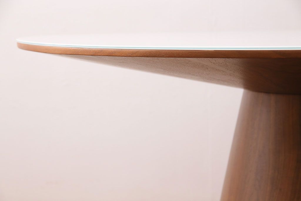 中古 ARMONIA(アルモニア) Piane ガラス天板付き スタイリッシュなデザインが魅力のダイニングテーブル(ラウンドテーブル)(定価約12万円)(R-049609)です。