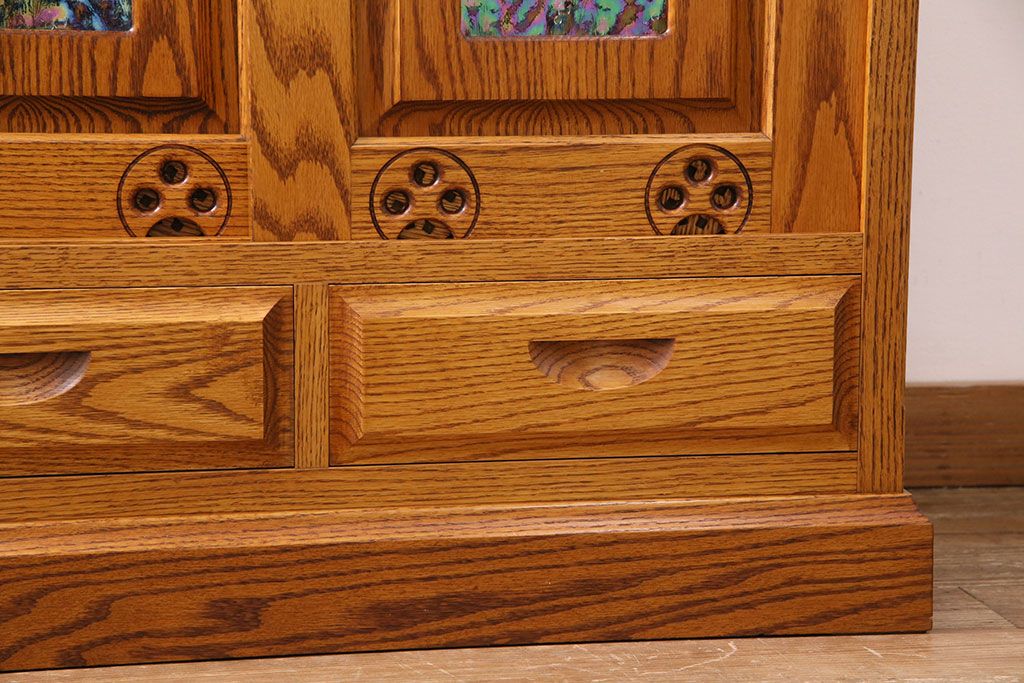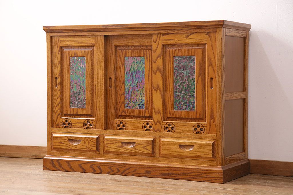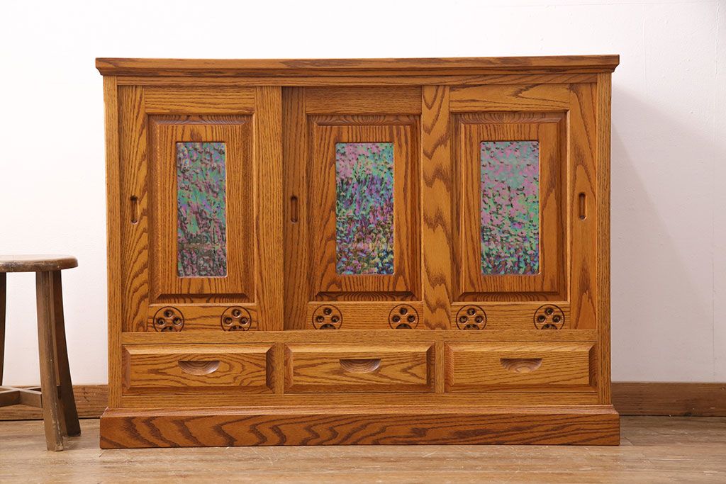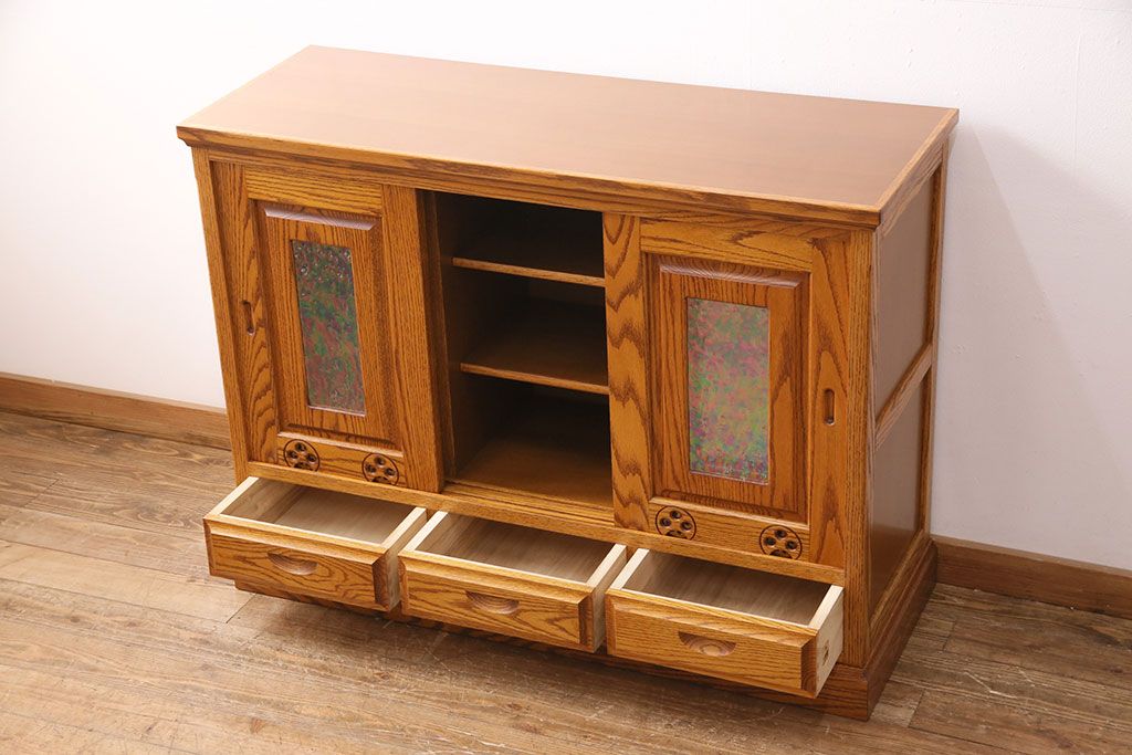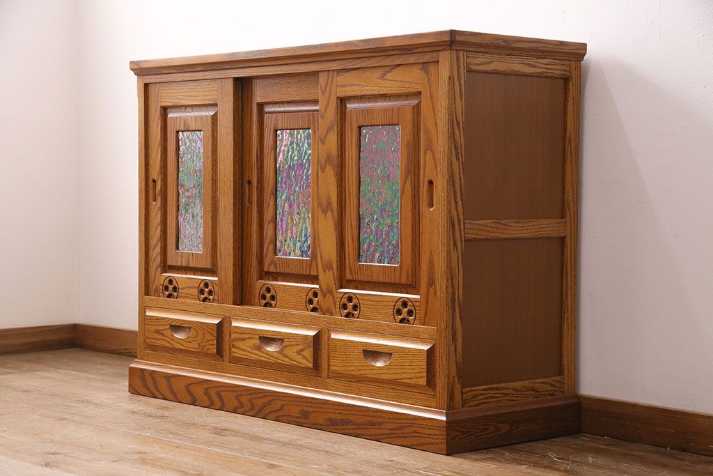 中古 美品 工房我楽堂 拭き漆仕上げが上質さを高める栗材製戸棚(定価約37万円)(収納棚、サイドボード、キャビネット)(R-049915)