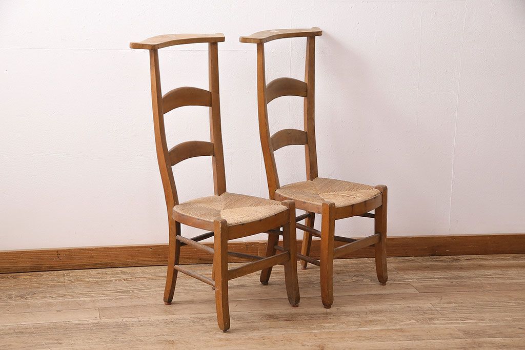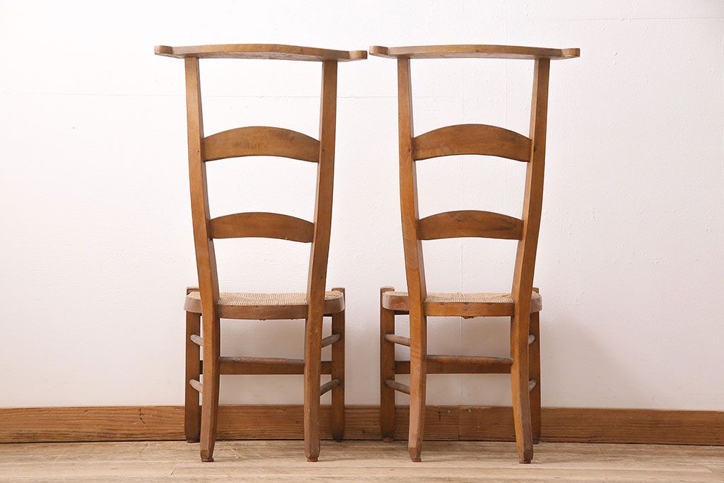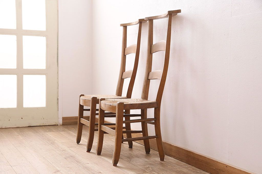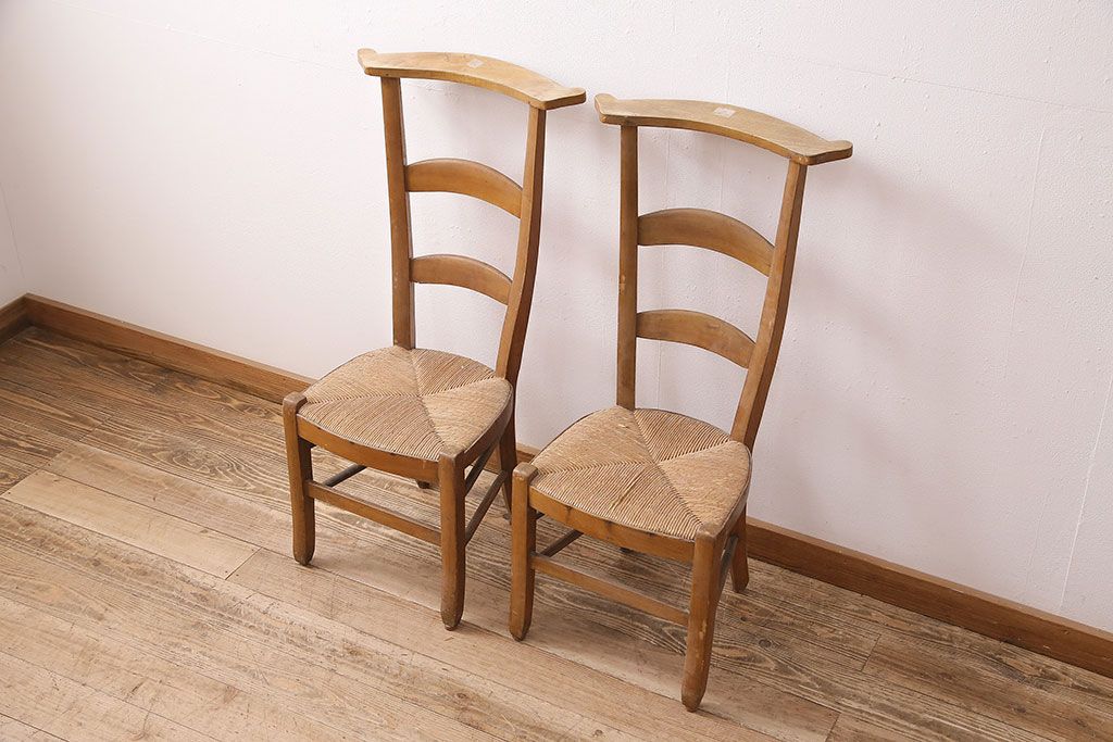 椅子・ベンチ> ダイニングチェア > 【簡易リペア限定品】イギリスアンティーク ビーチ材 編み座面のフレンチチャーチチェア2脚セット(椅子、ダイニングチェア、イス)(R-048852)