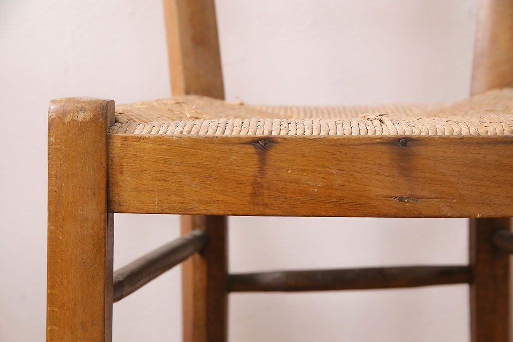 椅子・ベンチ> チャーチチェア > 【簡易リペア限定品】イギリスアンティーク ビーチ材 編み座面のフレンチチャーチチェア2脚セット(椅子、ダイニングチェア、イス)(R-048852)