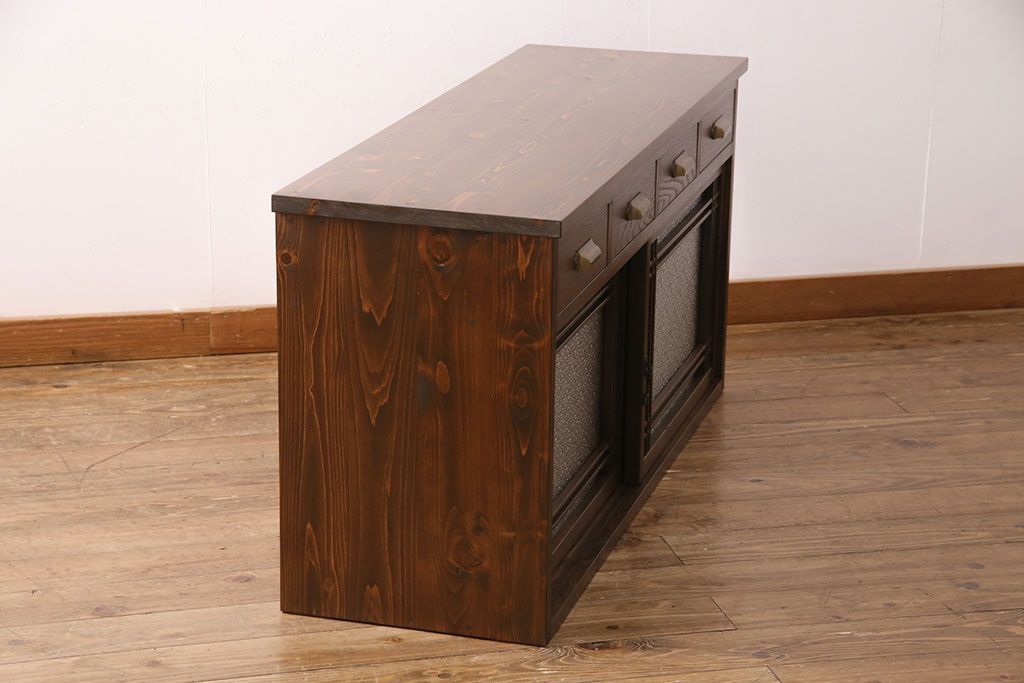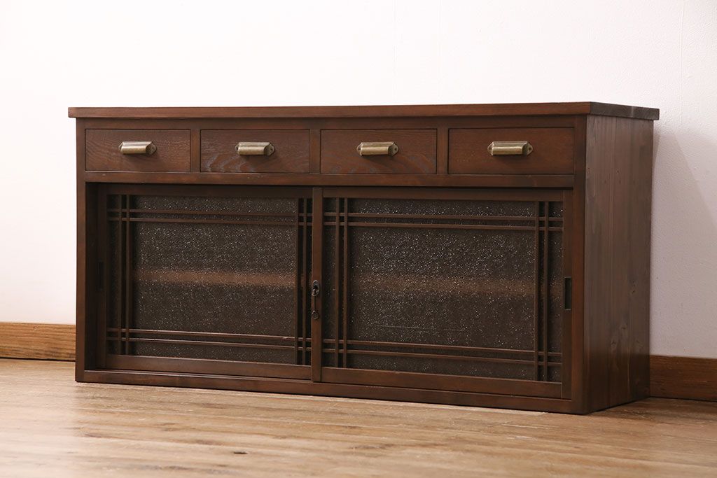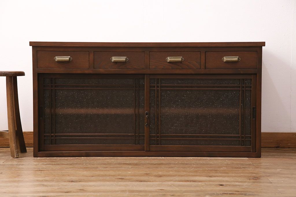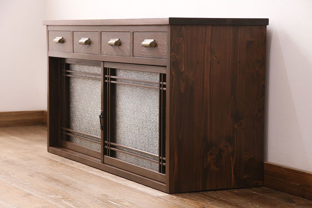 昭和初期のリビングボードをリペア&カスタム!鉄脚を取り外し、建具のガラスをダイヤガラスに入れ替え。(収納棚、戸棚、サイドボード)