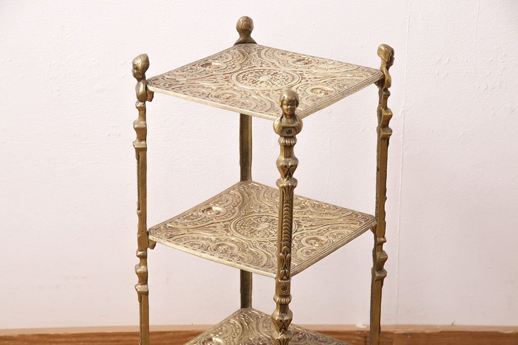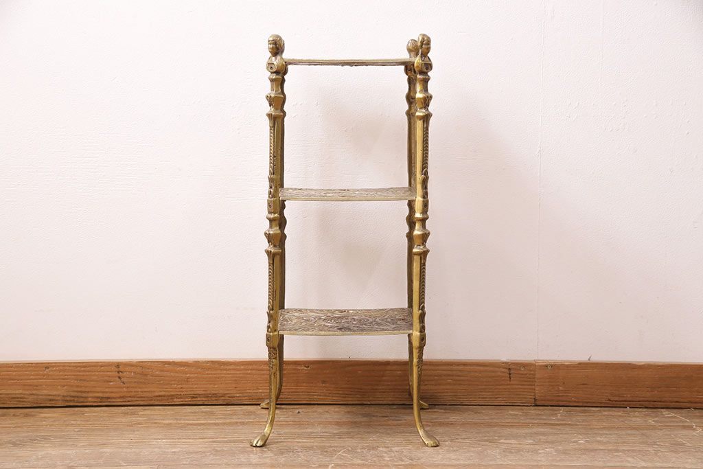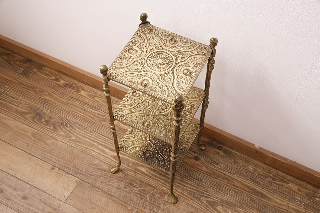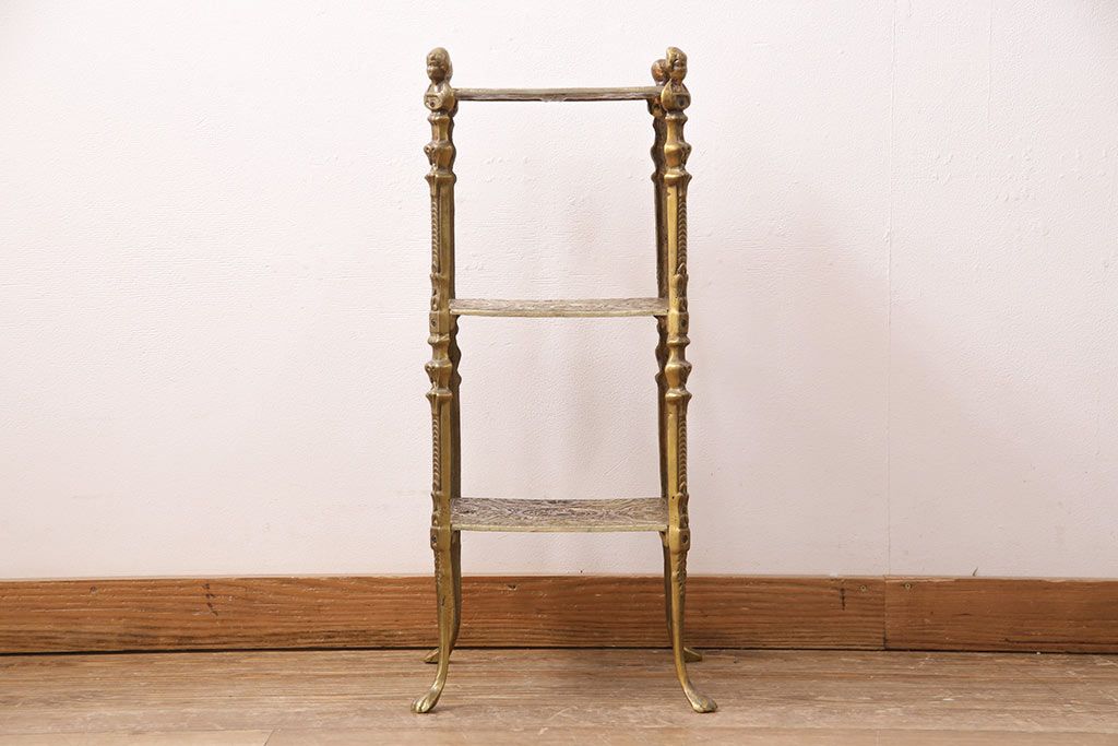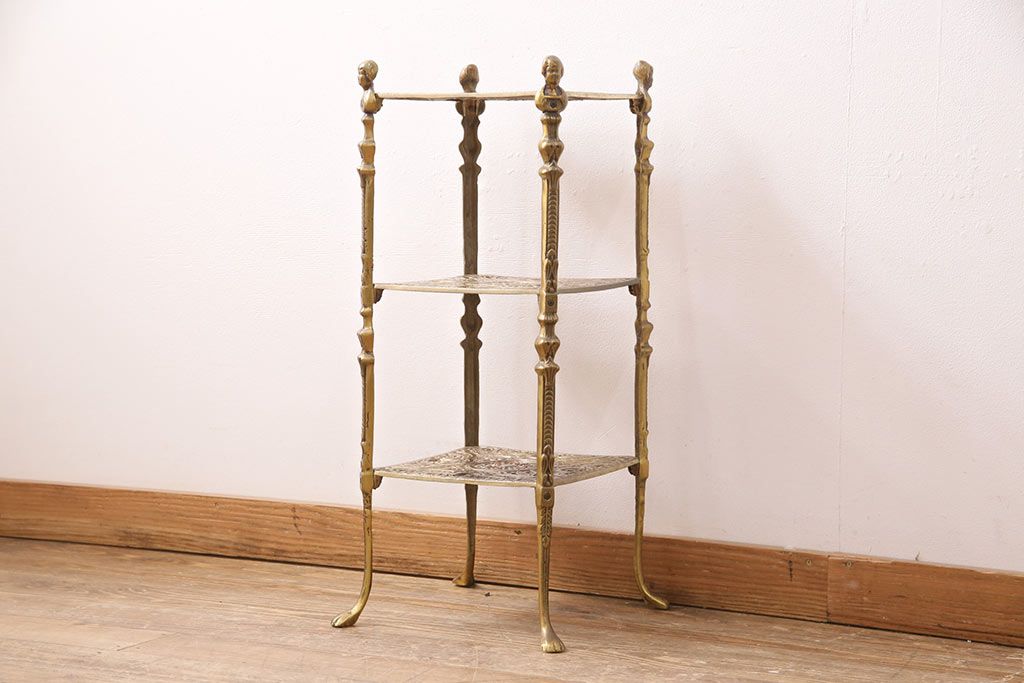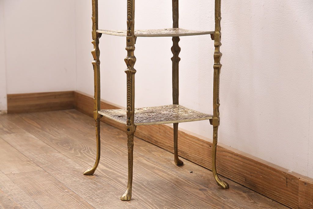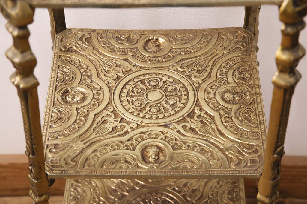 和製ビンテージ 高級品 優雅な雰囲気を醸し出す真鍮製飾り棚(飾り台、花台、ヴィンテージ)(R-050075)