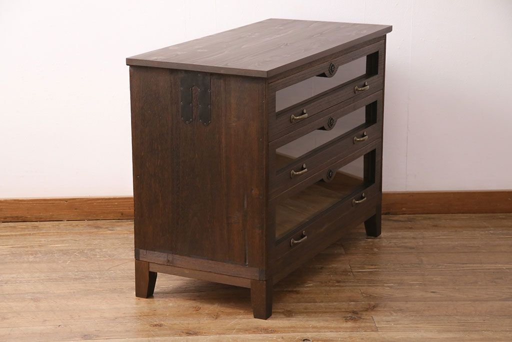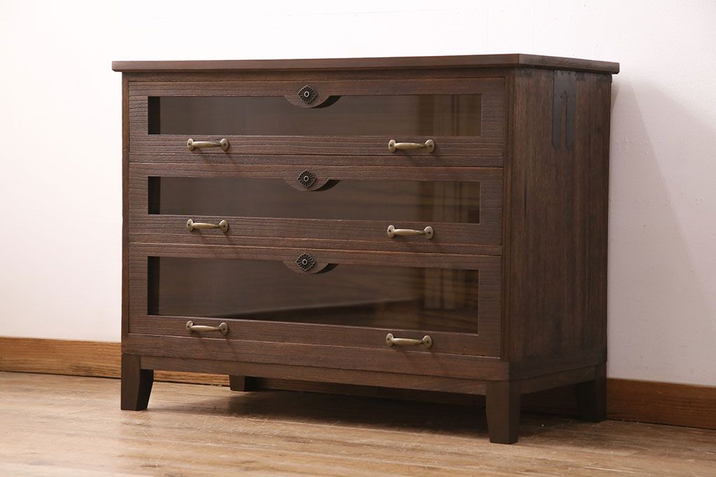 和箪笥 > 和製アンティーク 桐箪笥リメイク 前面ガラス製 スタイリッシュな佇まいが目を引くリビングボード(引き出し、チェスト、シャツケース、テレビ台、桐たんす)(R-050071)