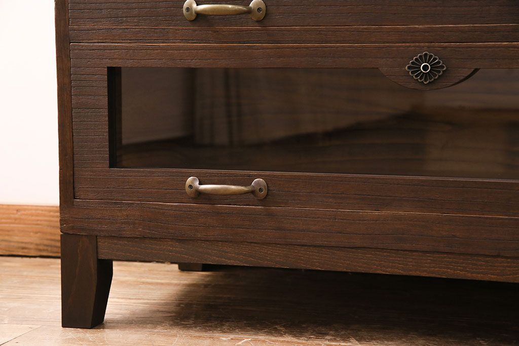 和製アンティーク 桐箪笥リメイク 前面ガラス製 スタイリッシュな佇まいが目を引くリビングボード(引き出し、チェスト、シャツケース、テレビ台)(R-050071)です。