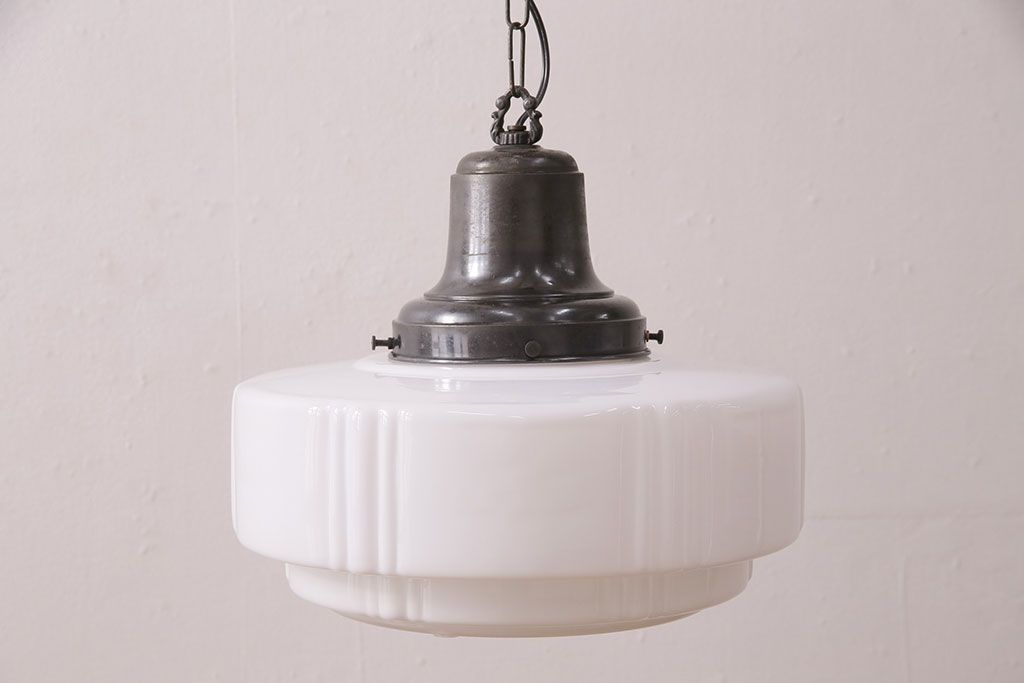 アンティーク照明 プレスガラスがおしゃれなペンダントライト(吊り下げ照明、天井照明、シェード)(R-050086)です。