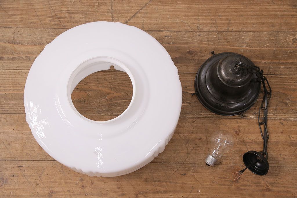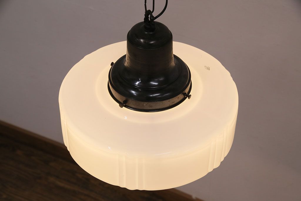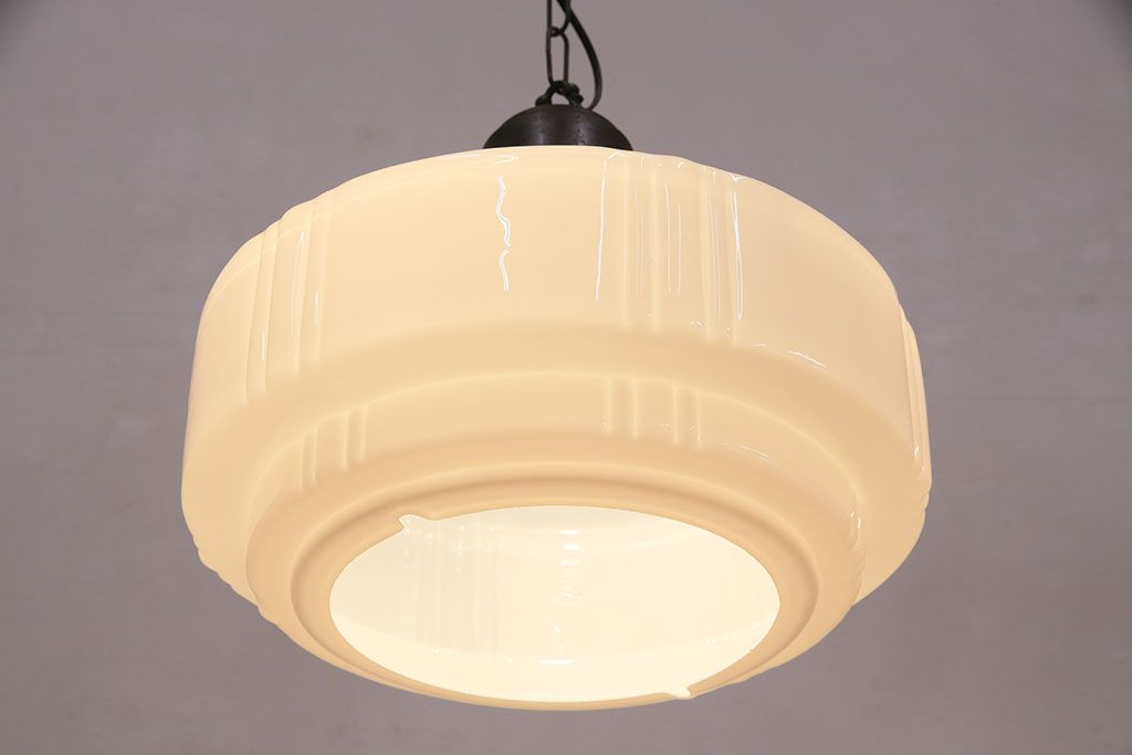 アンティーク照明 プレスガラスがおしゃれなペンダントライト(吊り下げ照明、天井照明、シェード)(R-050086)