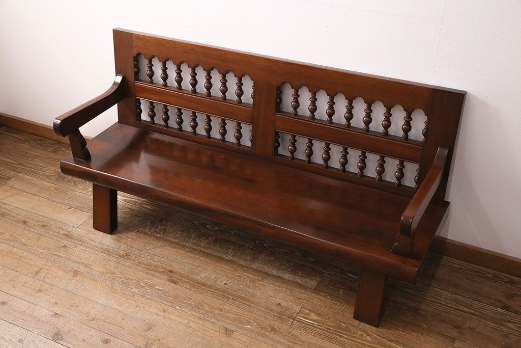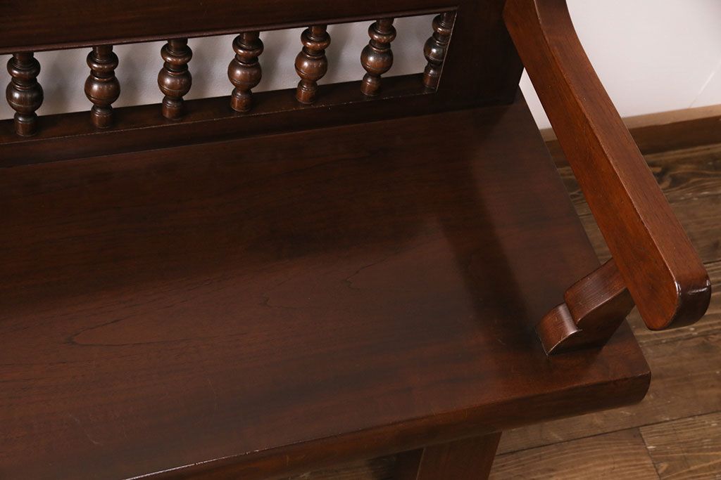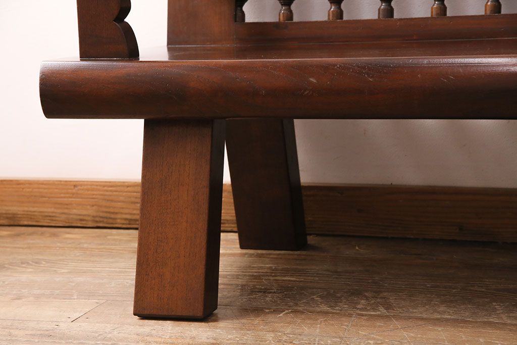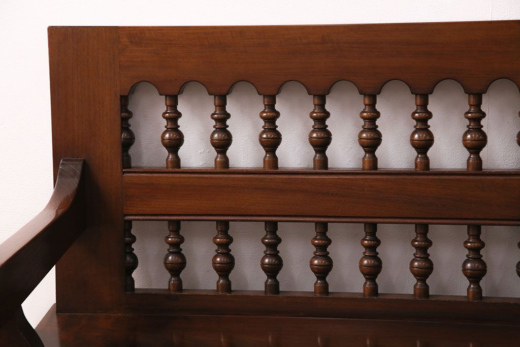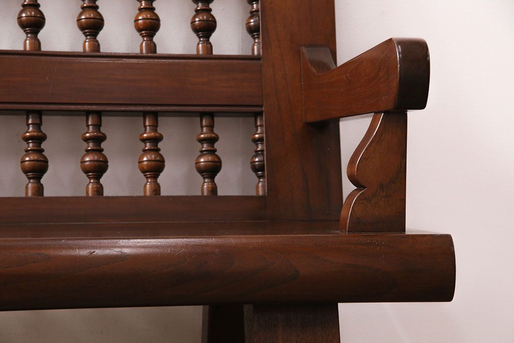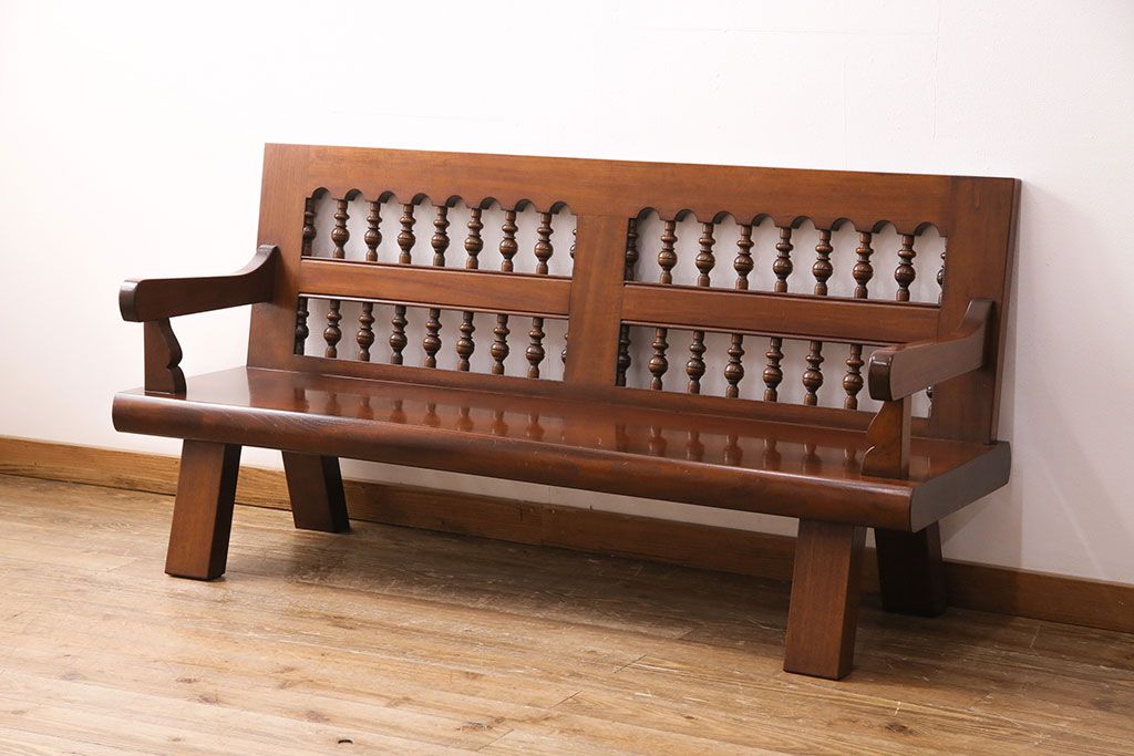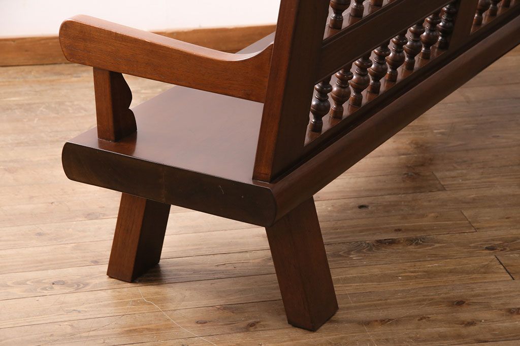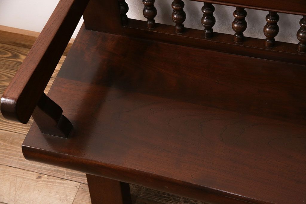 民芸家具 > 中古 激レア! 特注品 九州民芸家具 漆塗りが美しいスピンドルベンチ(アーム付きベンチ、3人掛け、三人掛け)(定価約75万円)(R-050310)