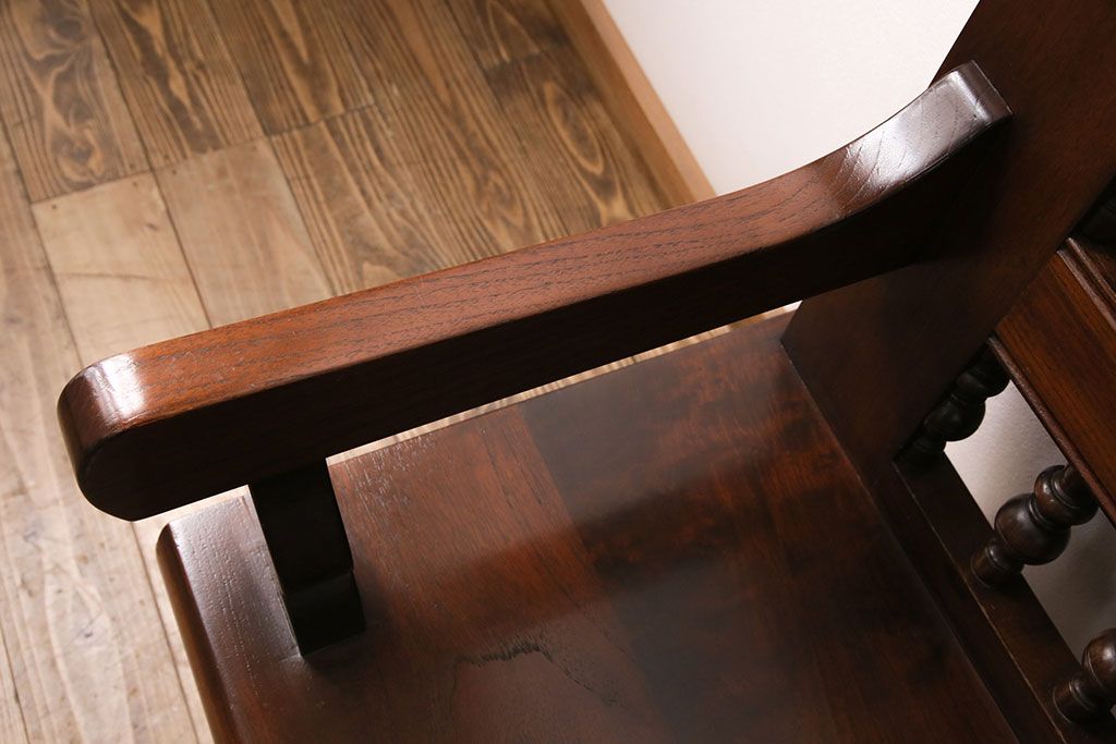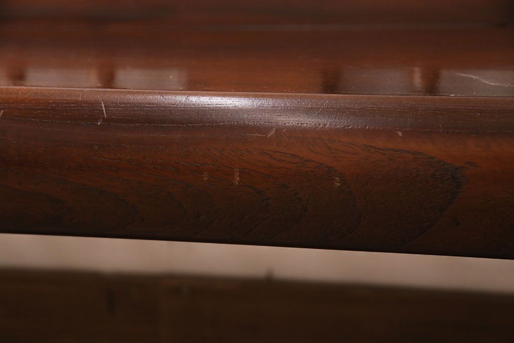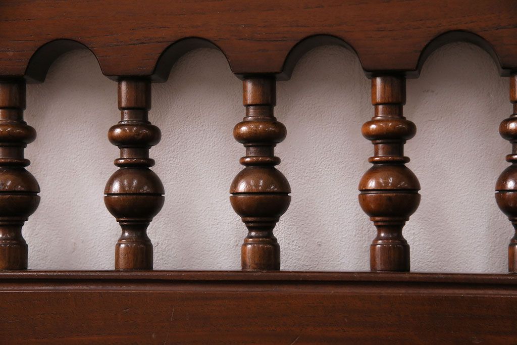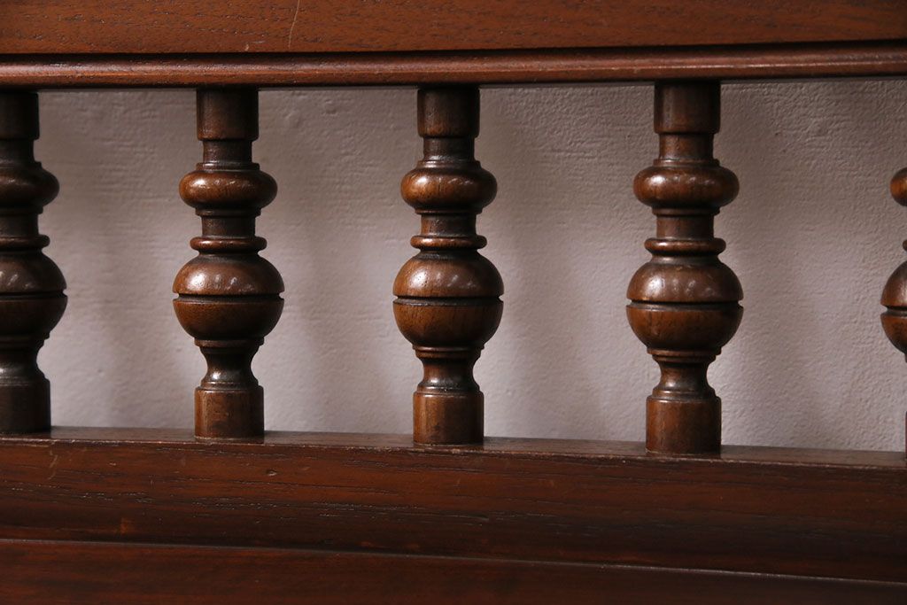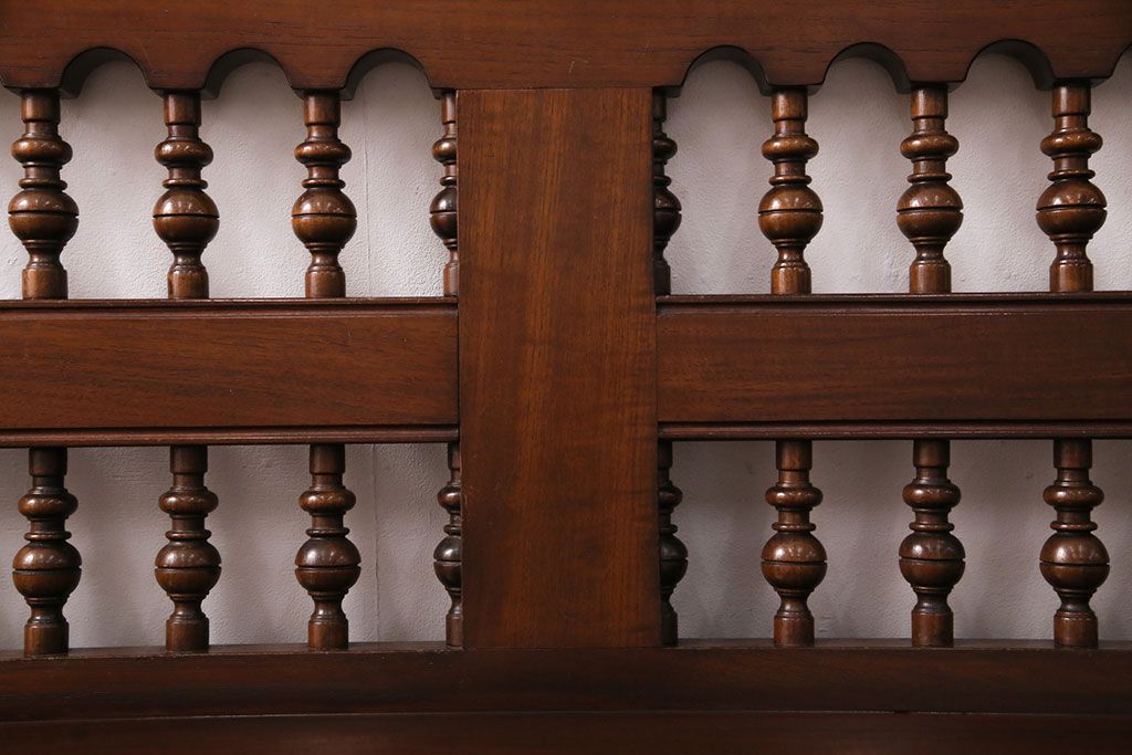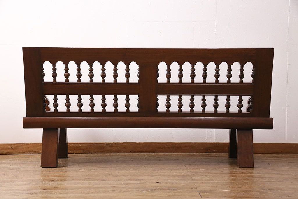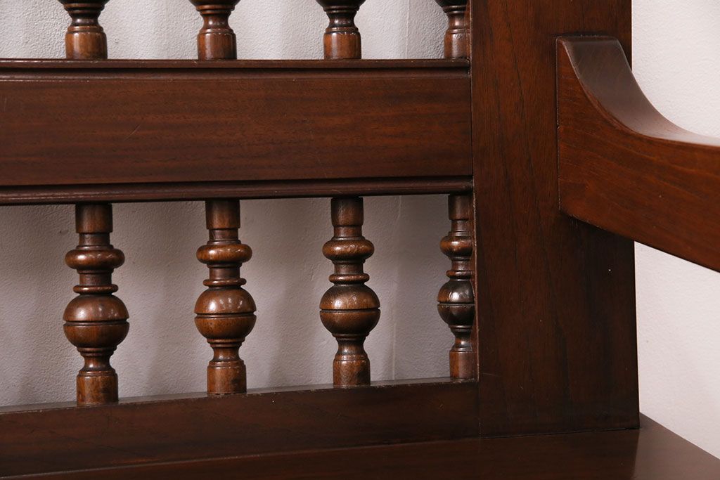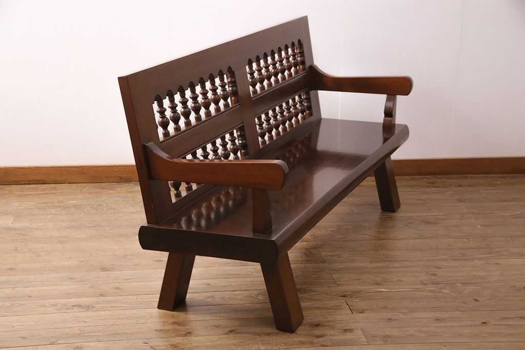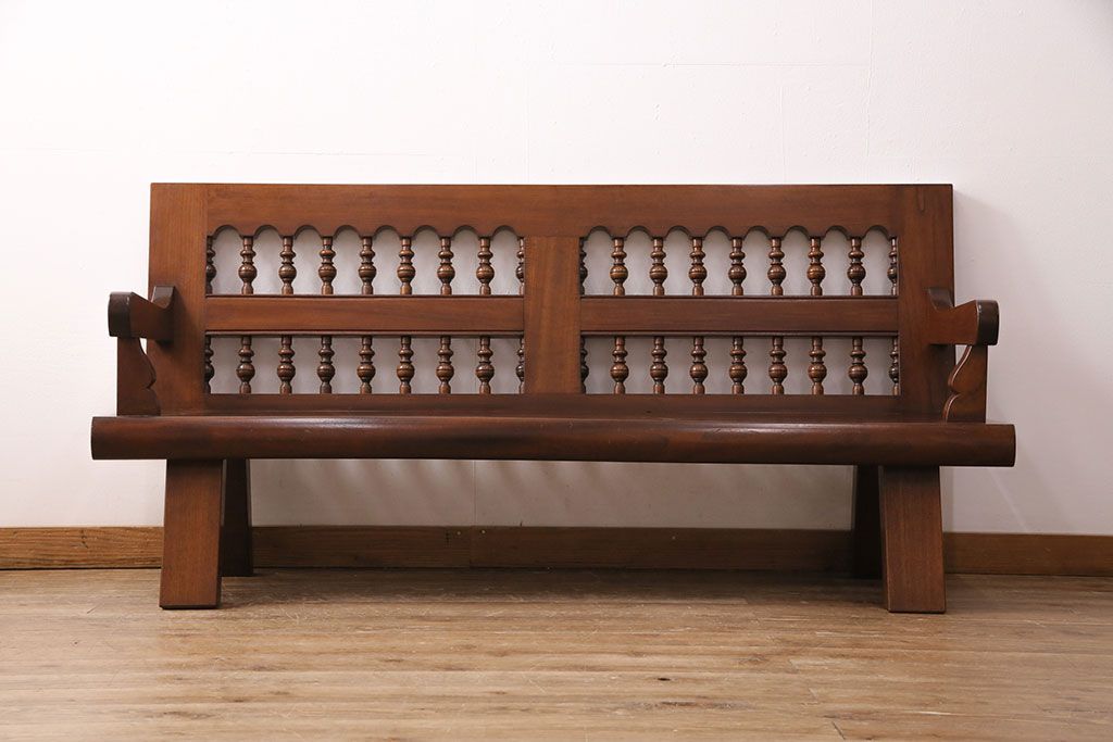 民芸家具 > 中古 激レア! 特注品 九州民芸家具 漆塗りが美しいスピンドルベンチ(アーム付きベンチ、3人掛け、三人掛け)(定価約75万円)(R-050310)