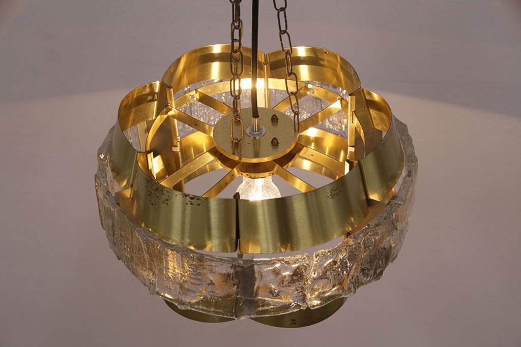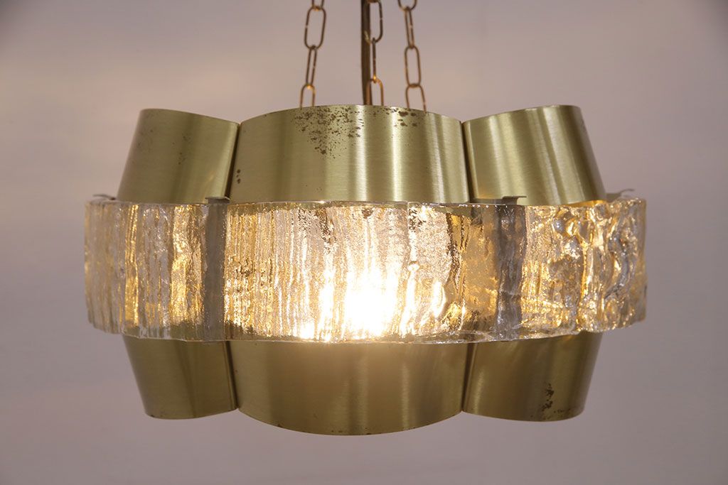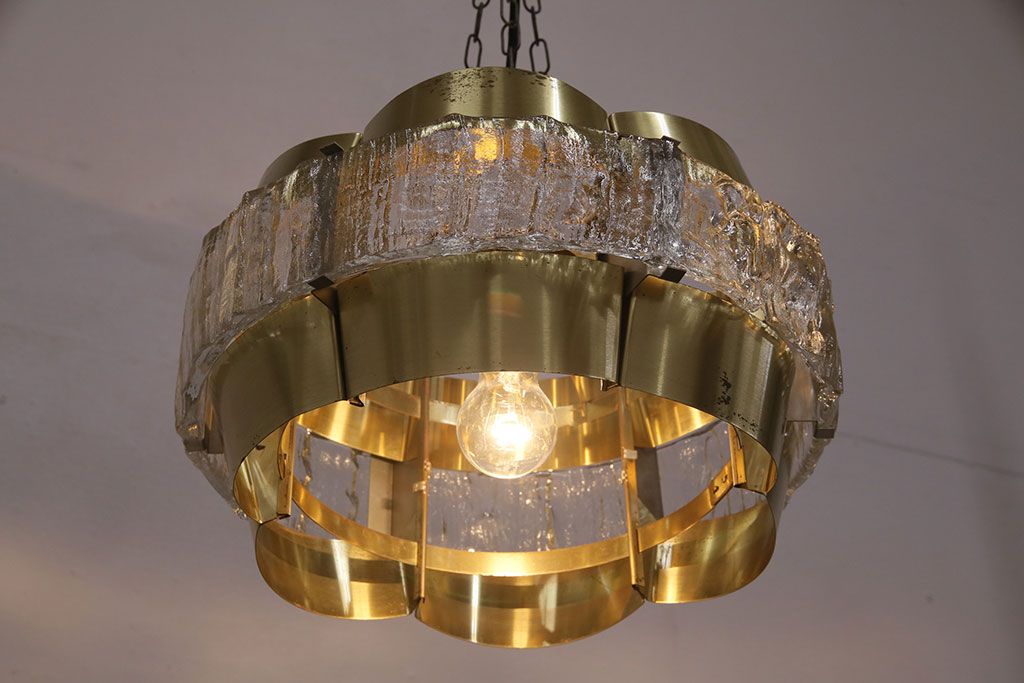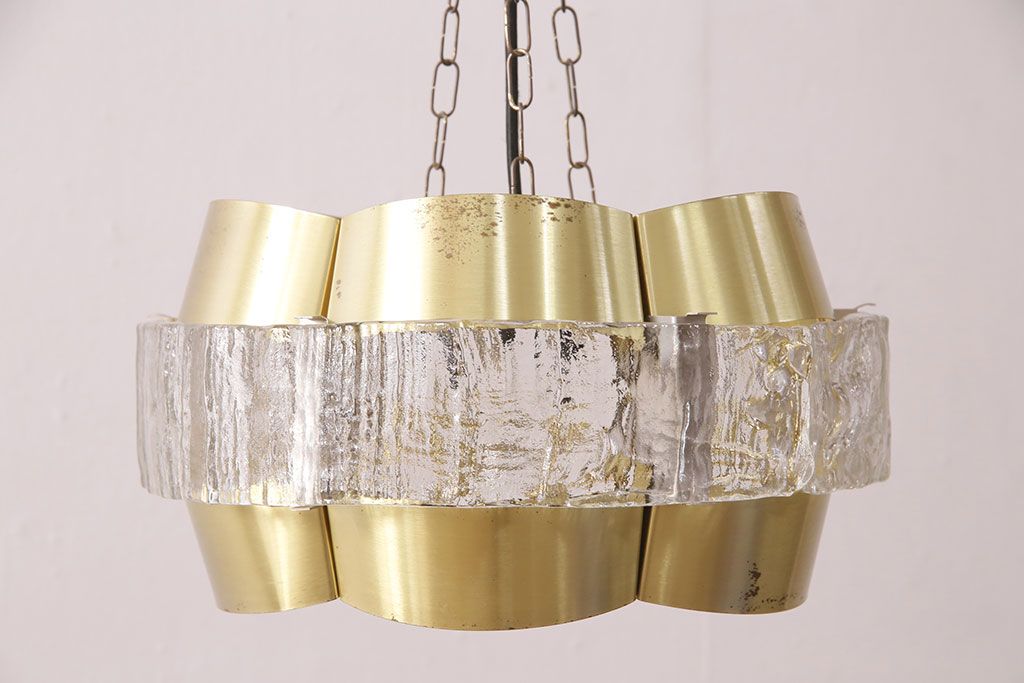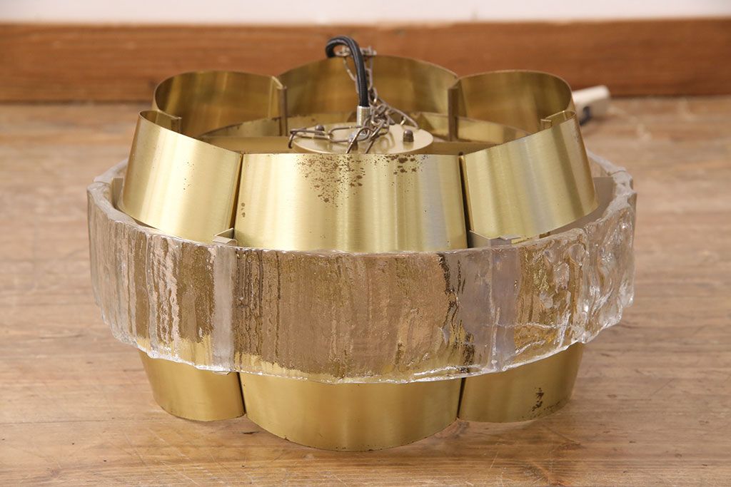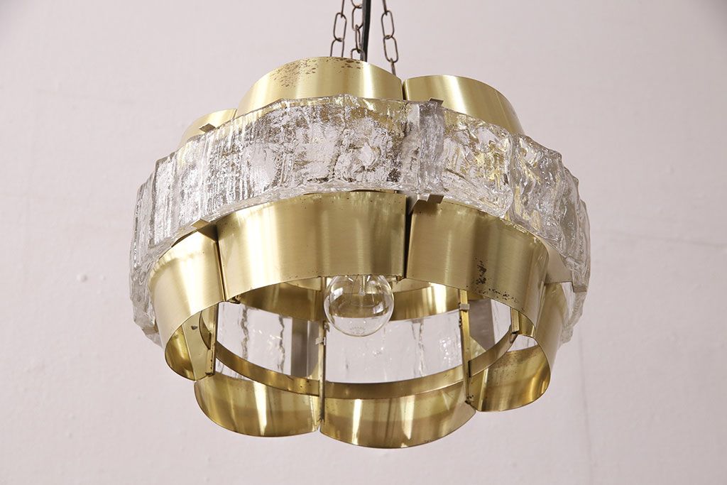 照明・ランプ> ペンダントライト > 北欧ヴィンテージ デンマーク ガラスと真鍮の組み合わせがゴージャス感を演出する天井照明(吊り下げ照明、ペンダントライト、ビンテージ)(R-050301)