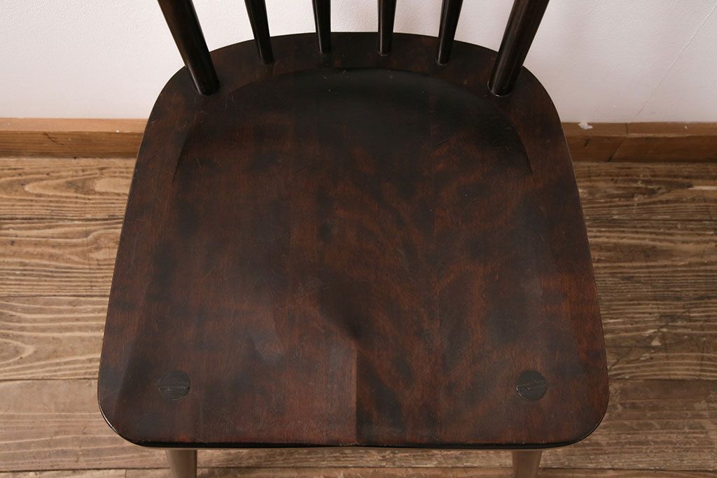 中古 北海道民芸家具 シンプルなデザインが取り入れやすいダイニングチェア(ウィンザーチェア、板座チェア、椅子)(R-050375)です。