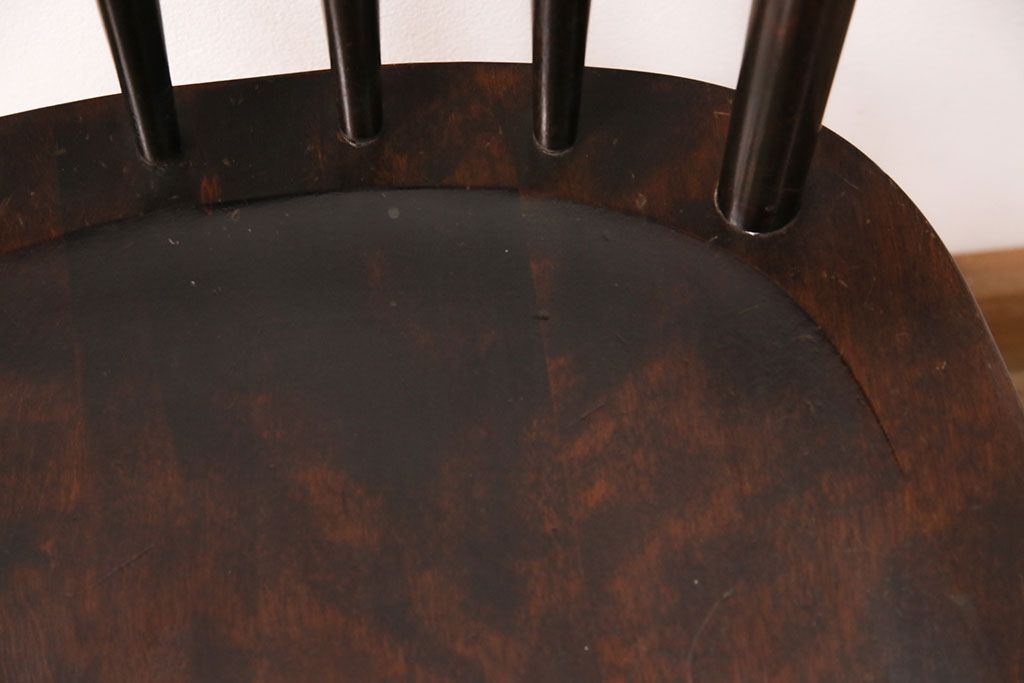 椅子・ベンチ> ウィンザーチェア > 中古 北海道民芸家具 シンプルなデザインが取り入れやすいダイニングチェア(ウィンザーチェア、板座チェア、椅子、ウインザーチェア)(R-050375)