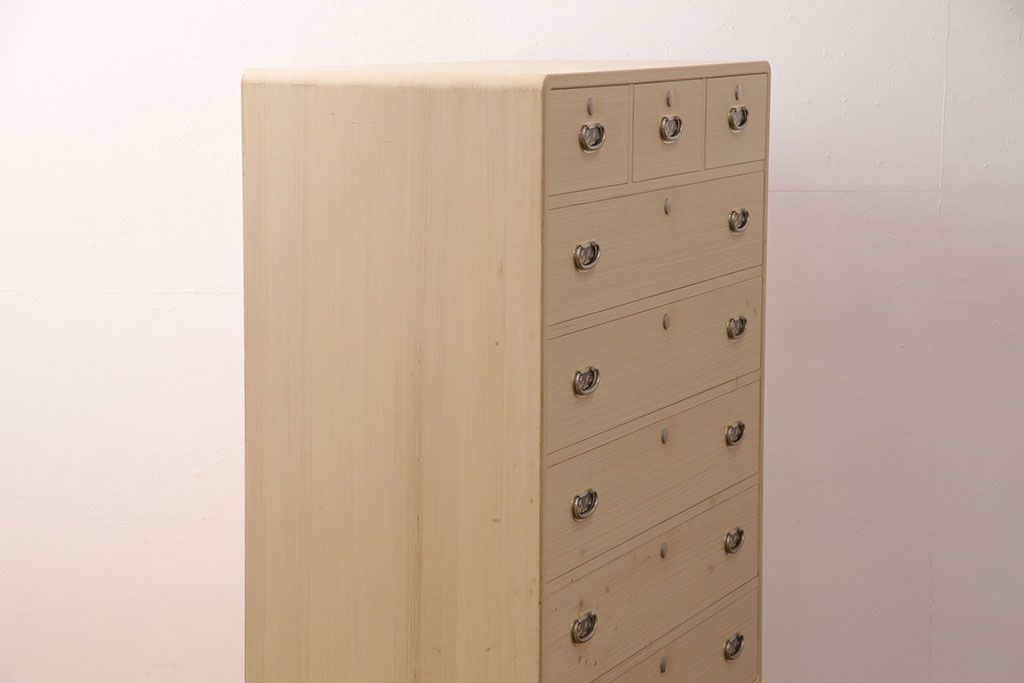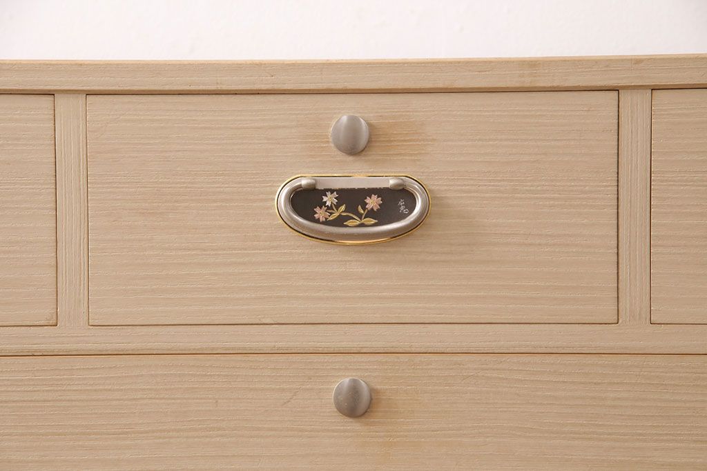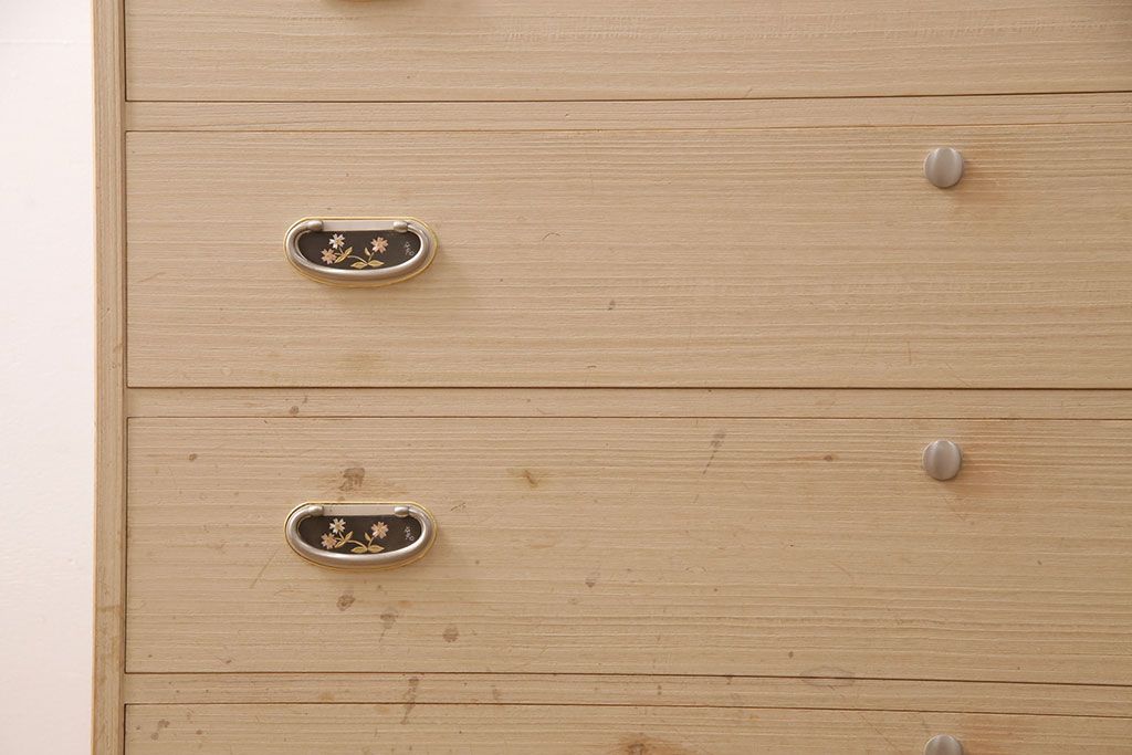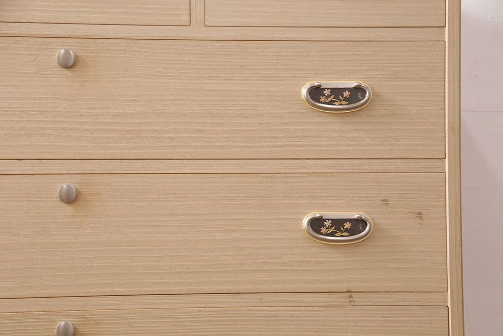 和箪笥 > 中古 国産 引手金具が可愛らしい、品のある佇まいが魅力の総桐箪笥(並厚、四方丸、桐たんす)(引き出し、チェスト、衣装箪笥、整理タンス、小抽タンス、小箪笥、桐たんす)(R-050373)