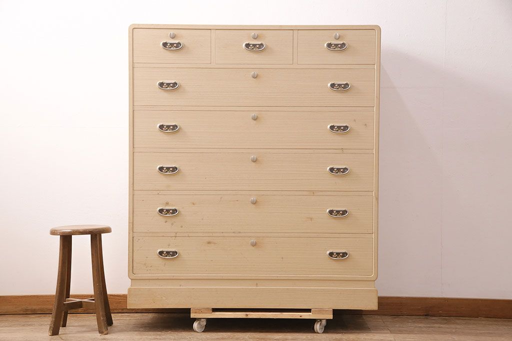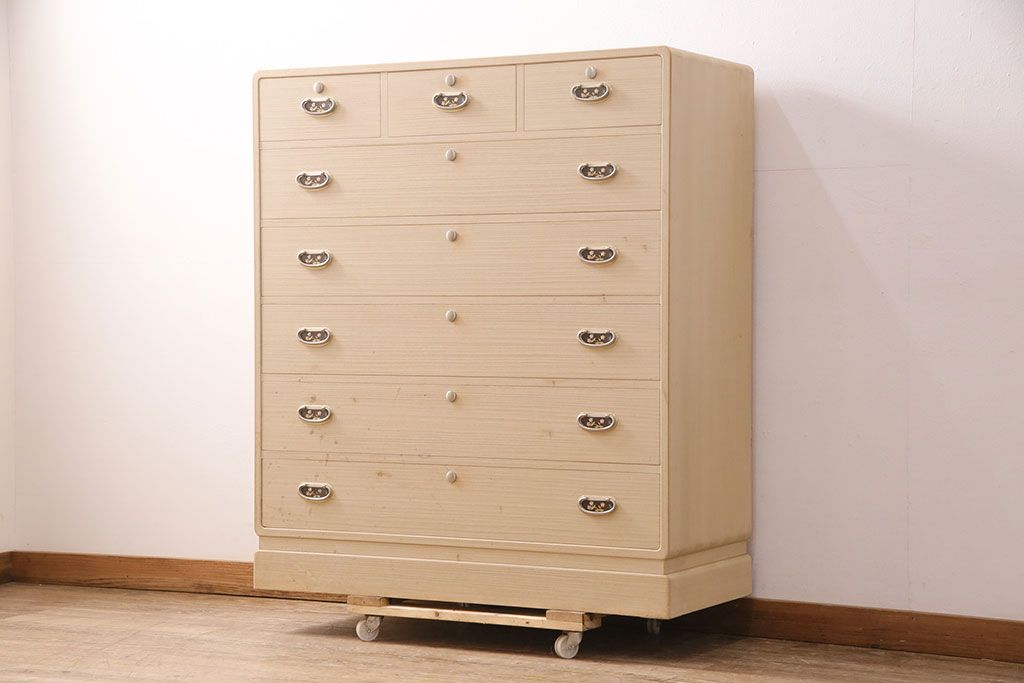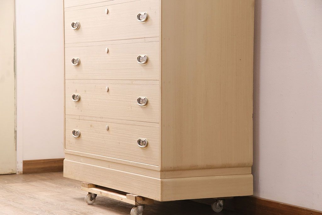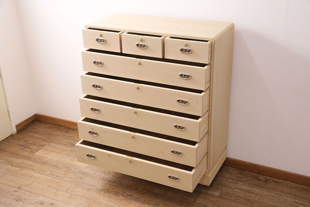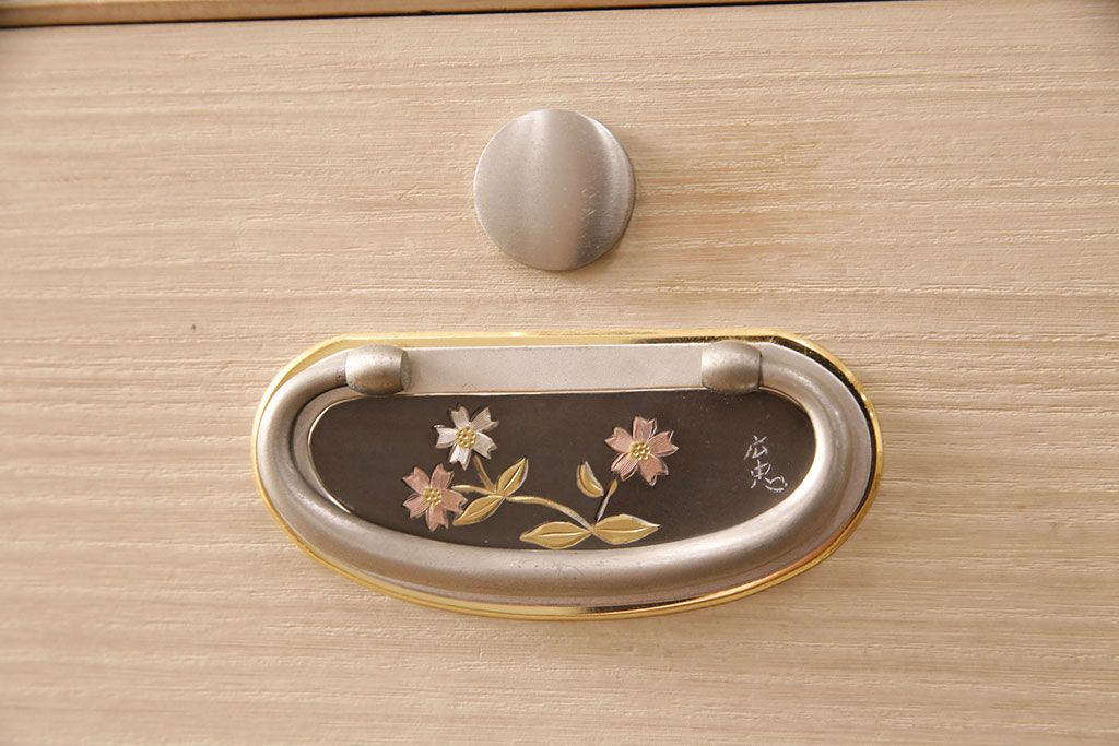 和箪笥 > 中古 国産 引手金具が可愛らしい、品のある佇まいが魅力の総桐箪笥(並厚、四方丸、桐たんす)(引き出し、チェスト、衣装箪笥、整理タンス、小抽タンス、小箪笥、桐たんす)(R-050373)