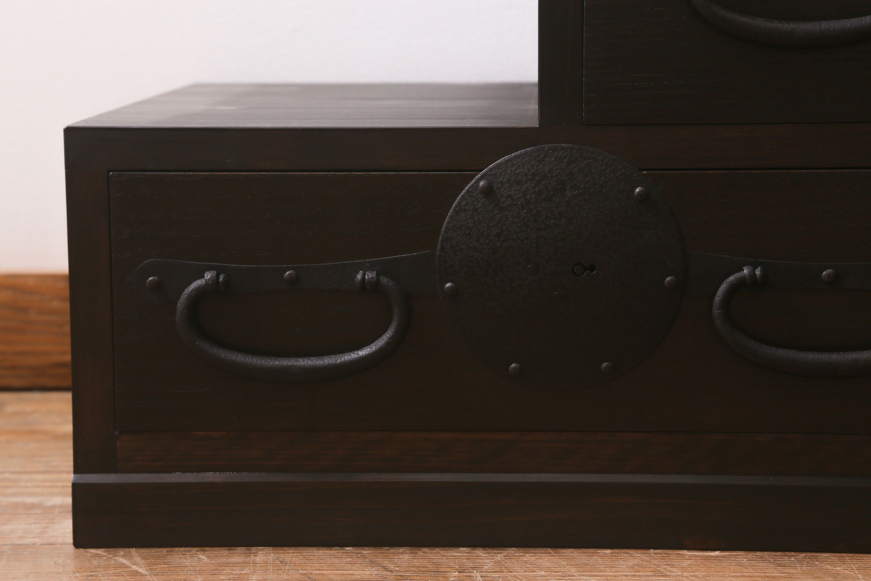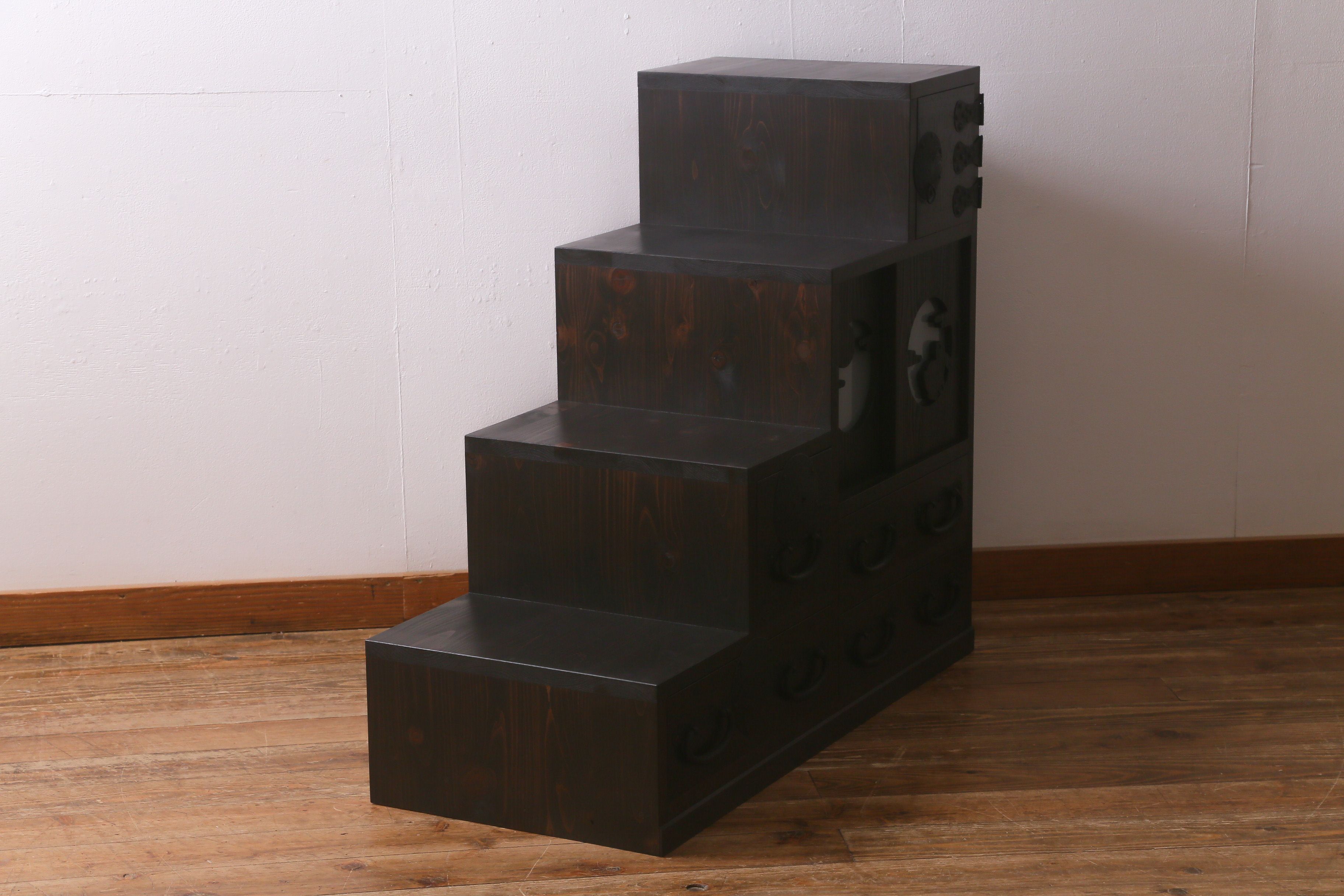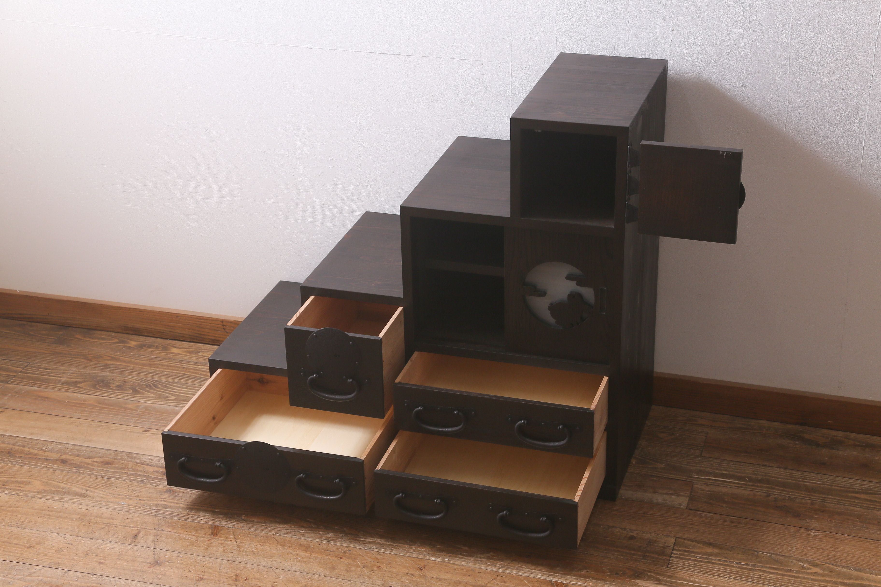 ◆デザイン:時代金具を用いた当店オリジナルの4段階段箪笥