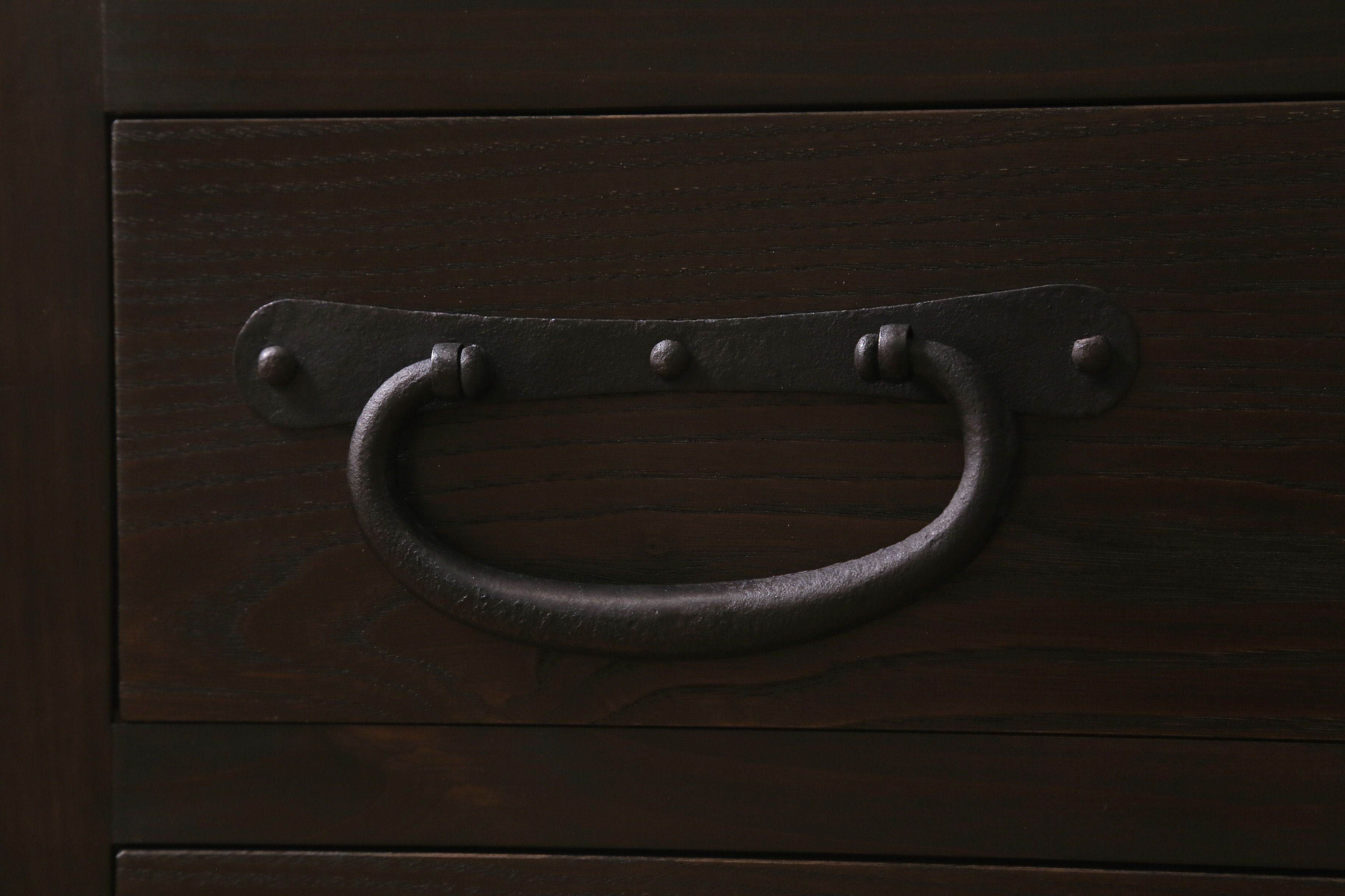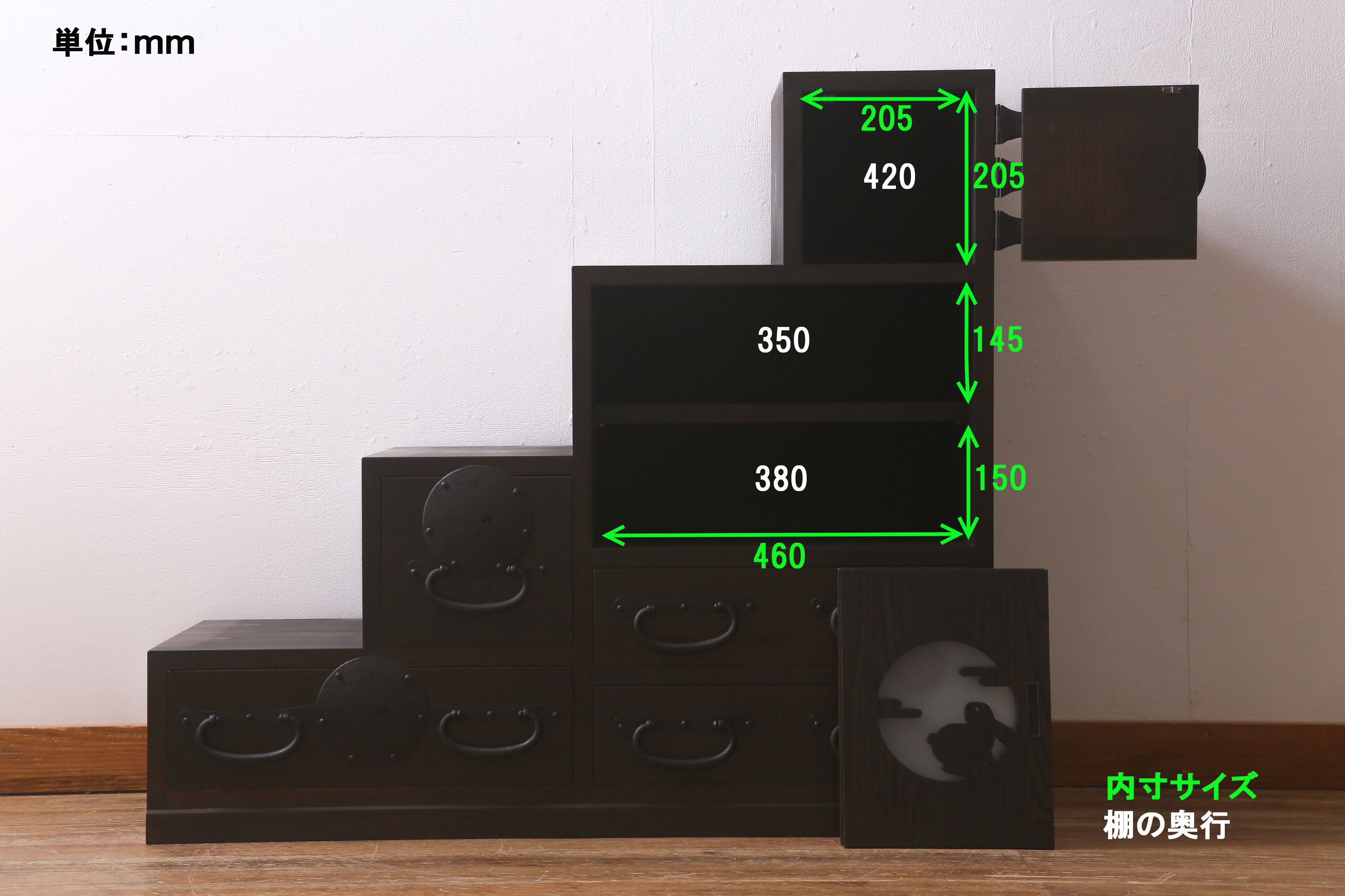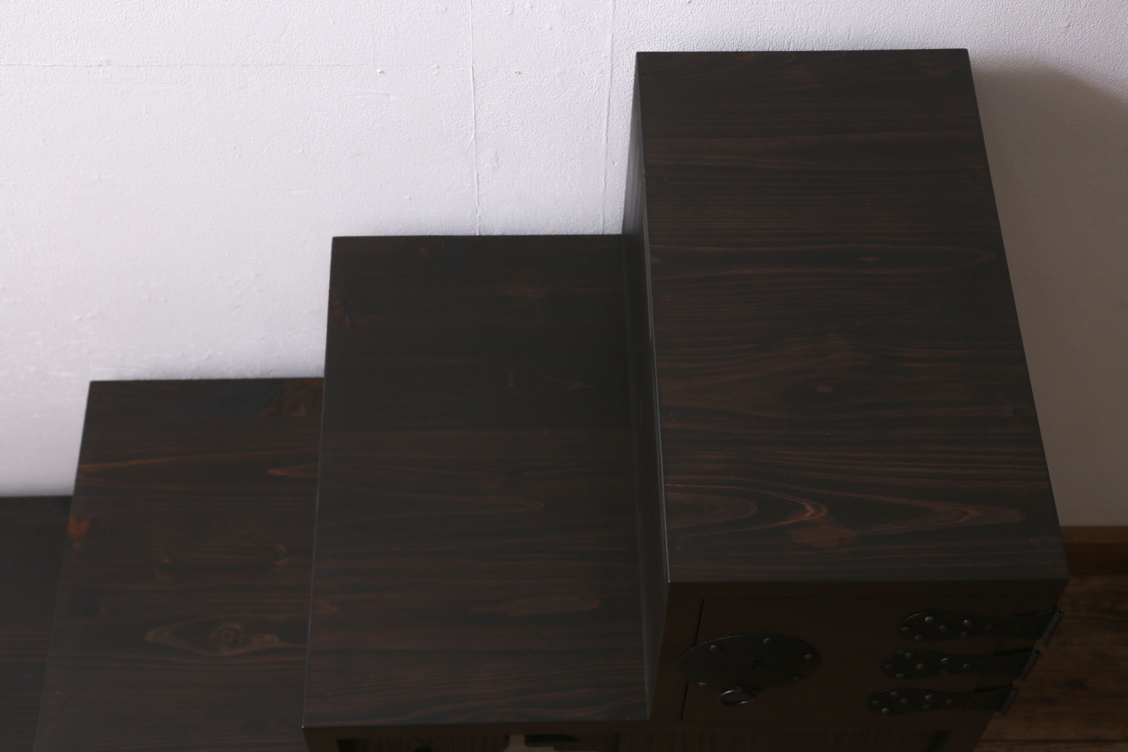 ◆デザイン:時代金具を用いた当店オリジナルの4段階段箪笥
