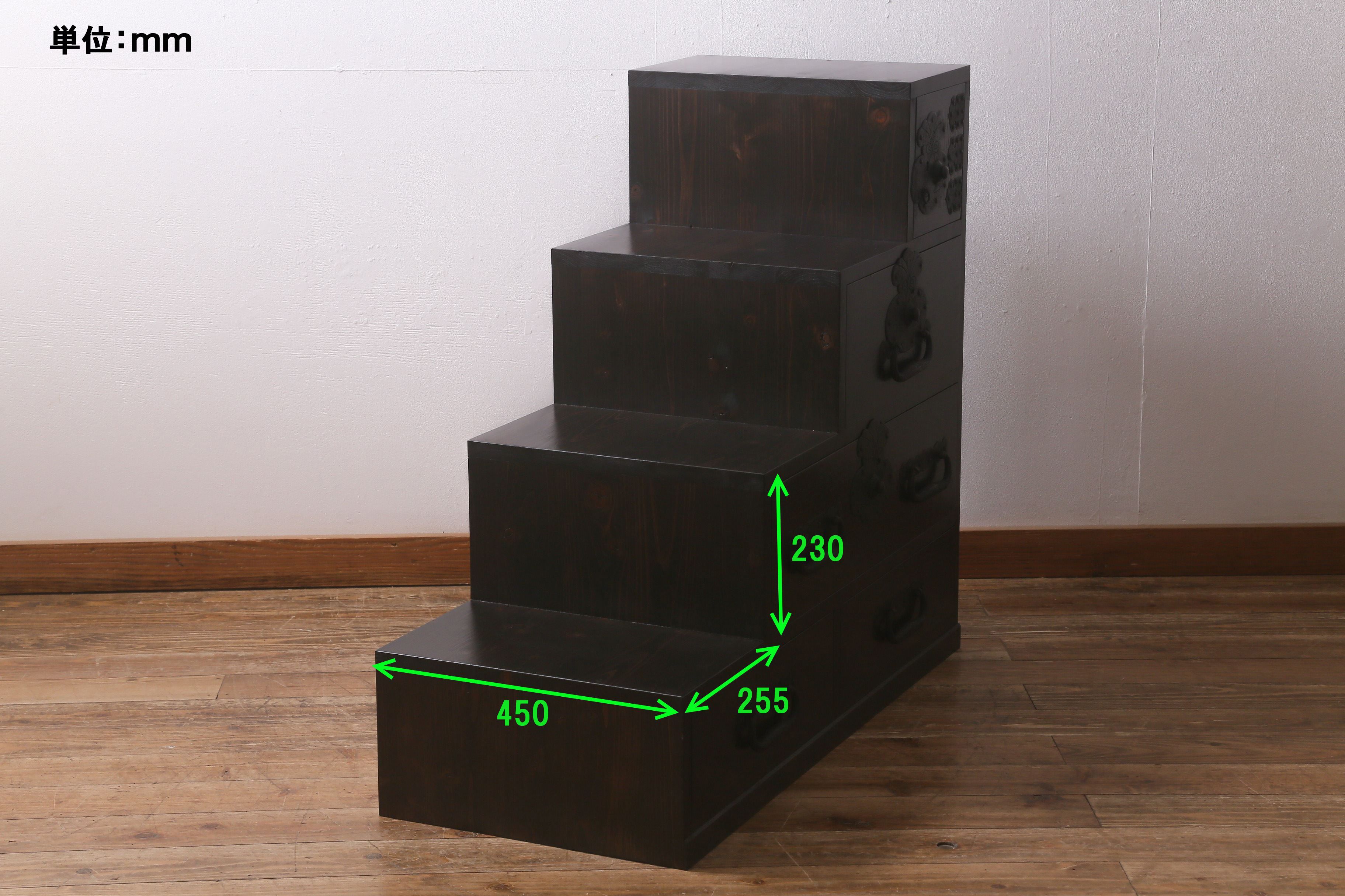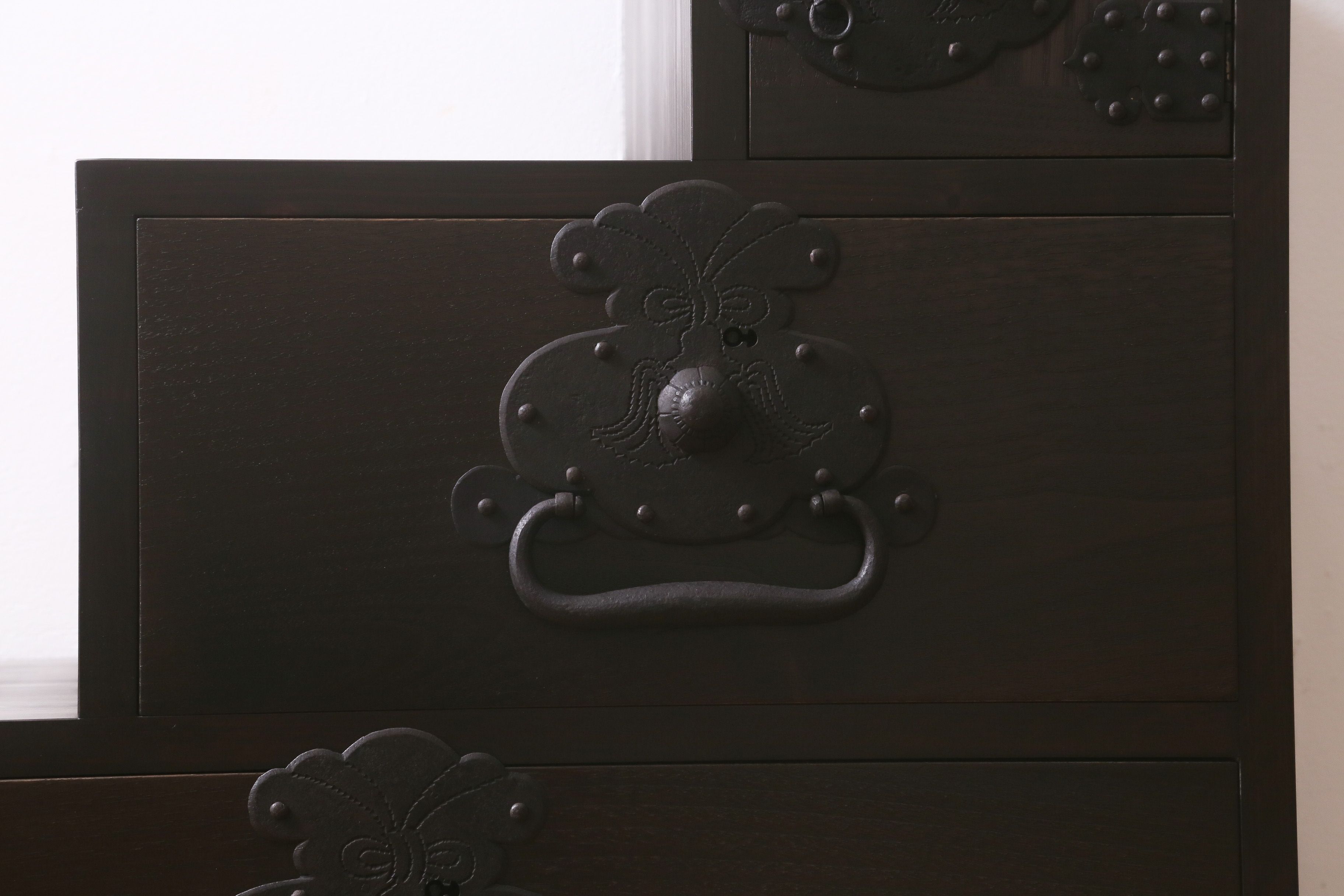 ◆デザイン:時代金具を用いた当店オリジナルの4段階段箪笥