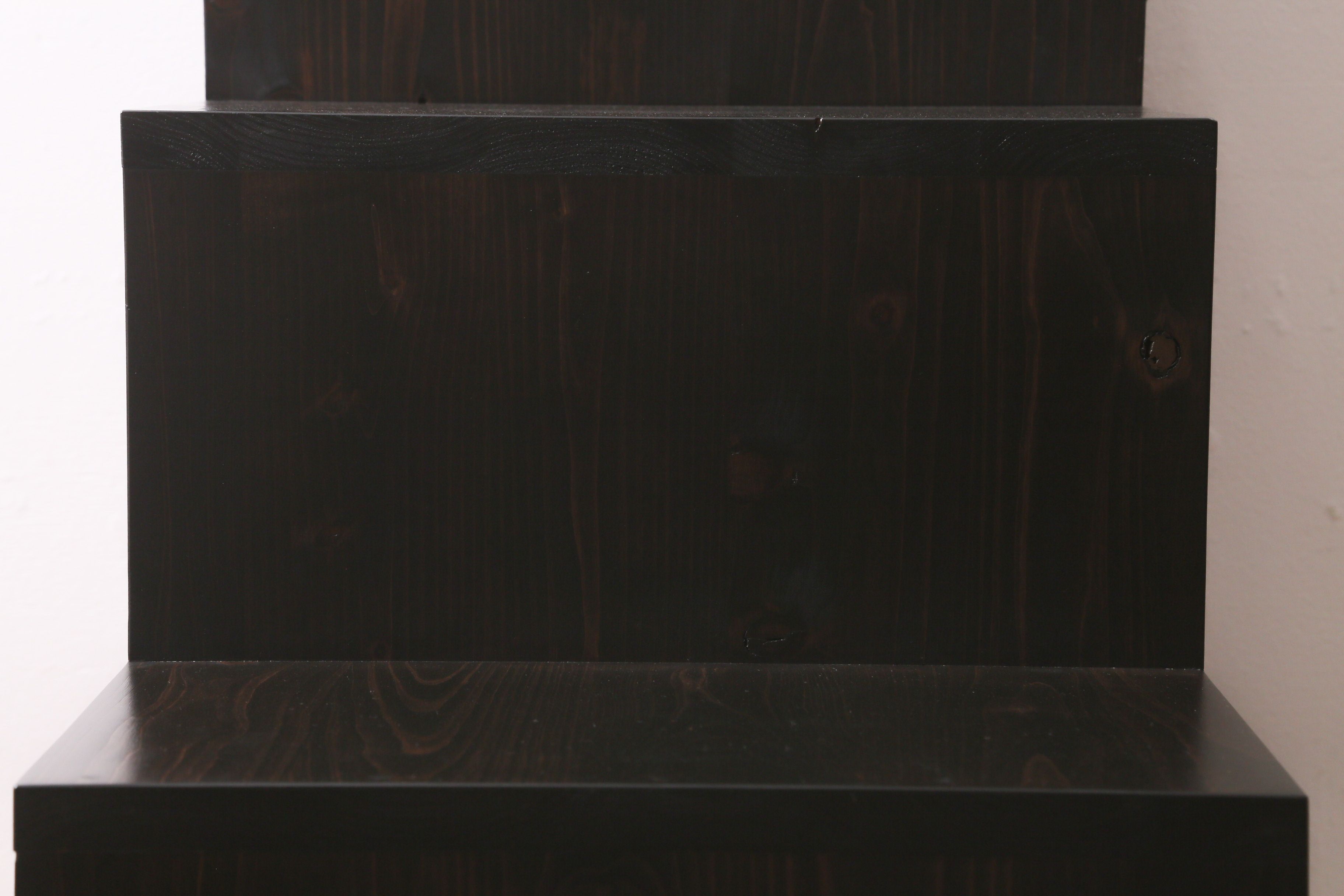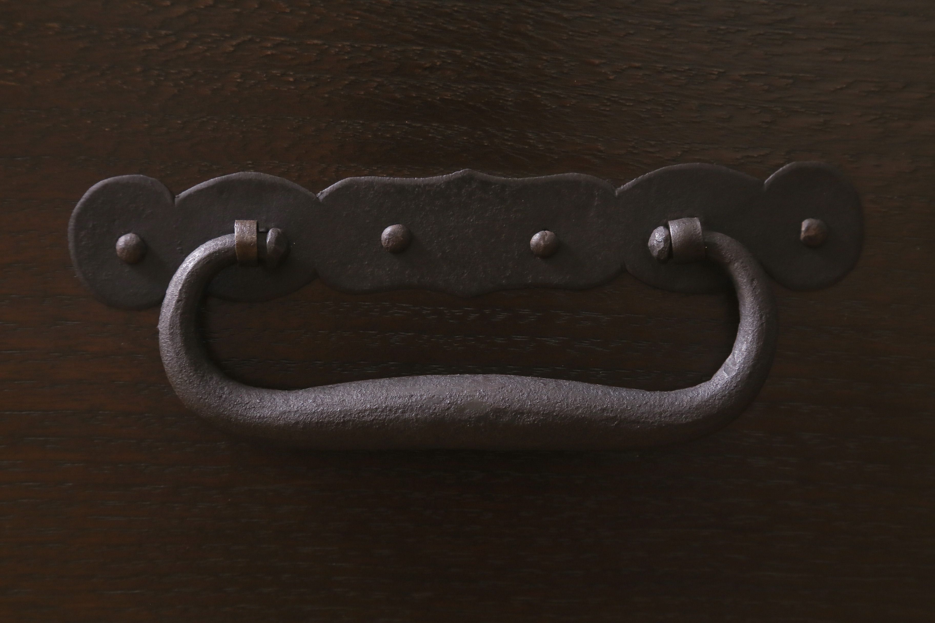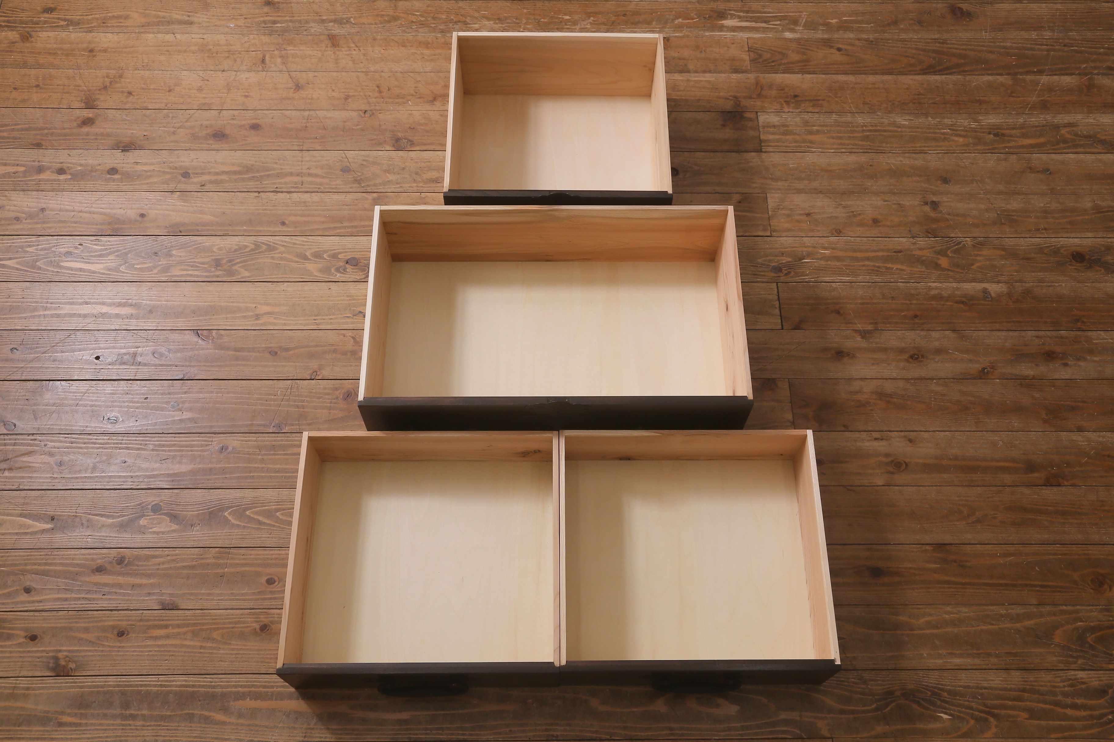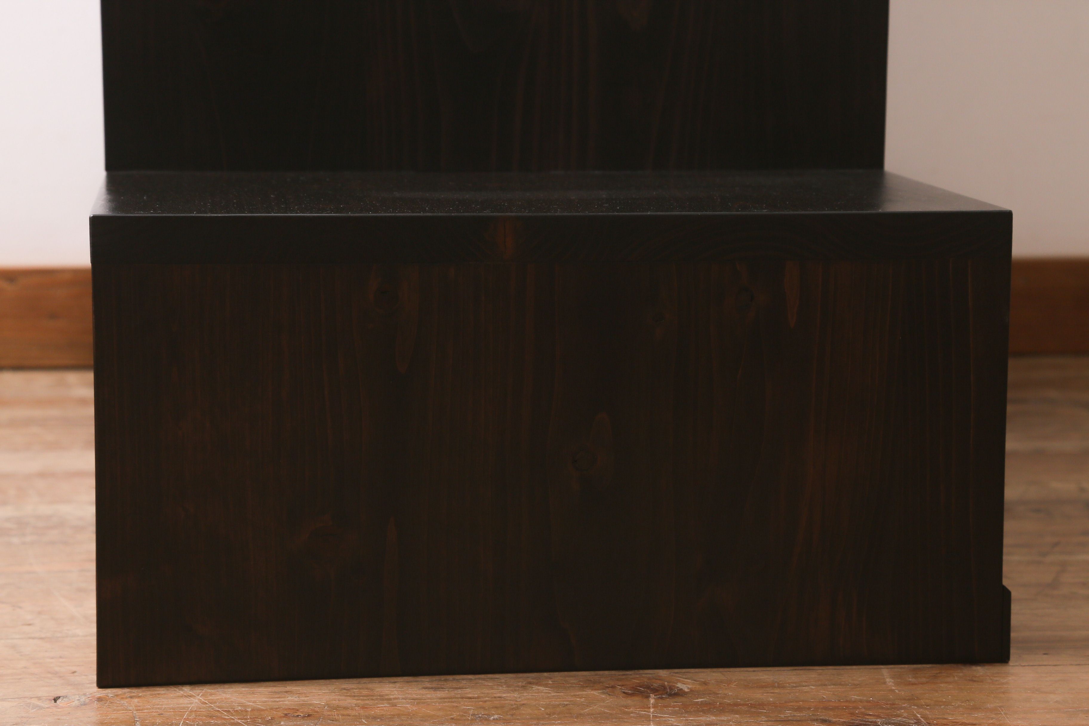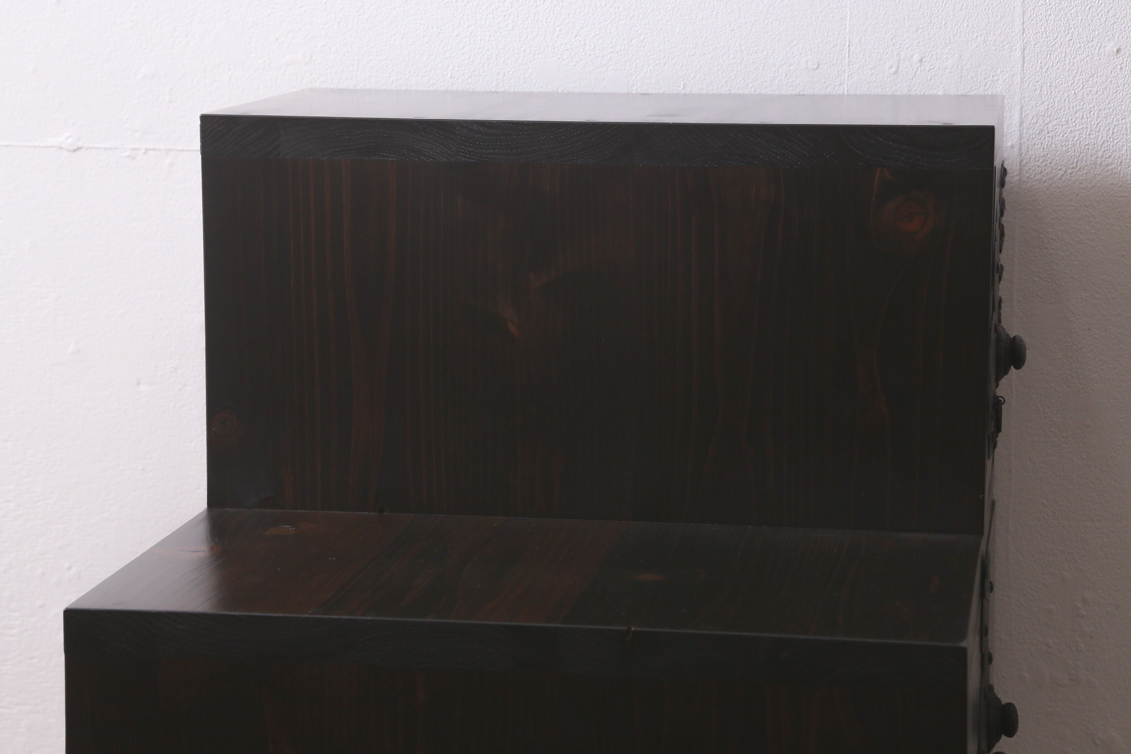 フルオーダー家具実績 > 階段箪笥を新規製作!明治期の引き手と錠前金具を使用。本体は新材で製作。濃い茶色で着色し仕上げ。(和タンス、収納箪笥)