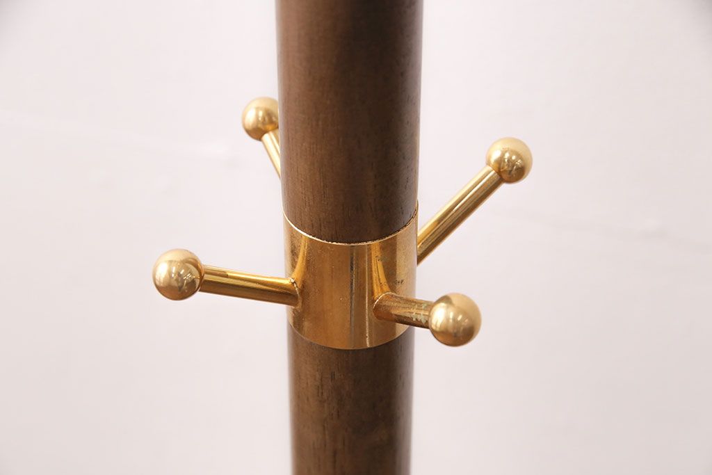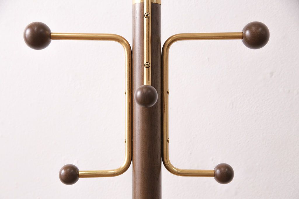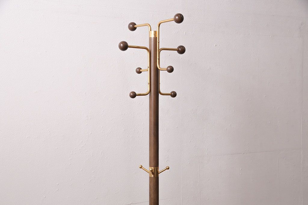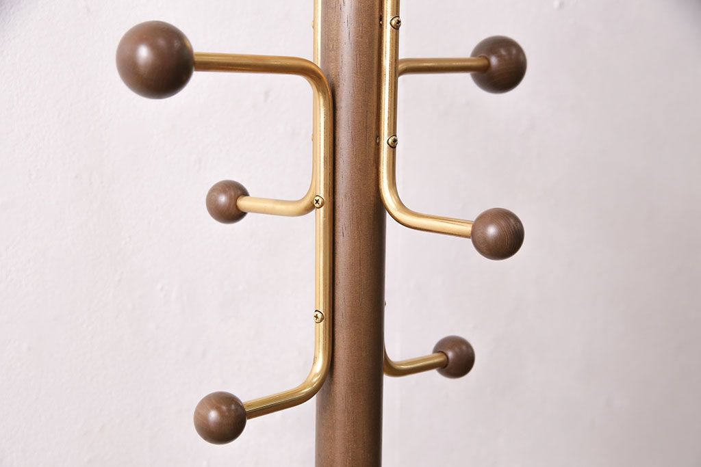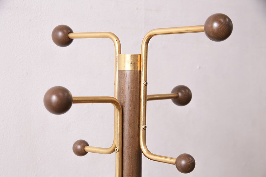 ラフジュ工房> 店舗什器 > 中古 カリモク家具(karimoku) 木の温もりにゴールドカラーが映えるポールハンガー(ポールスタンド、帽子掛け)(R-050291)