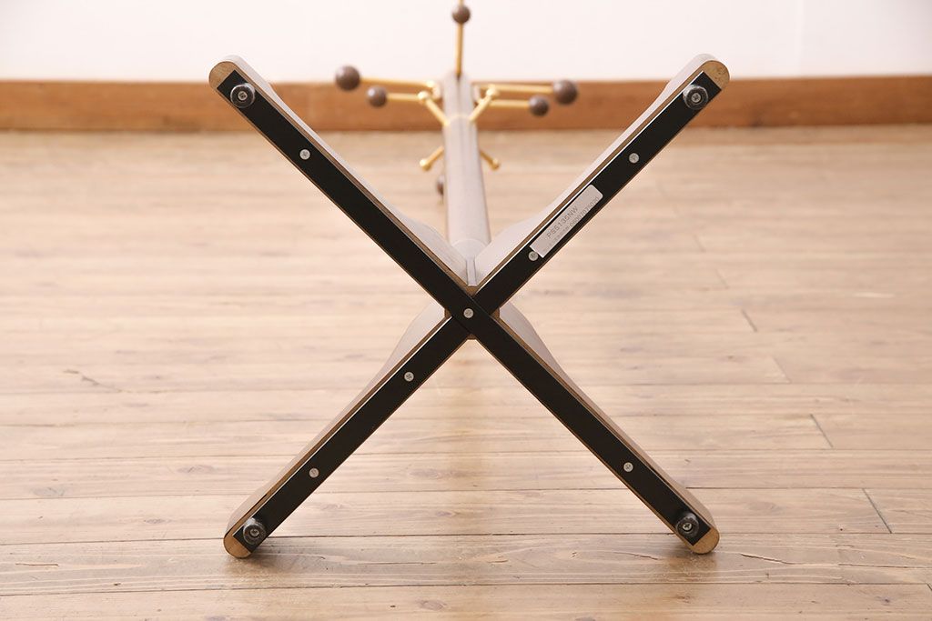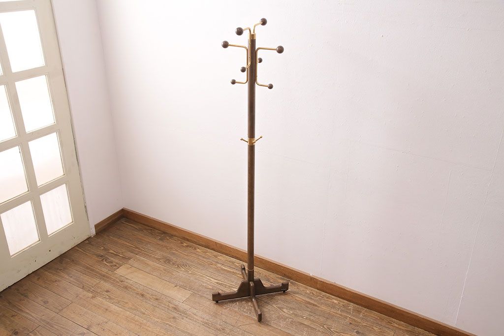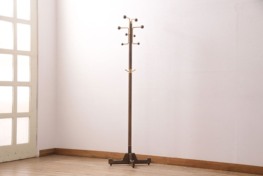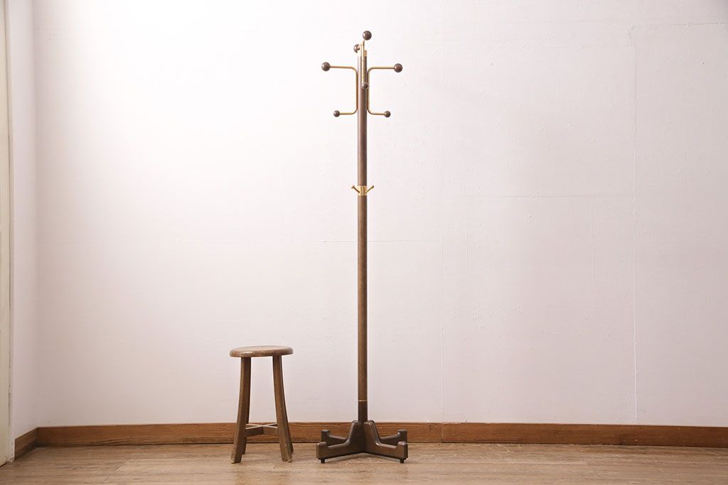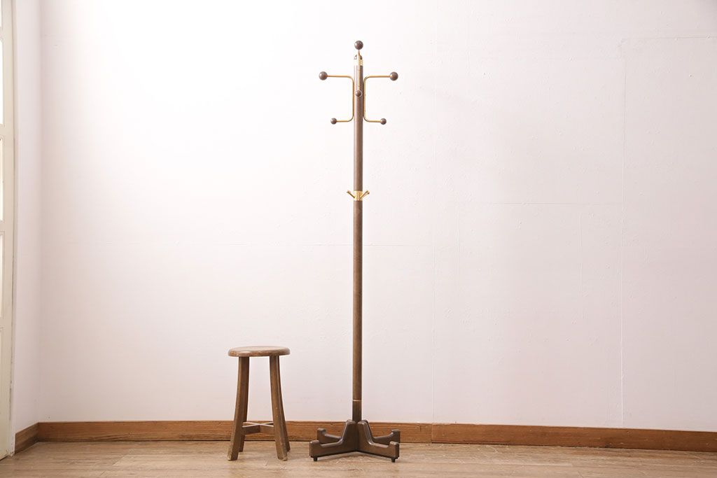 ラフジュ工房> 店舗什器 > 中古 カリモク家具(karimoku) 木の温もりにゴールドカラーが映えるポールハンガー(ポールスタンド、帽子掛け)(R-050291)