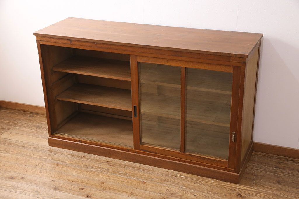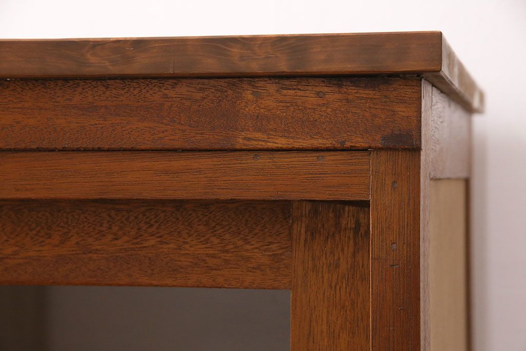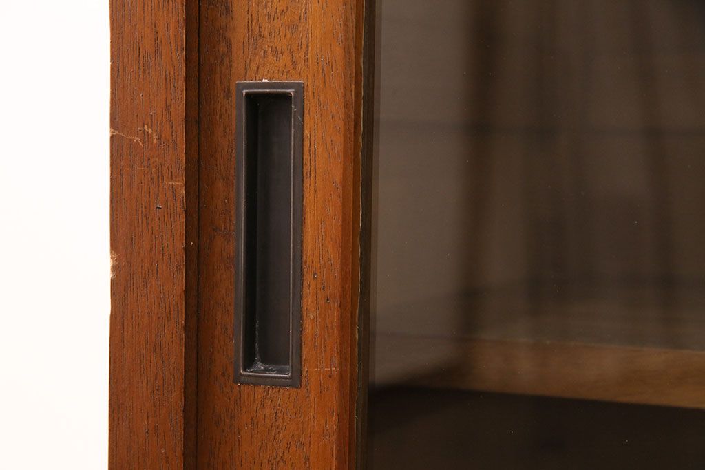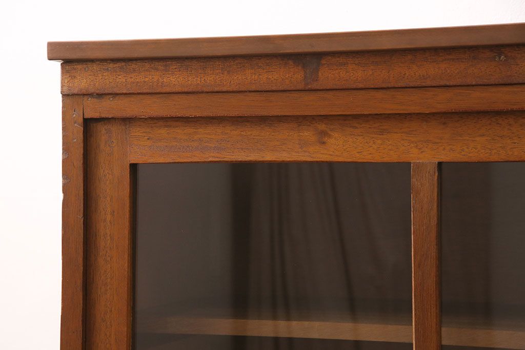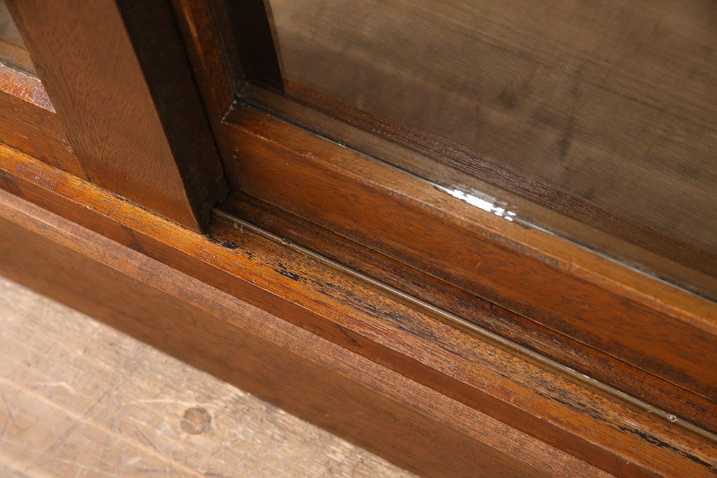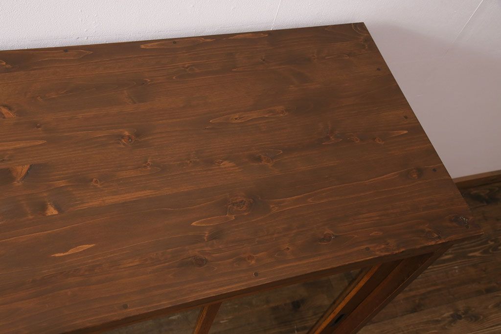 戸棚をリペア&カスタム!ヒノキ無垢材の天板を取り付け。建具のガラスはクリアガラスに変更。台輪を新たに製作。背板は杉材に張り替え。現状の色味に合わせて着色し、蜜蝋ワックス仕上げ。(収納棚、キャビネット、食器棚)