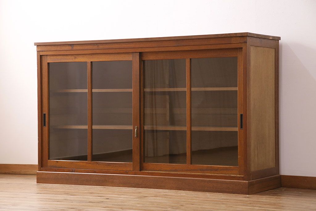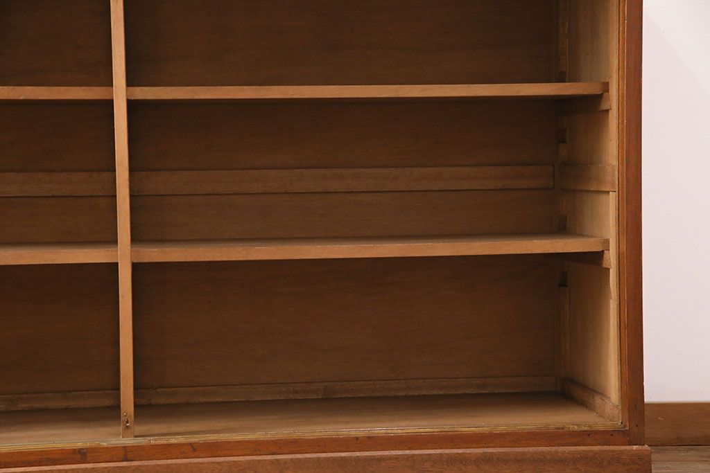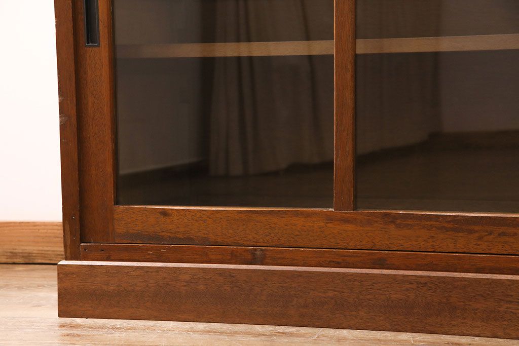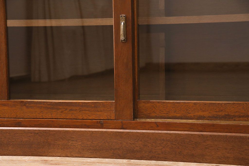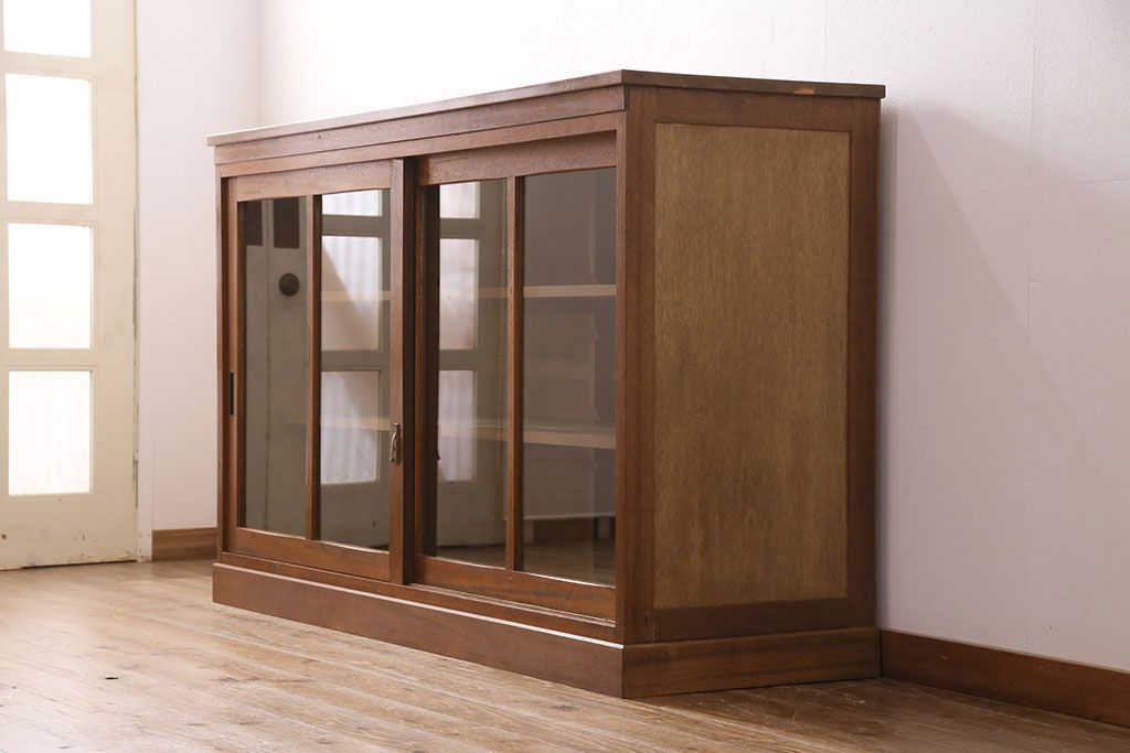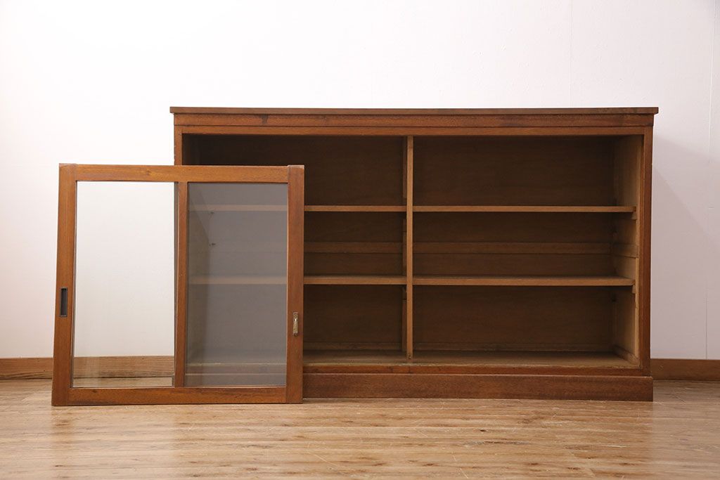 戸棚をリペア&カスタム!ヒノキ無垢材の天板を取り付け。建具のガラスはクリアガラスに変更。台輪を新たに製作。背板は杉材に張り替え。現状の色味に合わせて着色し、蜜蝋ワックス仕上げ。(収納棚、キャビネット、食器棚)