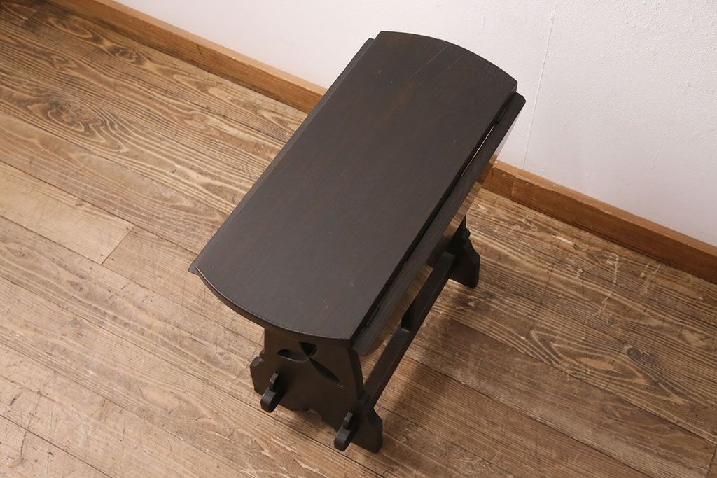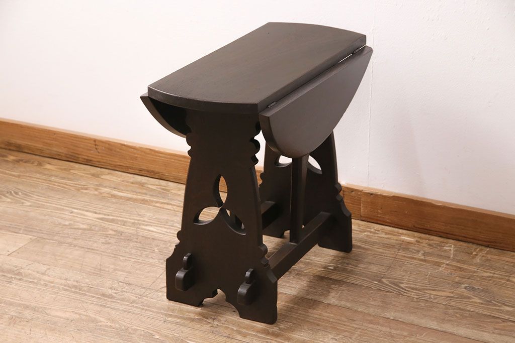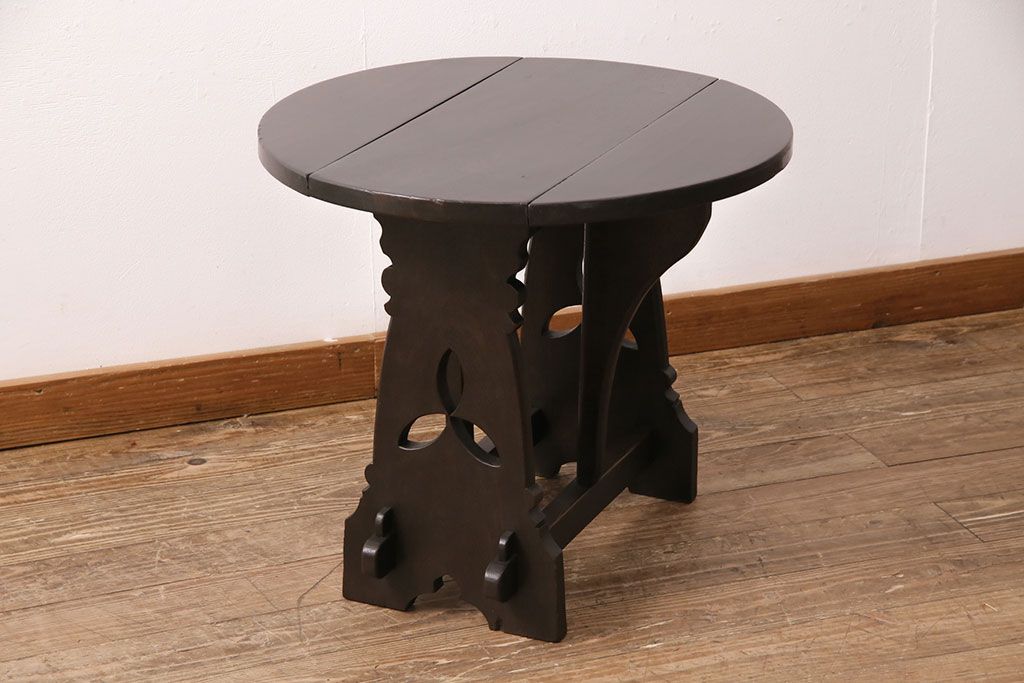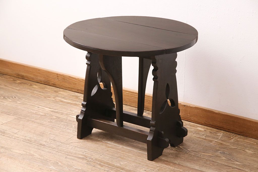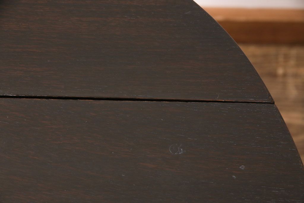 テーブル> サイドテーブル > アンティーク家具 ナラ材 凝ったつくりの脚が魅力的なバタフライテーブル(ラウンドテーブル、コーヒーテーブル、ドロップリーフテーブル)(R-050355)