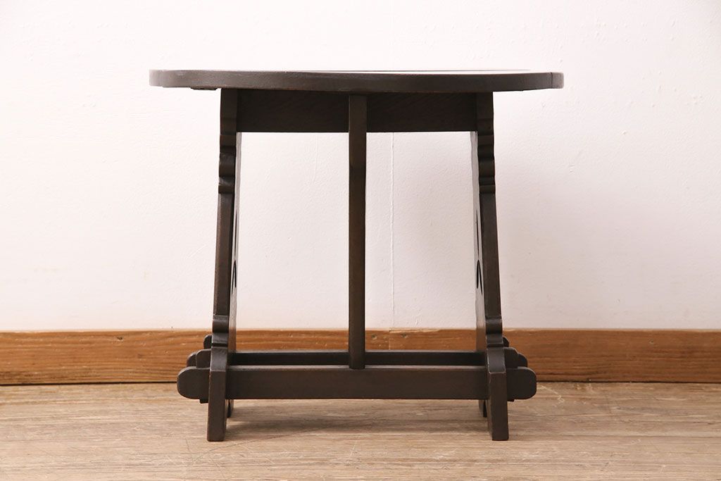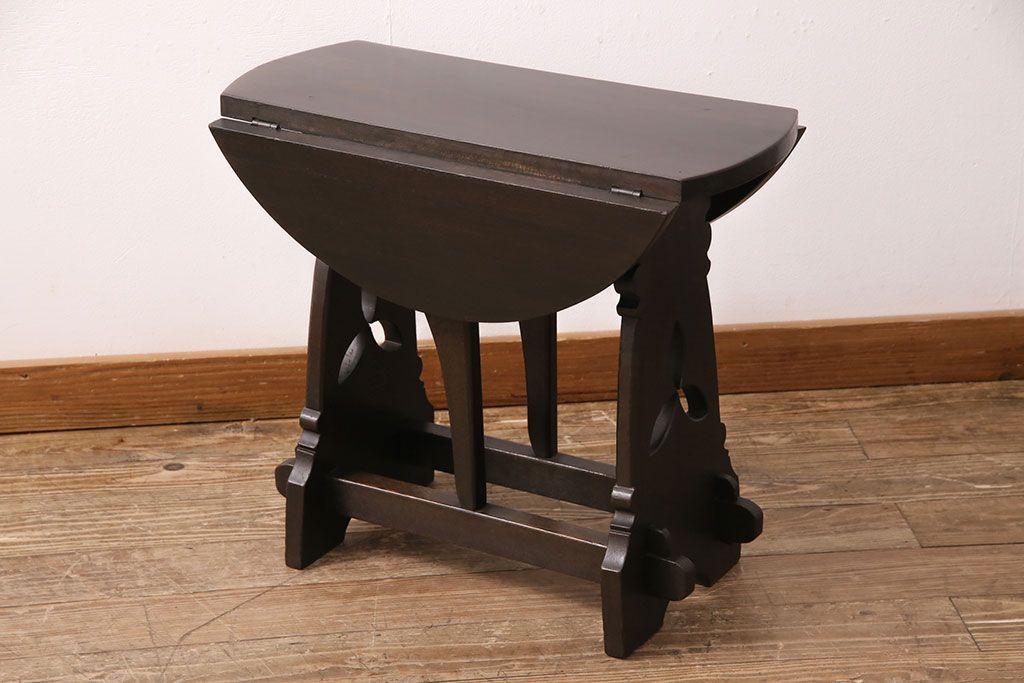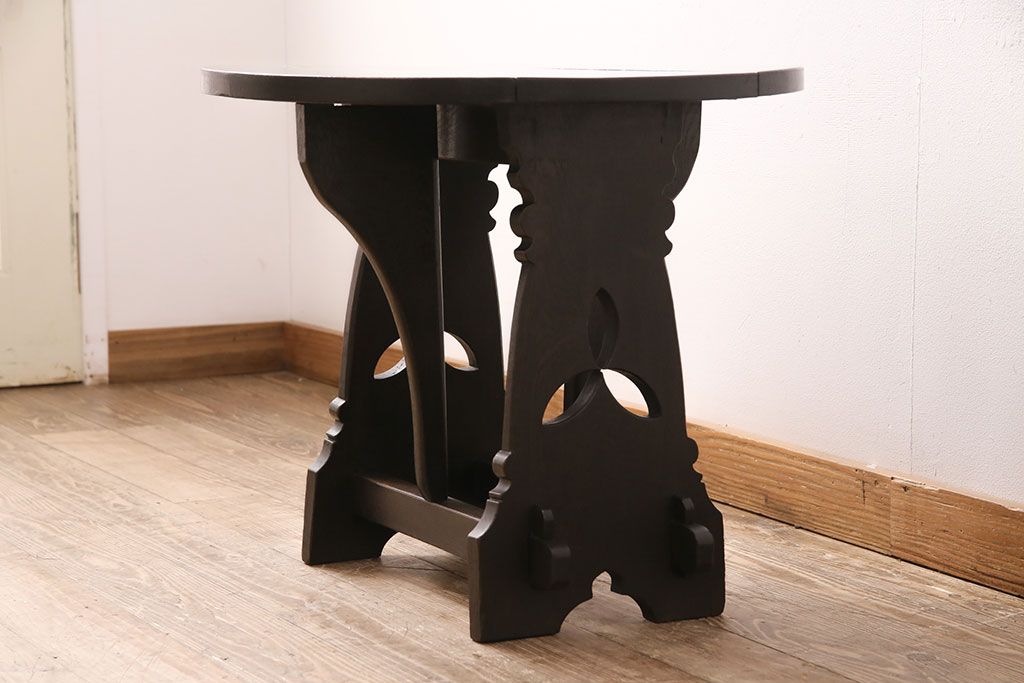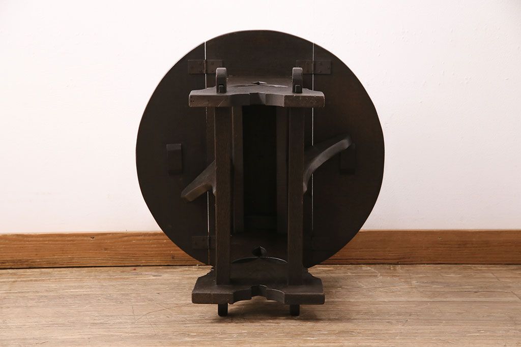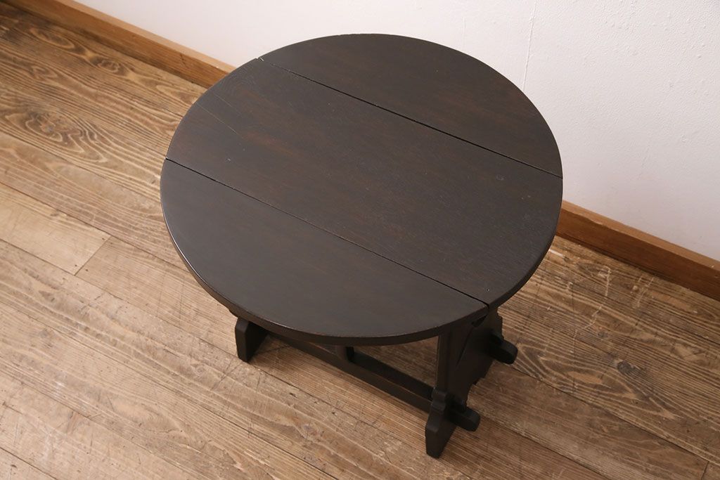 テーブル> カフェテーブル・コーヒーテーブル > アンティーク家具 ナラ材 凝ったつくりの脚が魅力的なバタフライテーブル(ラウンドテーブル、コーヒーテーブル、ドロップリーフテーブル)(R-050355)