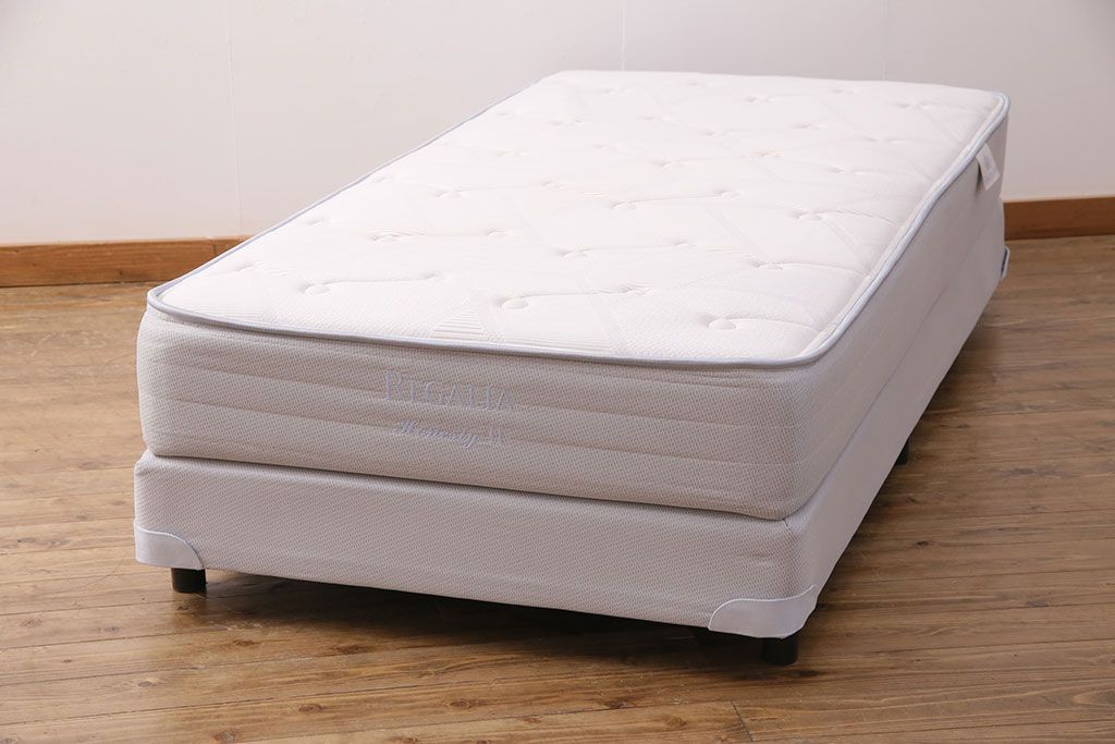 中古 美品 IDC大塚家具 KINGSDOWN(キングスダウン)社 REGALIA(レガリア)シリーズ 「オネスティ2」 シングルサイズ ベッドマットレス&ボトムクッションセット(定価約11万円)(シングルベッド)(R-049991)