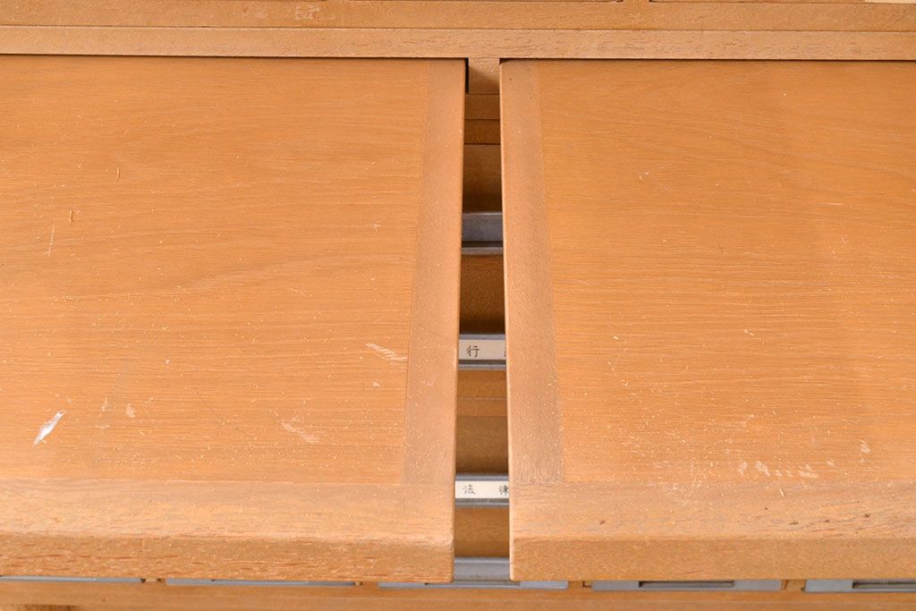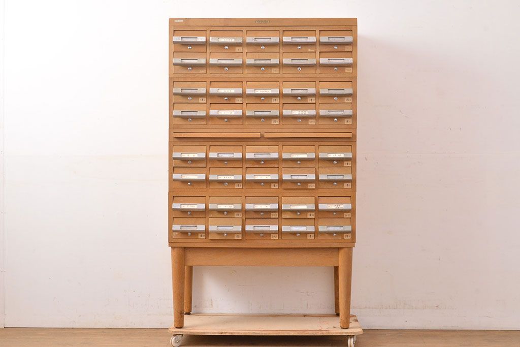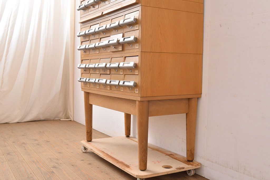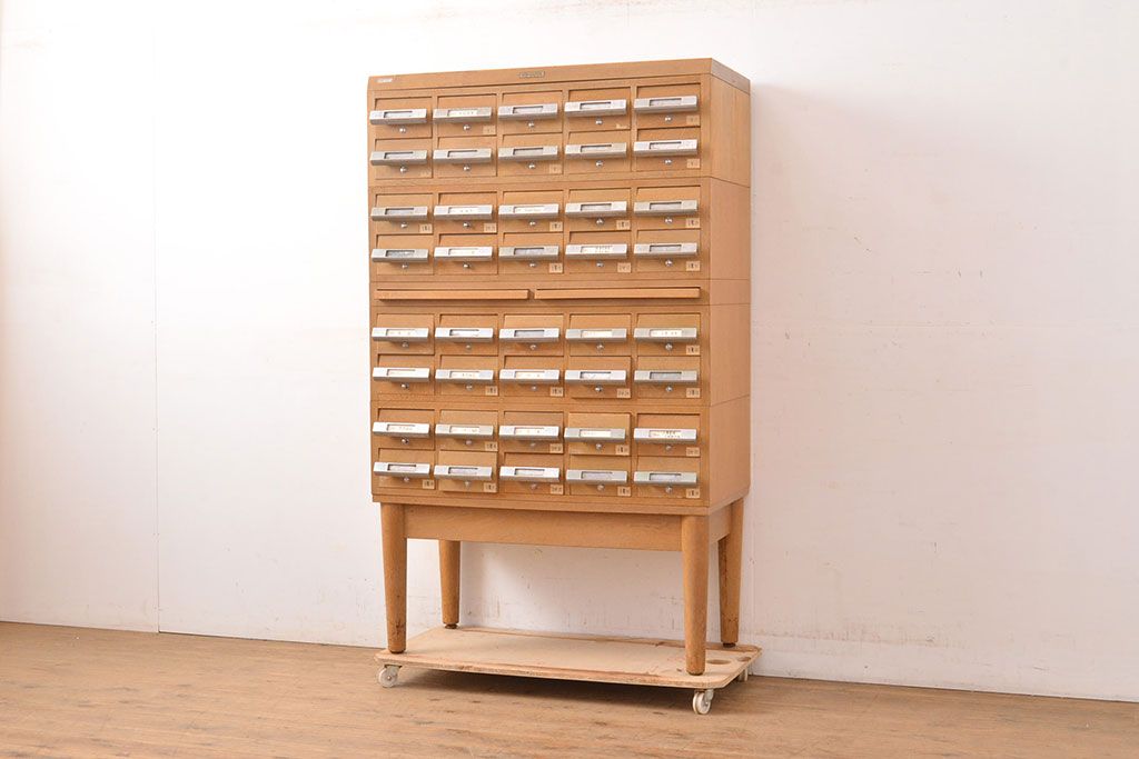 レトロ家具 昭和レトロ KIHARA 小物収納にうってつけのナラ材製ネームプレート付きカードケース(引き出し、チェスト、図書館、図書室)(R-049165)