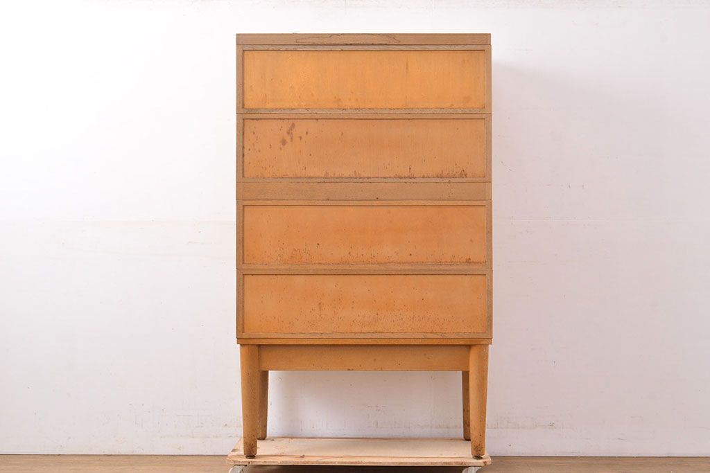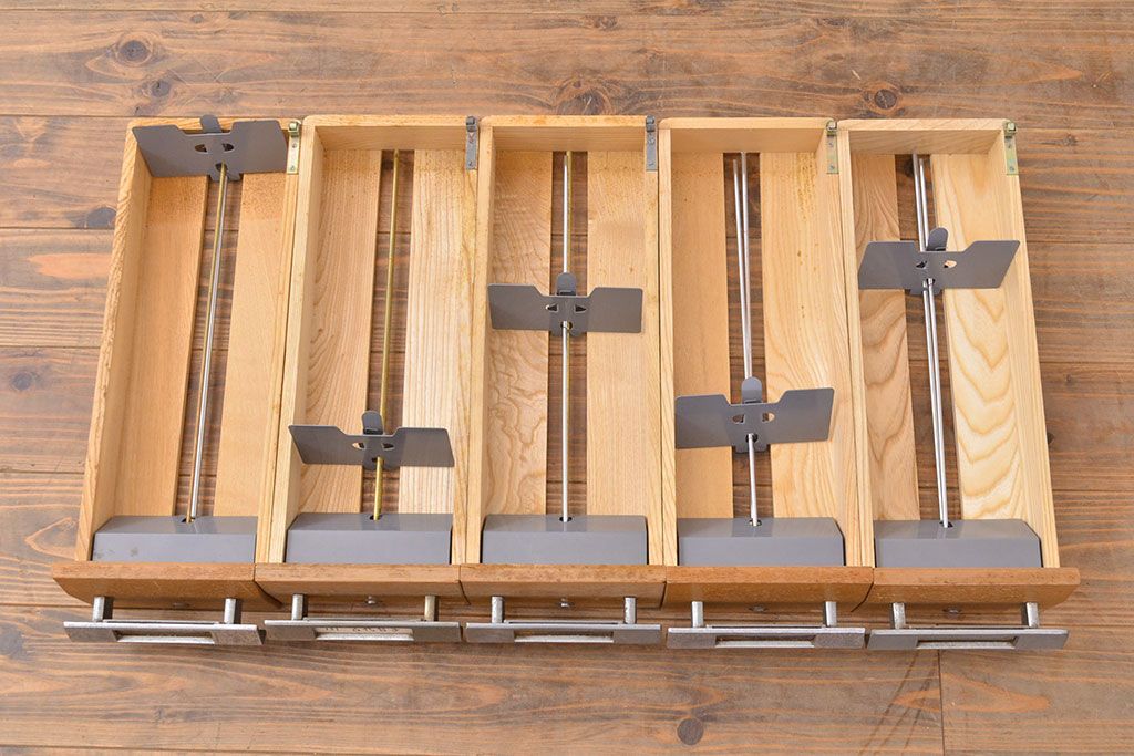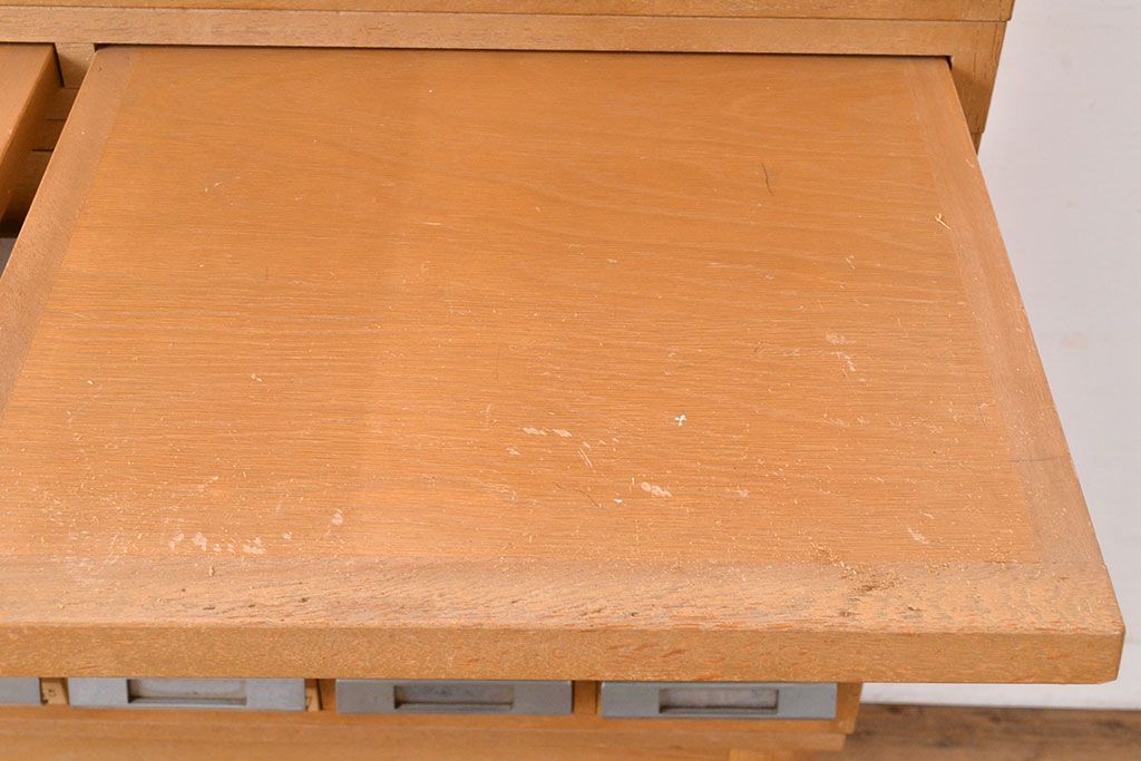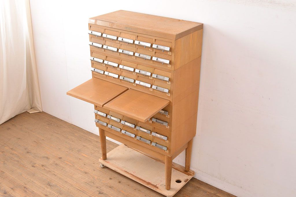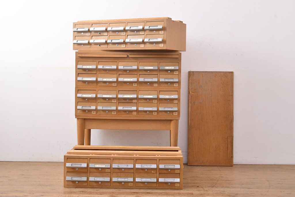 レトロ家具 昭和レトロ KIHARA 小物収納にうってつけのナラ材製ネームプレート付きカードケース(引き出し、チェスト、図書館、図書室)(R-049165)