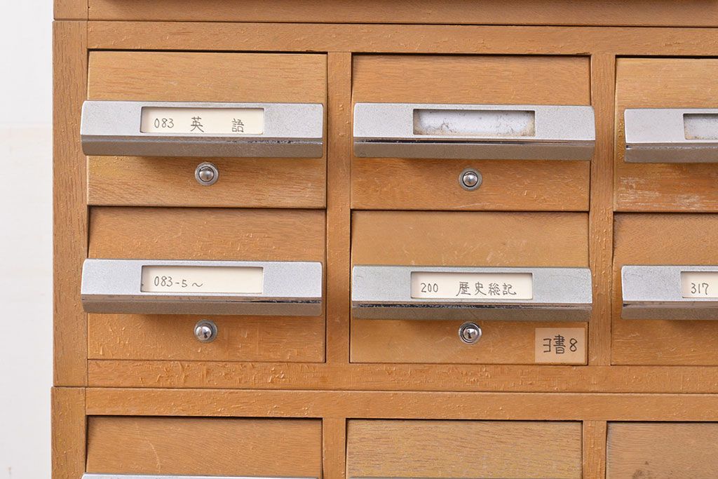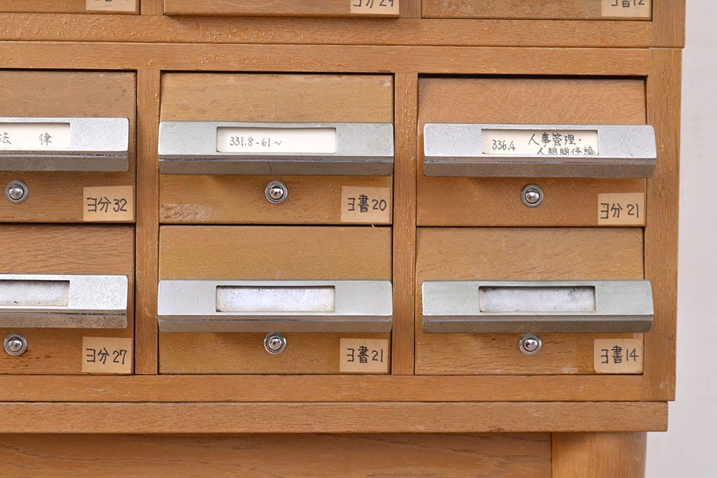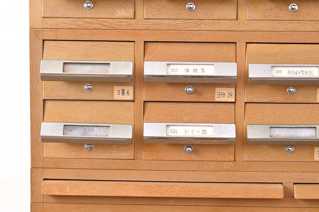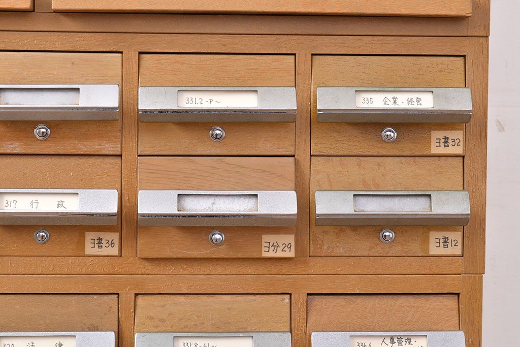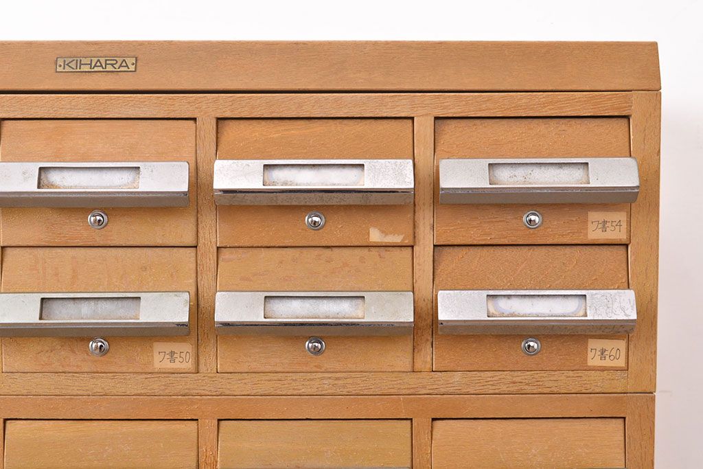 チェスト・引き出し > レトロ家具 昭和レトロ KIHARA 小物収納にうってつけのナラ材製ネームプレート付きカードケース(引き出し、チェスト、図書館、図書室)(R-049165)