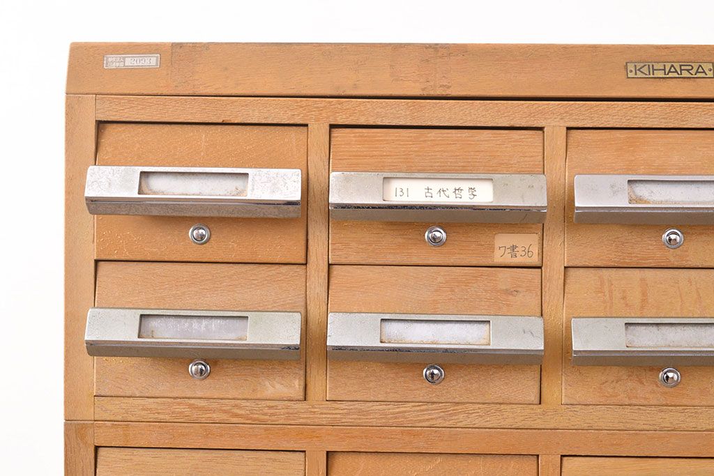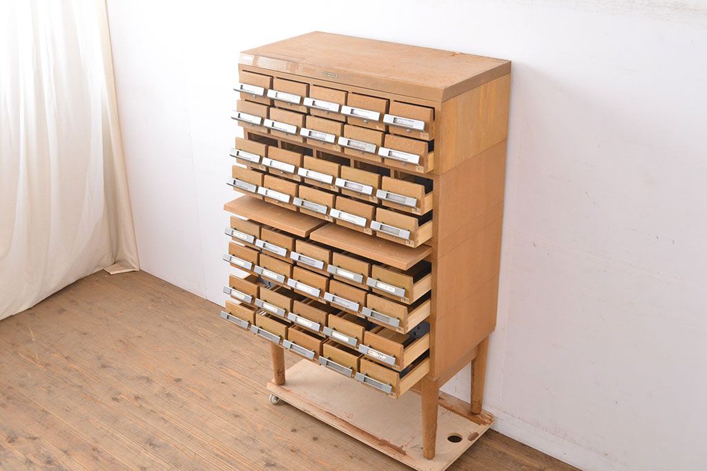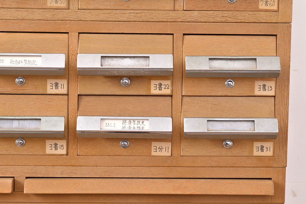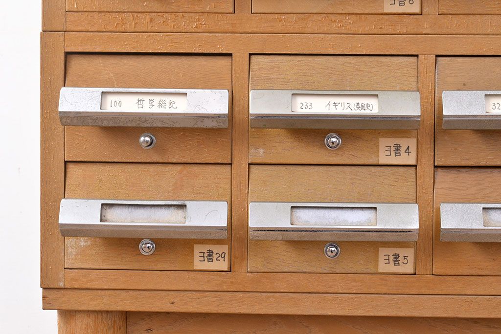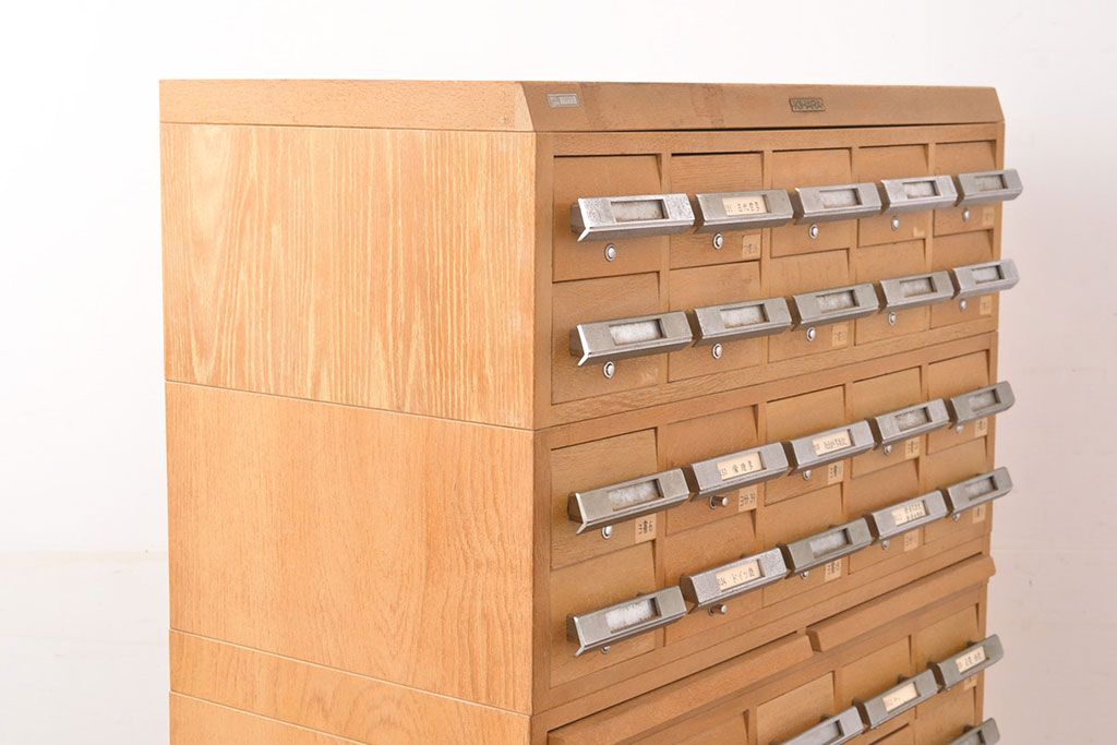 チェスト・引き出し > レトロ家具 昭和レトロ KIHARA 小物収納にうってつけのナラ材製ネームプレート付きカードケース(引き出し、チェスト、図書館、図書室)(R-049165)