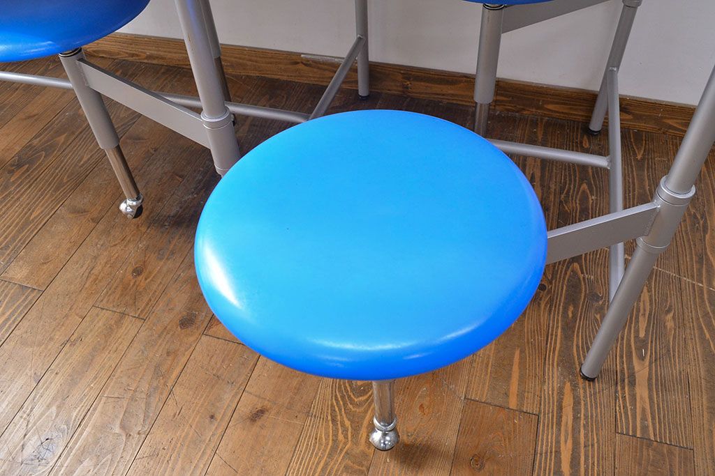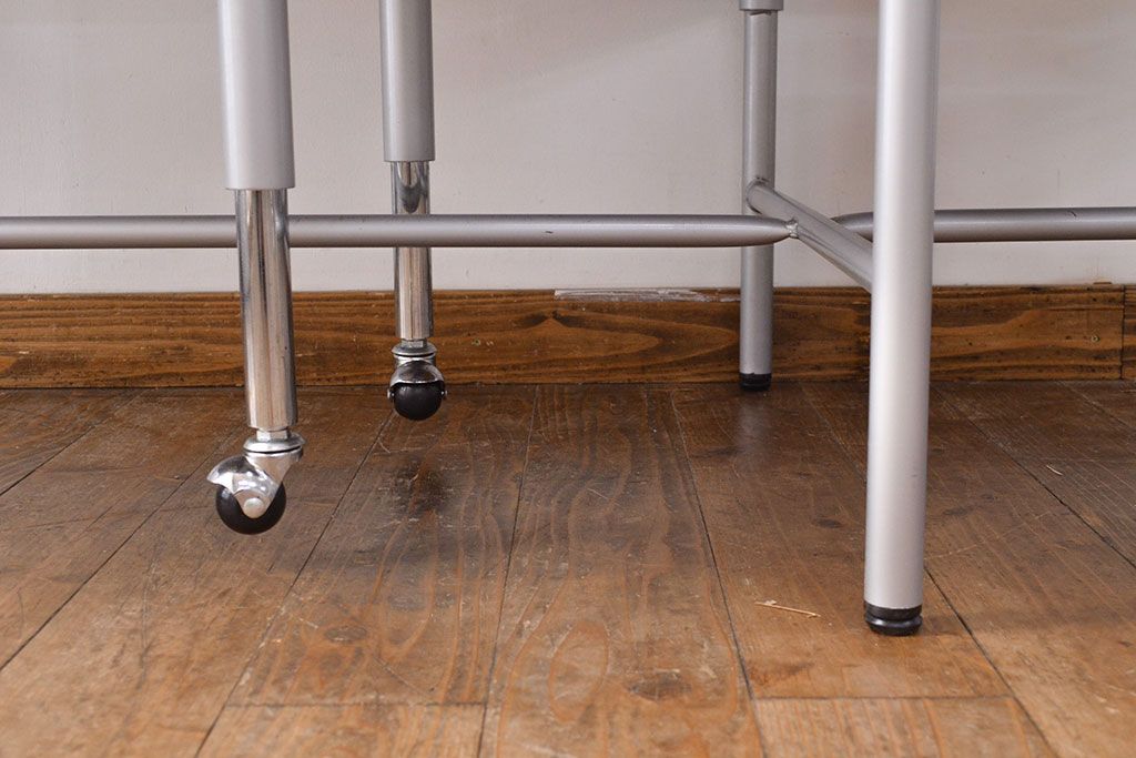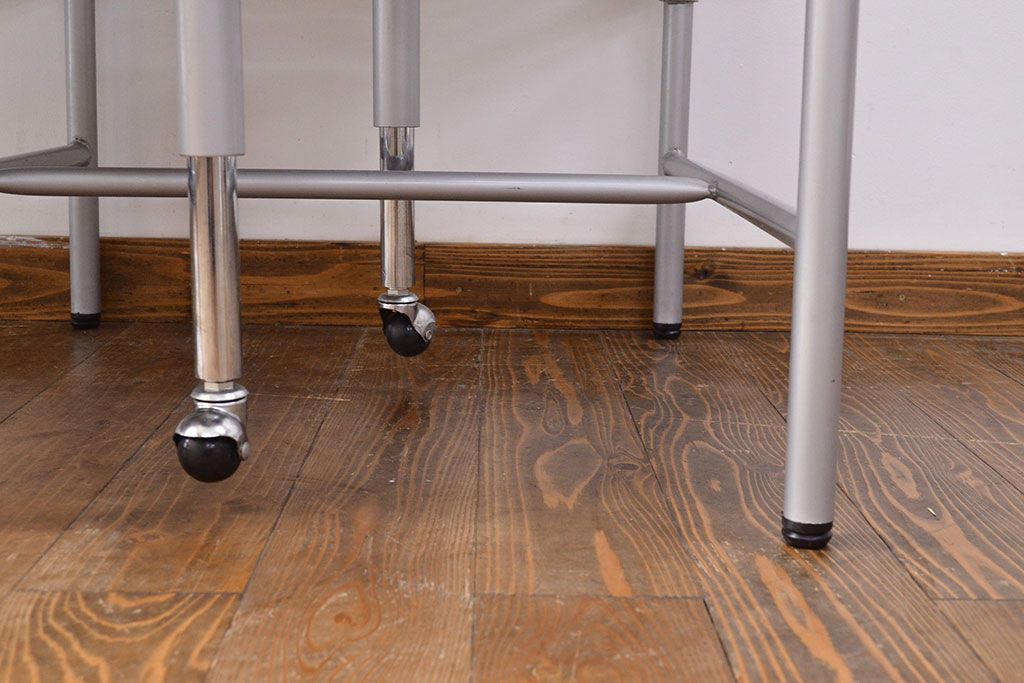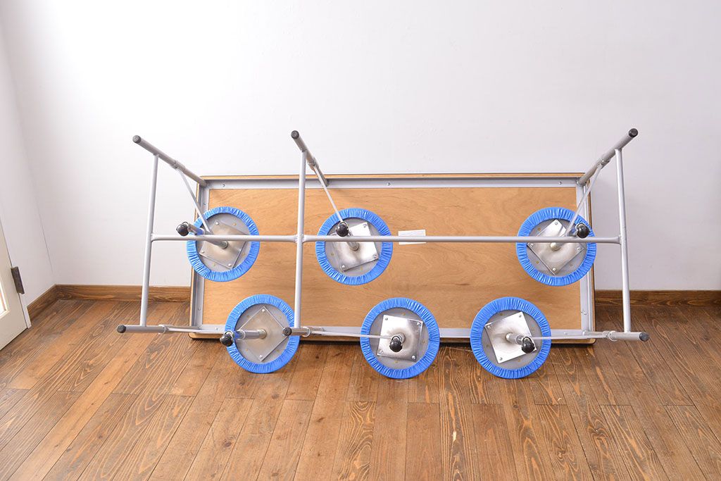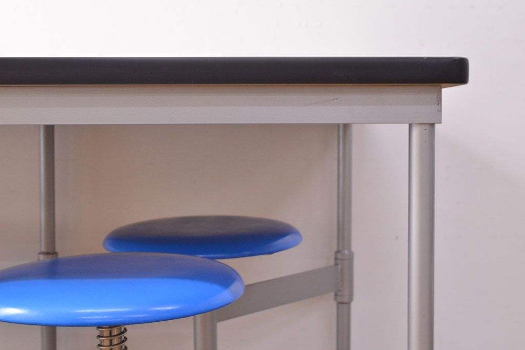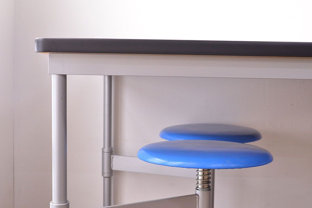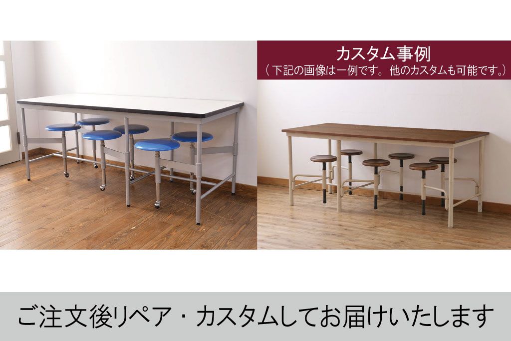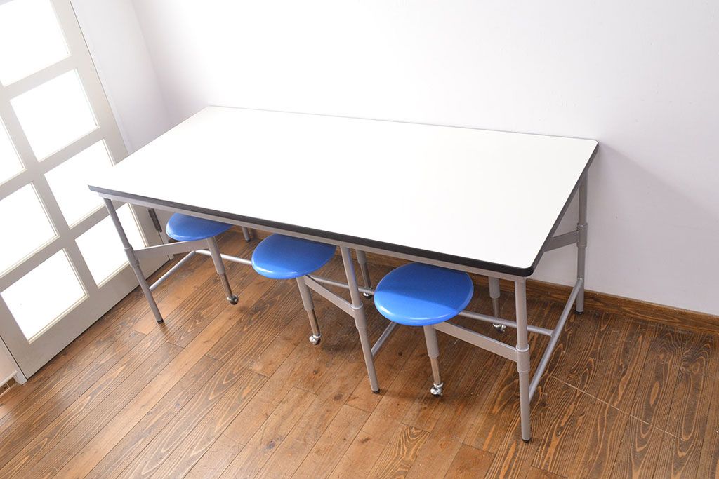 ラフジュ工房> テーブル> 鉄脚テーブル > 見た目のユニークさと機能性を兼ね備えた格納スツール6脚付きテーブル(6人用ダイニングテーブル、作業台)(R-049933)