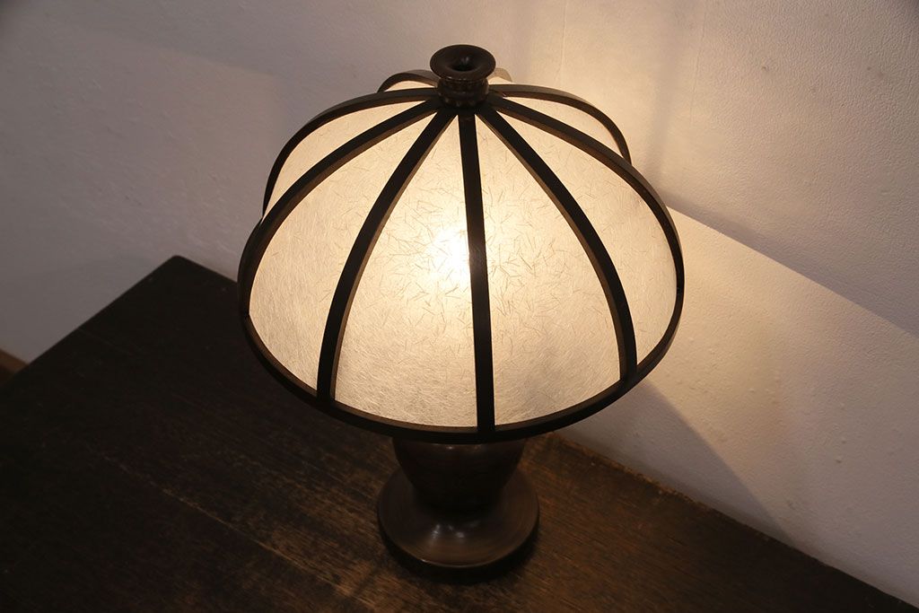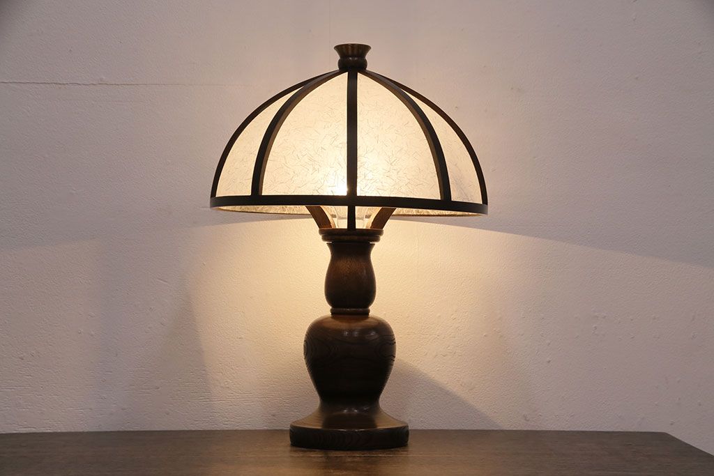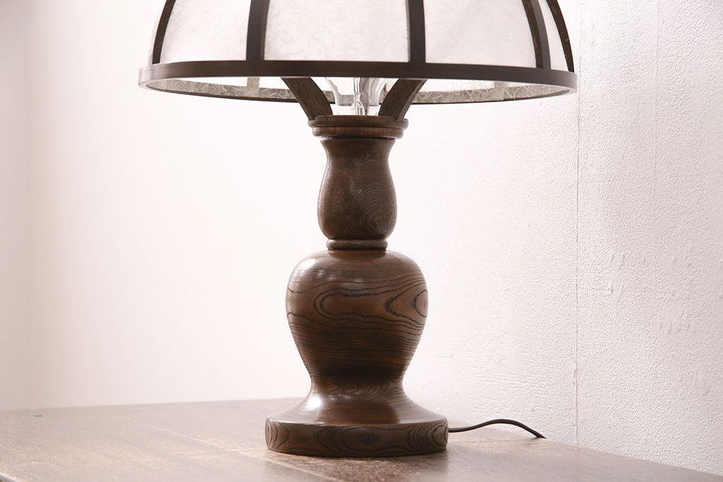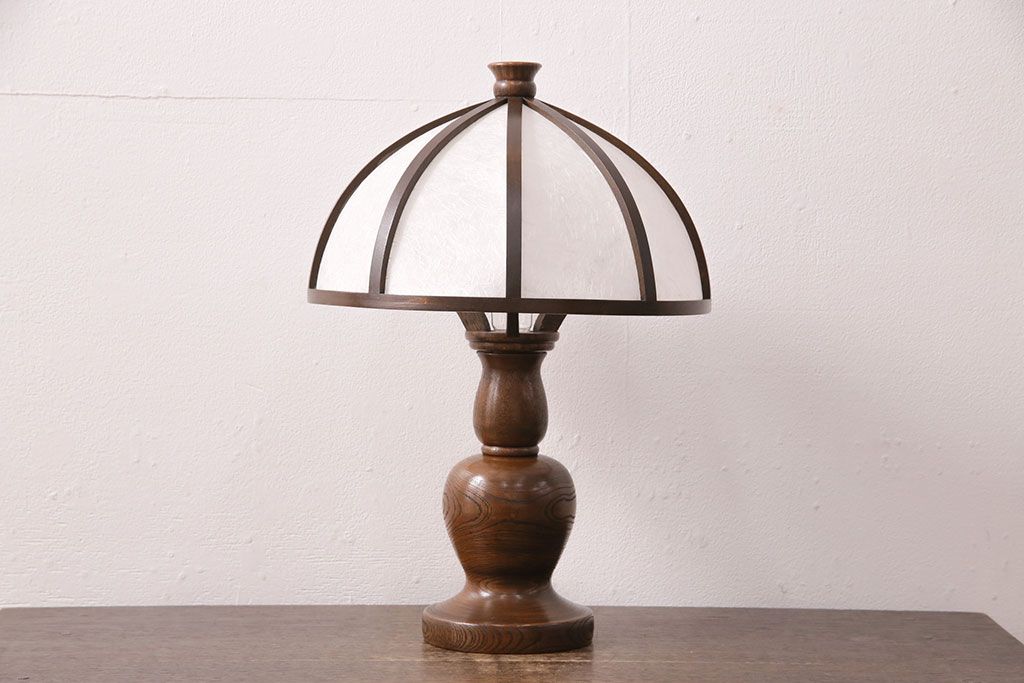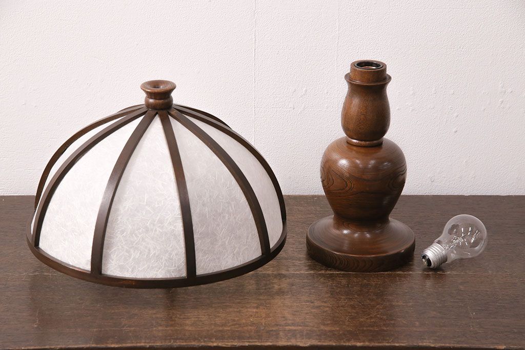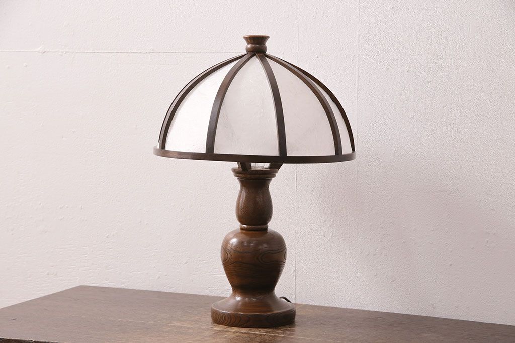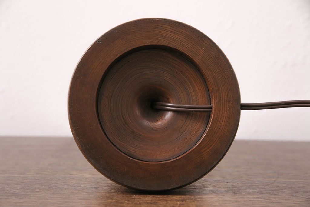 ラフジュ工房> 照明・ランプ> デスクライト・テーブルライト > 中古 たくみ工芸 ケヤキ・栗材 モダンな佇まいが魅力の丸傘電気スタンド(デスクスタンド、置き型照明、卓上照明)(R-050421)