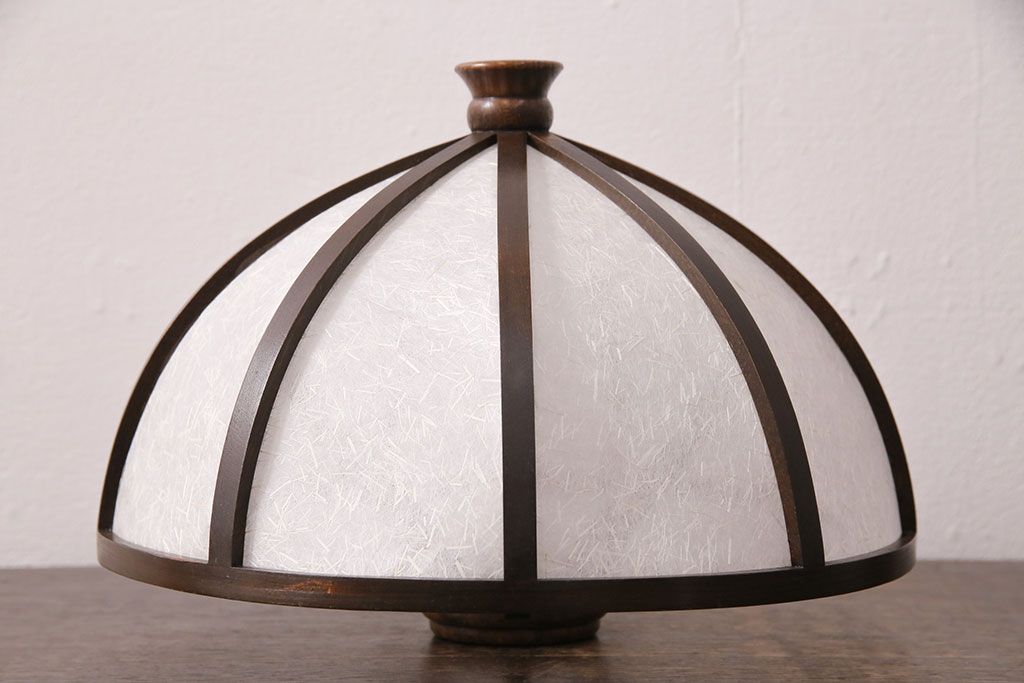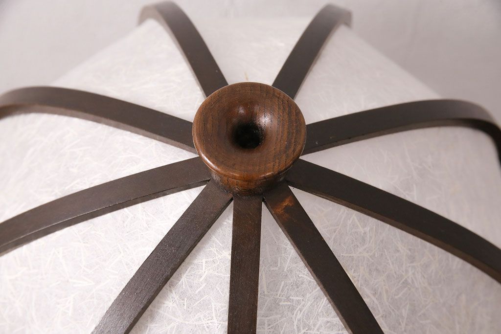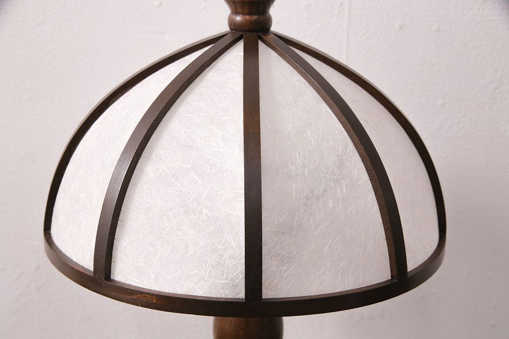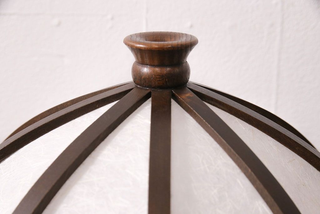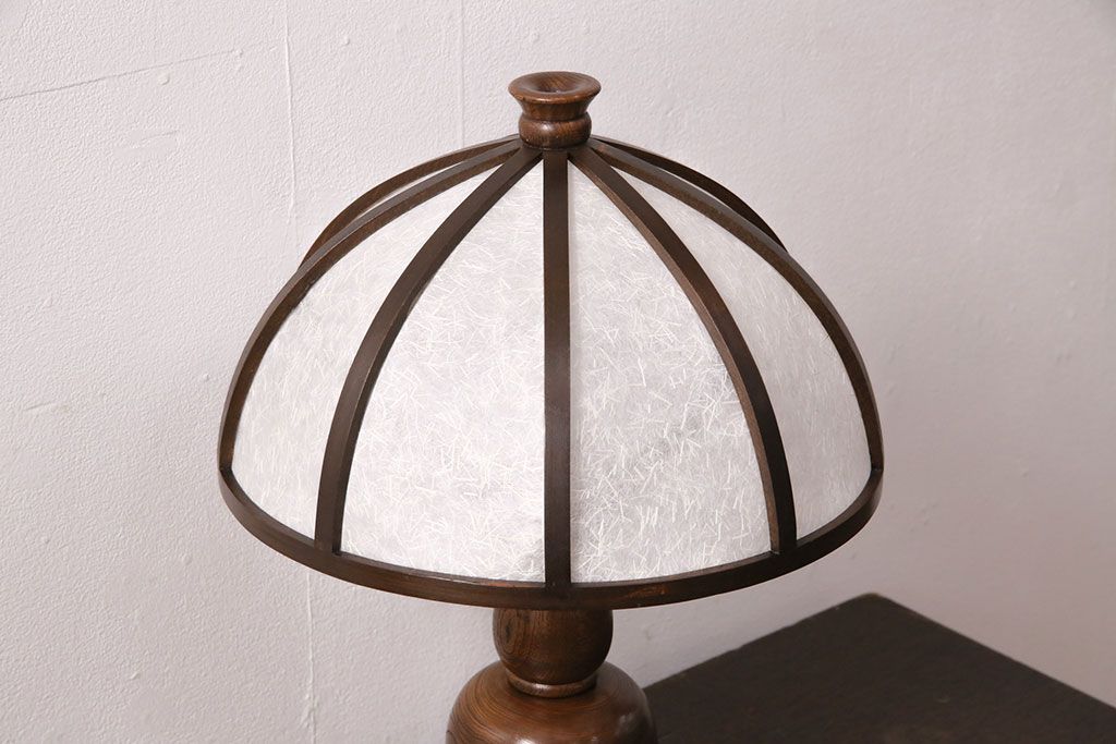 中古 たくみ工芸 ケヤキ・栗材 モダンな佇まいが魅力の丸傘電気スタンド(デスクスタンド、置き型照明、卓上照明)(R-050421)