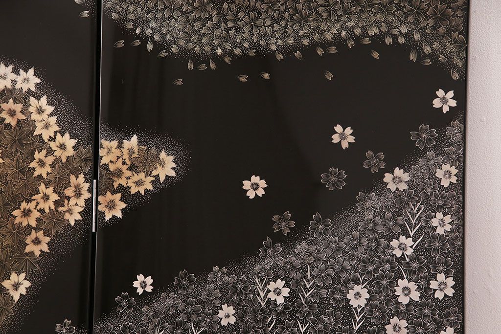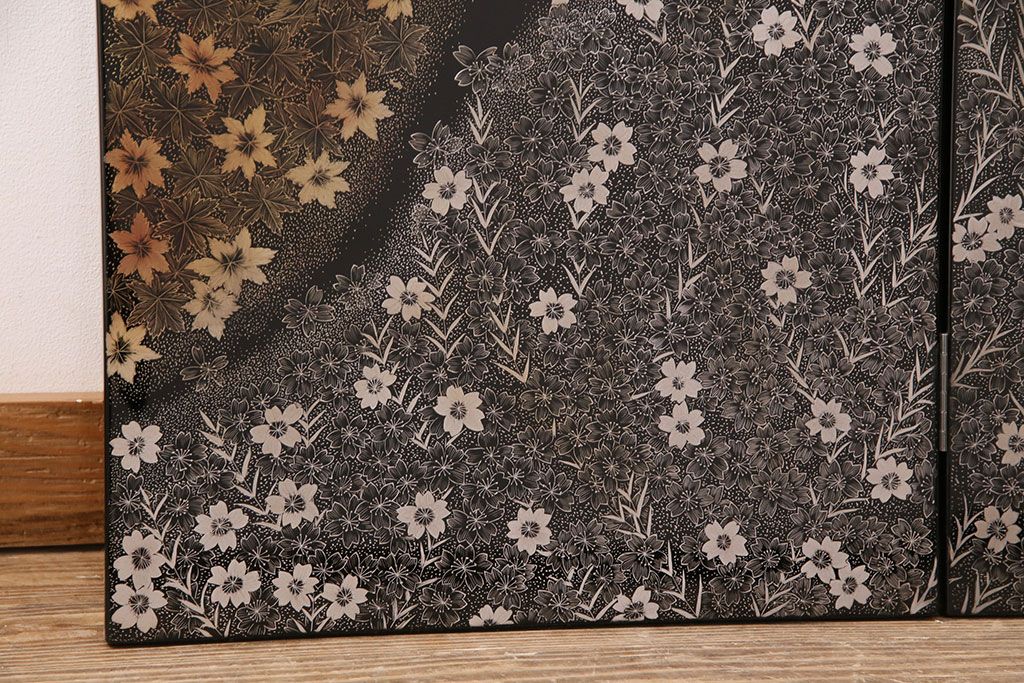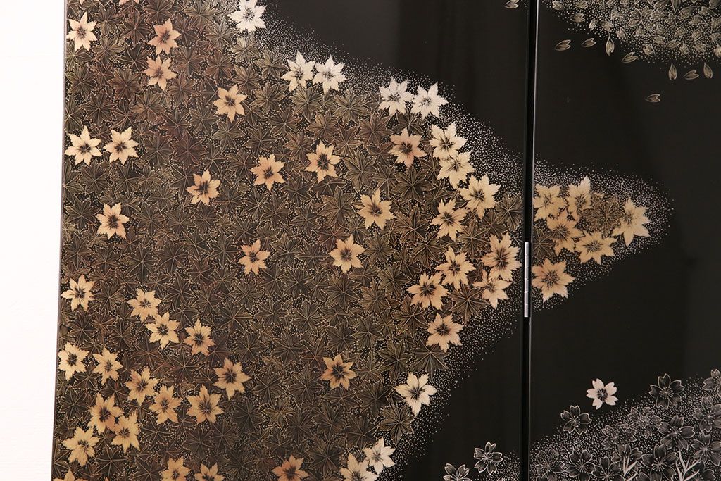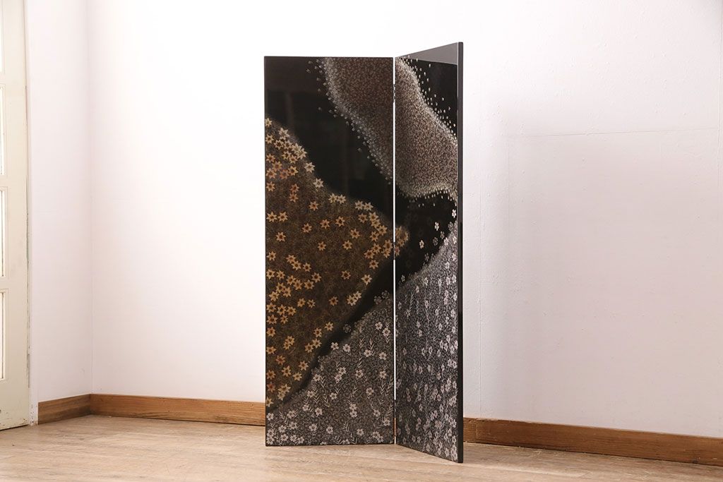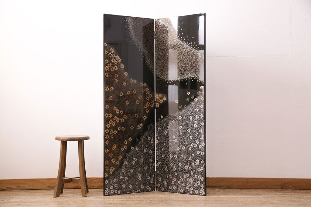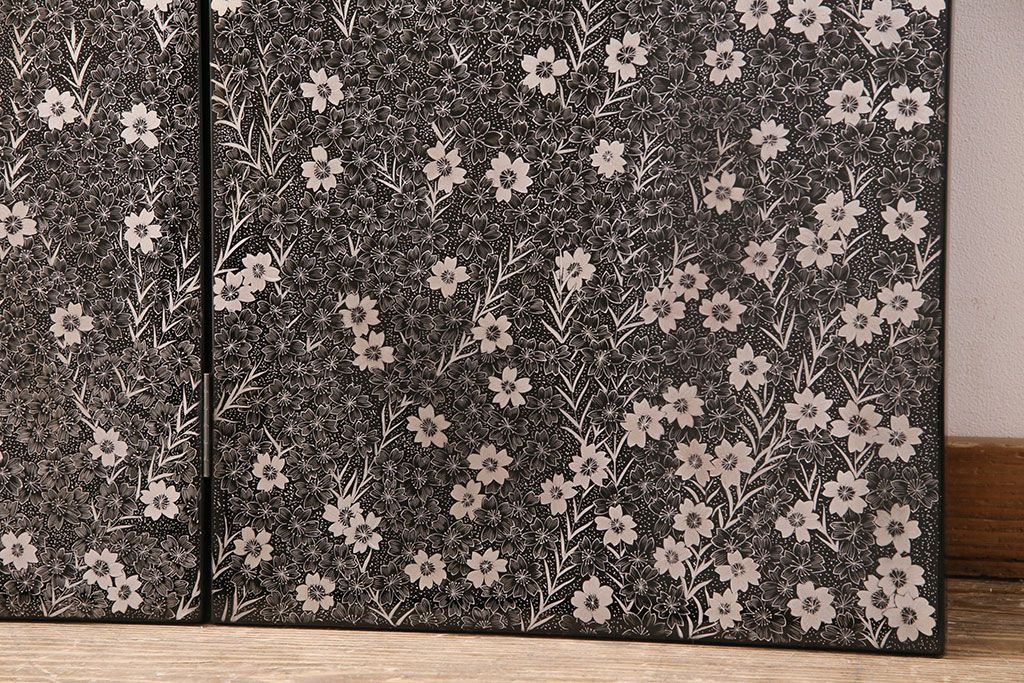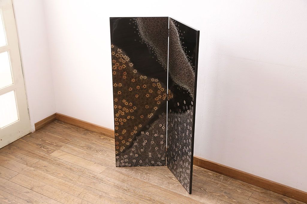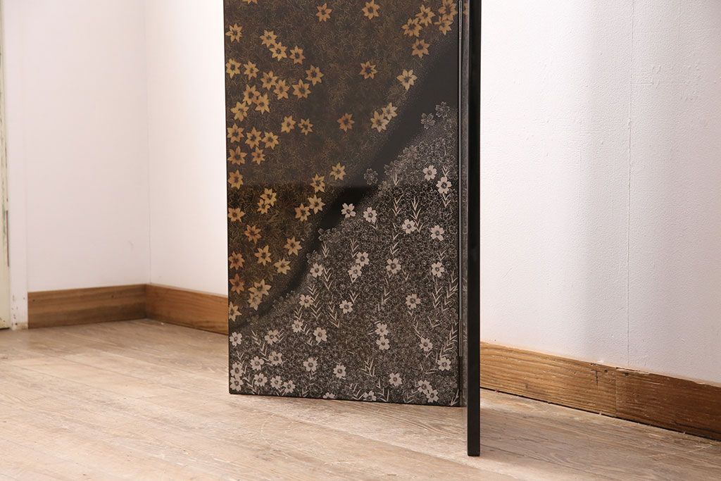 中古 美品 民芸家具 木曽塗り 3種の花の図柄が空間を彩る衝立(つい立て、パーテーション)(R-050410)