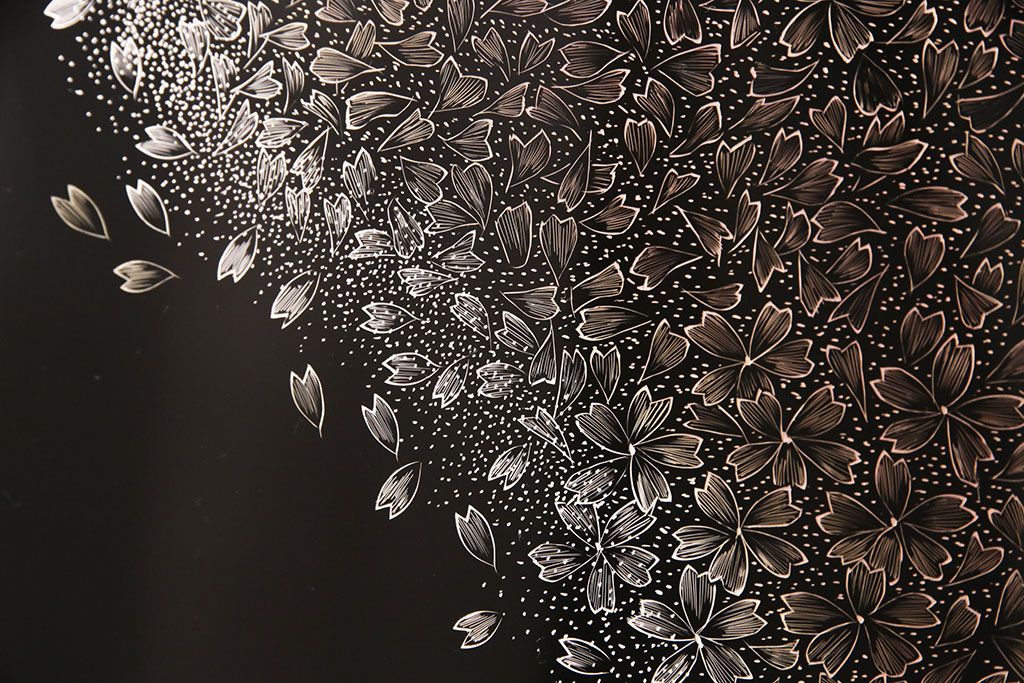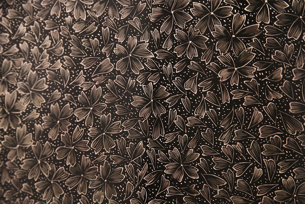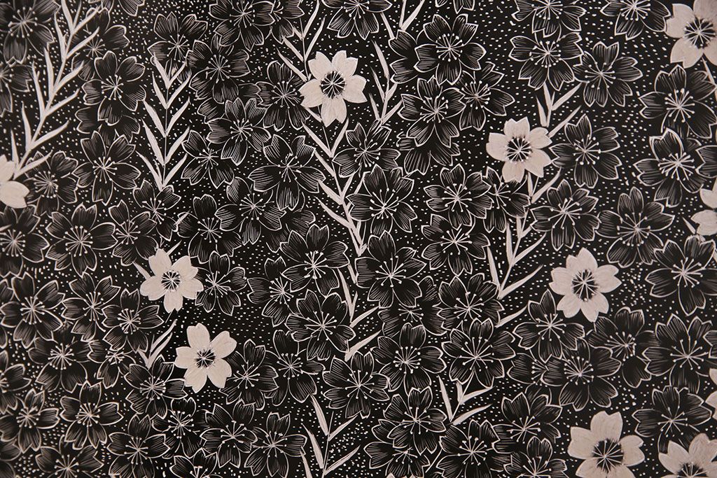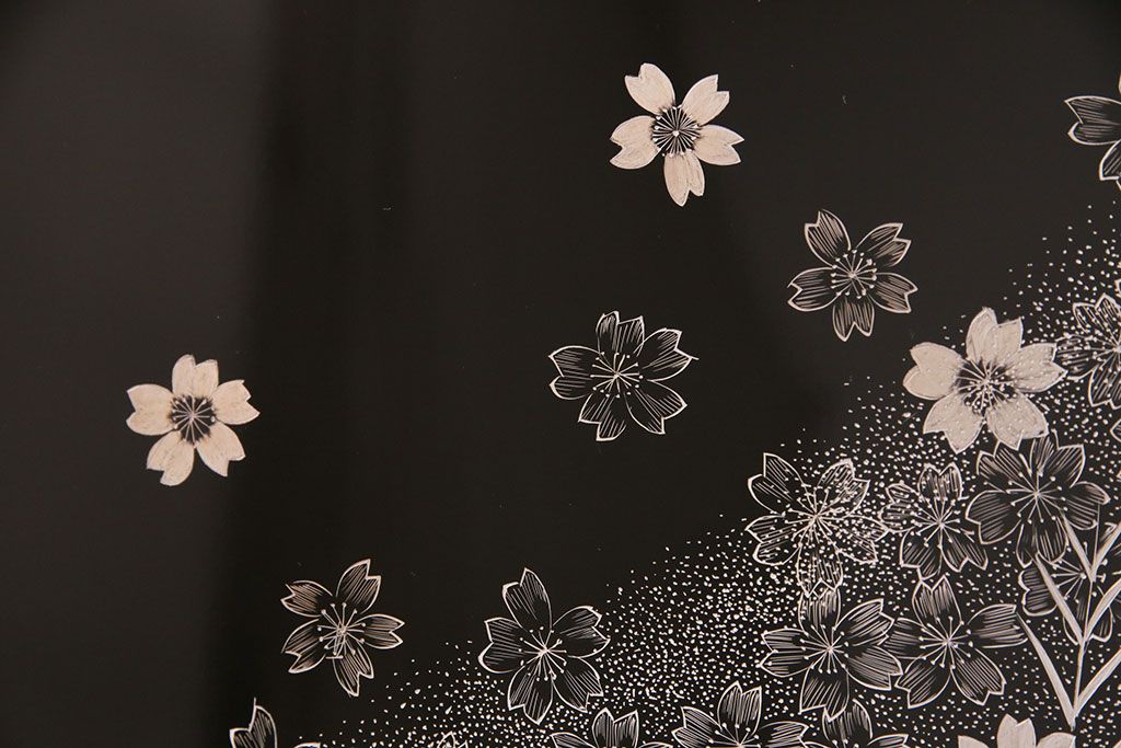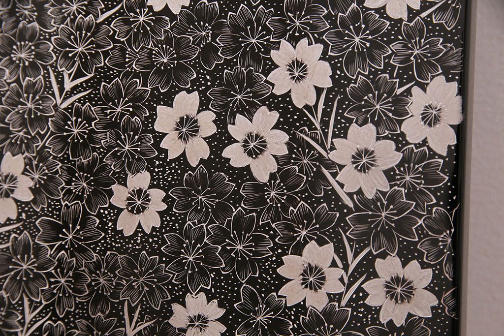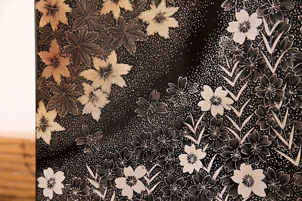 中古 美品 民芸家具 木曽塗り 3種の花の図柄が空間を彩る衝立(つい立て、パーテーション)(R-050410)です。
