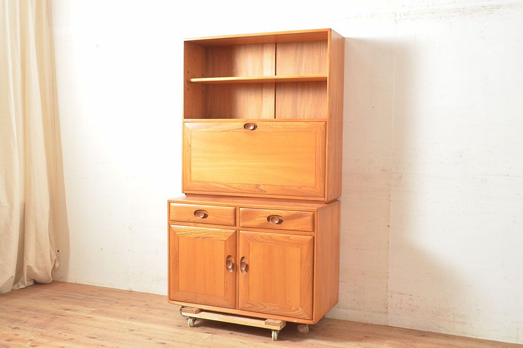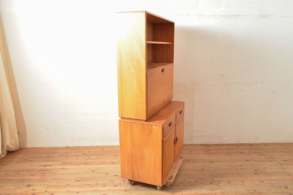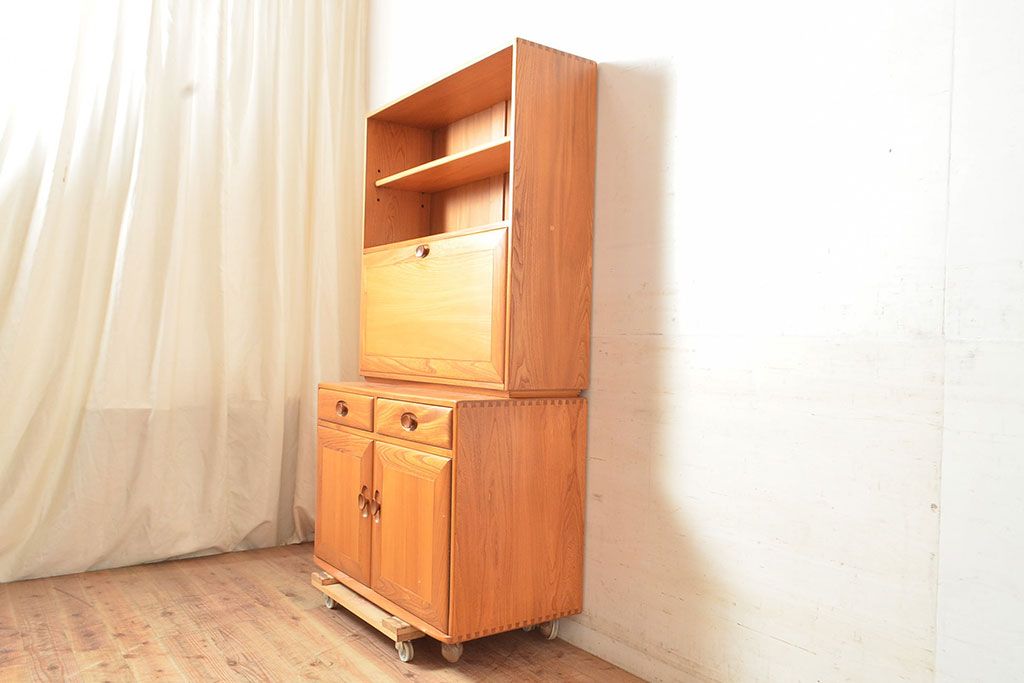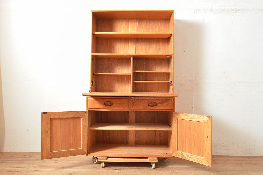 イギリスヴィンテージ ERCOL(アーコール) ニレ材製のキャビネット(カップボード、食器棚、収納棚、ビンテージ、飾り棚、陳列棚)(R-050208)