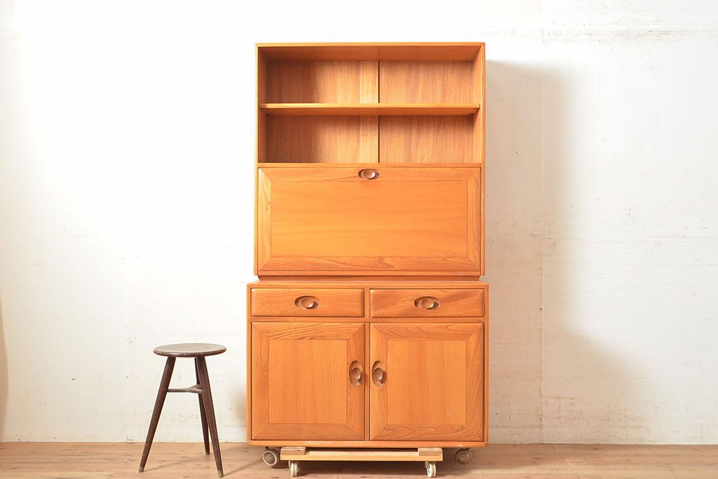 ラフジュ工房> オープンラック・シェルフ> ディスプレイラック > イギリスヴィンテージ ERCOL(アーコール) ニレ材製のキャビネット(カップボード、食器棚、収納棚、ビンテージ、飾り棚、陳列棚)(R-050208)