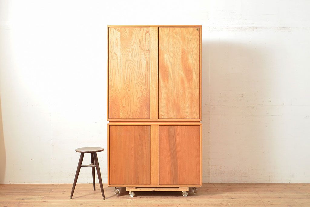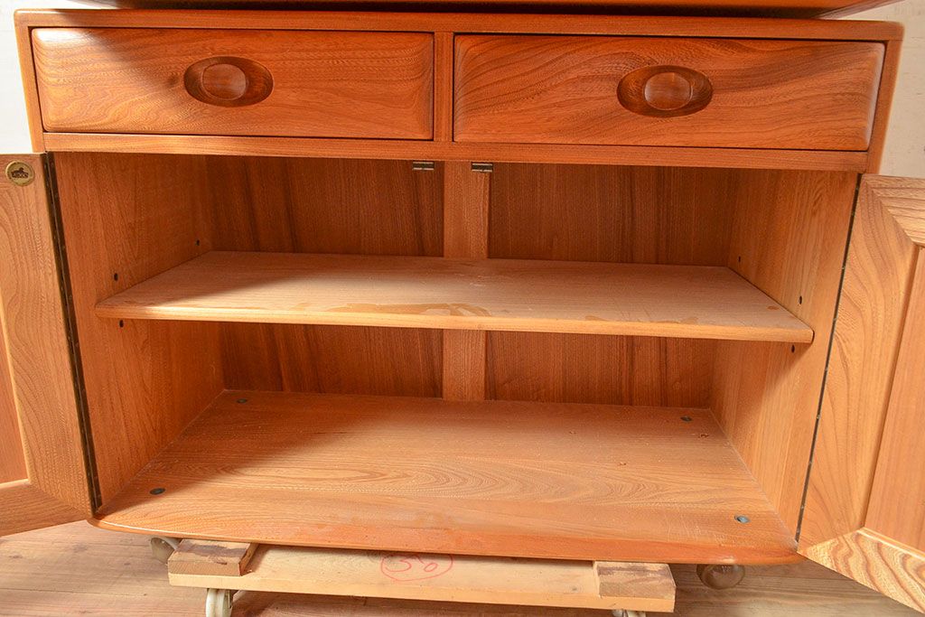 ラフジュ工房> キャビネット・戸棚> 食器棚・カップボード > イギリスヴィンテージ ERCOL(アーコール) ニレ材製のキャビネット(カップボード、食器棚、収納棚、ビンテージ、飾り棚、陳列棚)(R-050208)