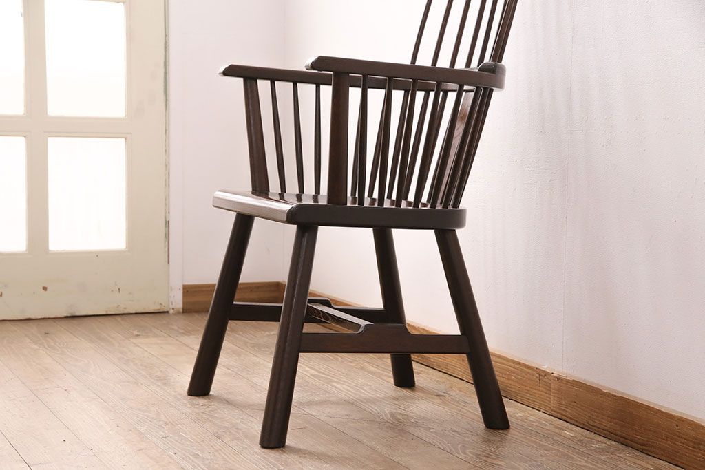 椅子・ベンチ> ダイニングチェア > 中古 美品 松本民芸家具 こだわりのインテリアにおすすめ!総ケヤキ材製のコムバックアームチェア(板座チェア、椅子、ダイニングチェア)(R-050411)