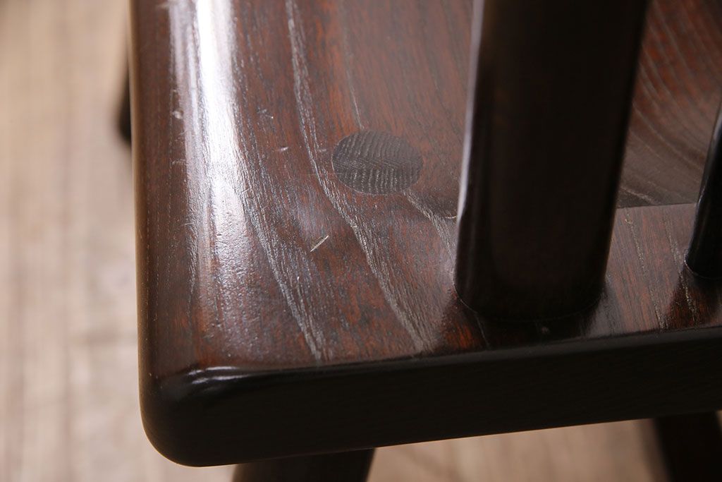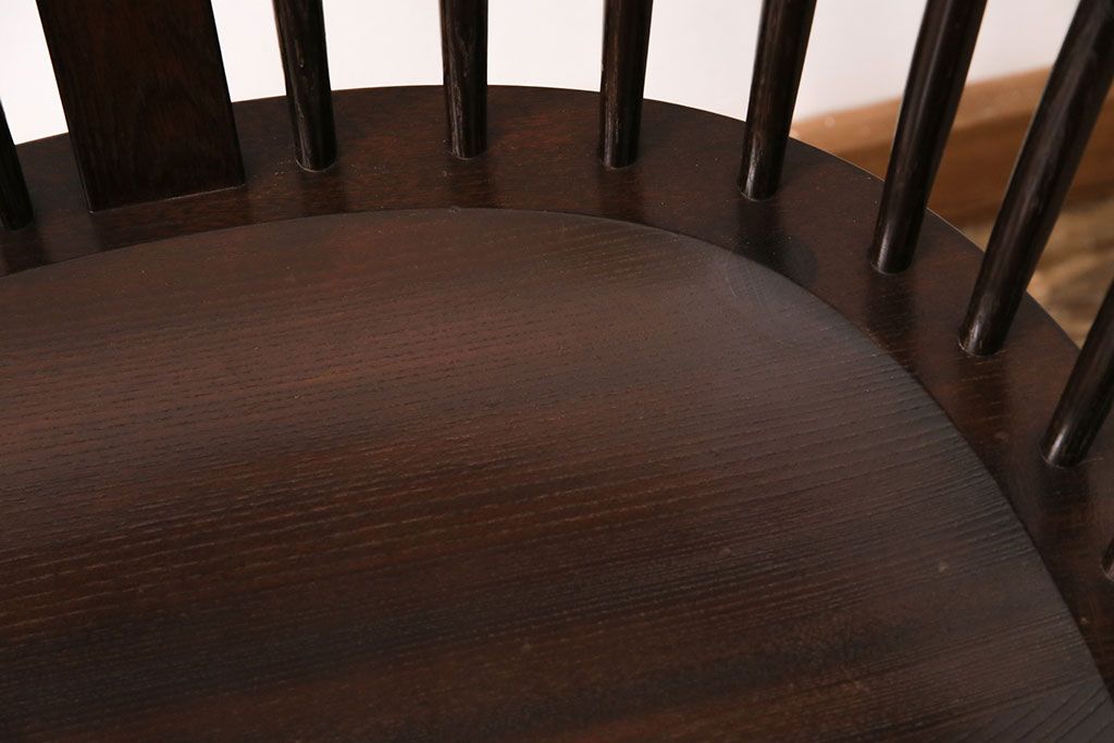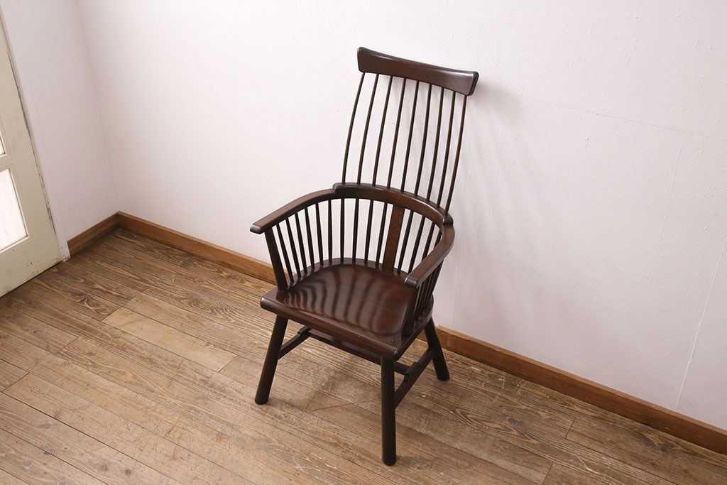 中古 美品 松本民芸家具 こだわりのインテリアにおすすめ!総ケヤキ材製のコムバックアームチェア(板座チェア、椅子、ダイニングチェア)(R-050411)です。
