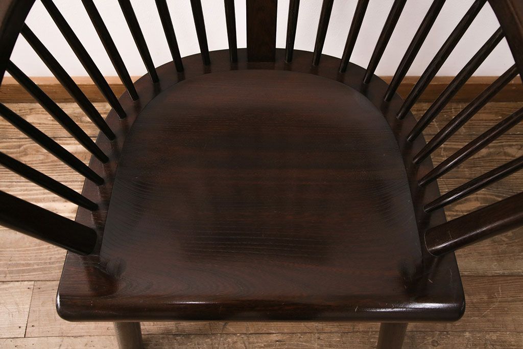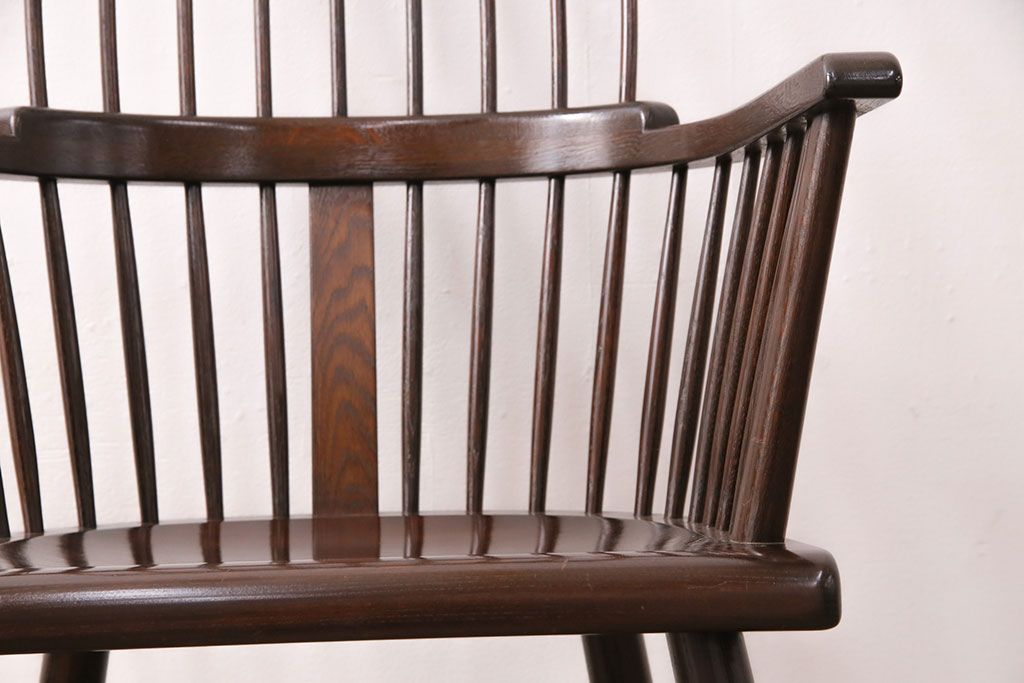 民芸家具 > 中古 美品 松本民芸家具 こだわりのインテリアにおすすめ!総ケヤキ材製のコムバックアームチェア(板座チェア、椅子、ダイニングチェア)(R-050411)