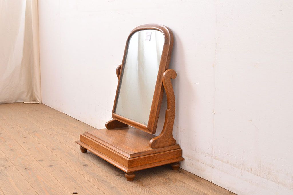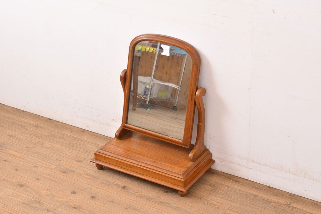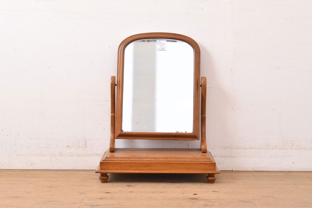 鏡 > イギリスヴィンテージ チーク材 ナチュラルな雰囲気漂う卓上ミラー(鏡、置き鏡、ビンテージ)(R-050231)