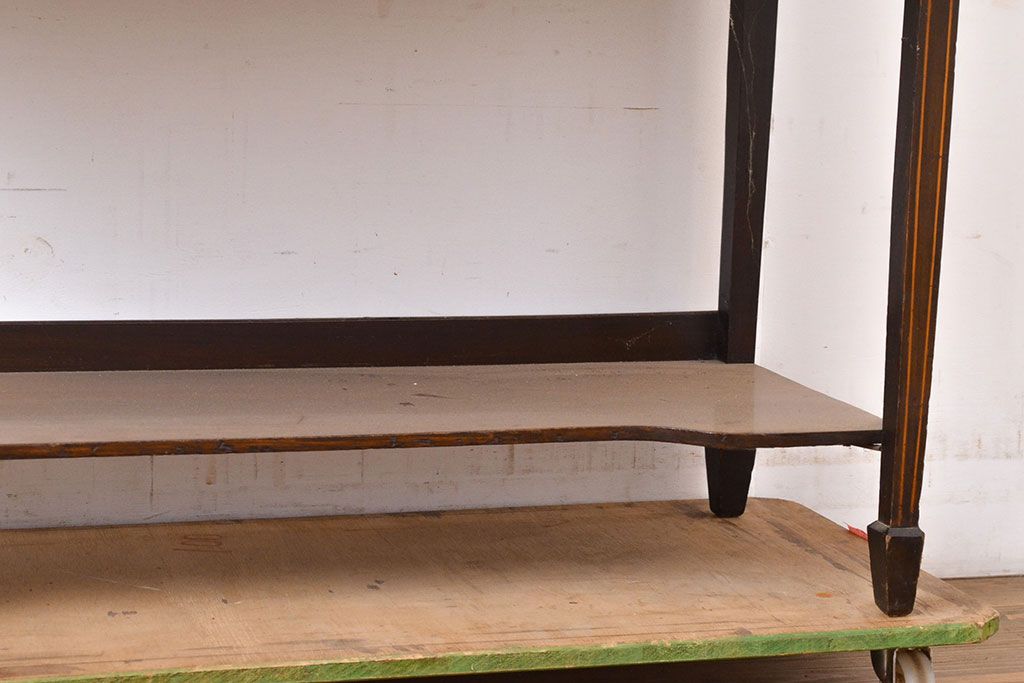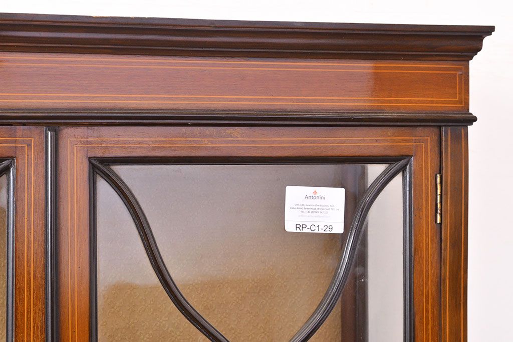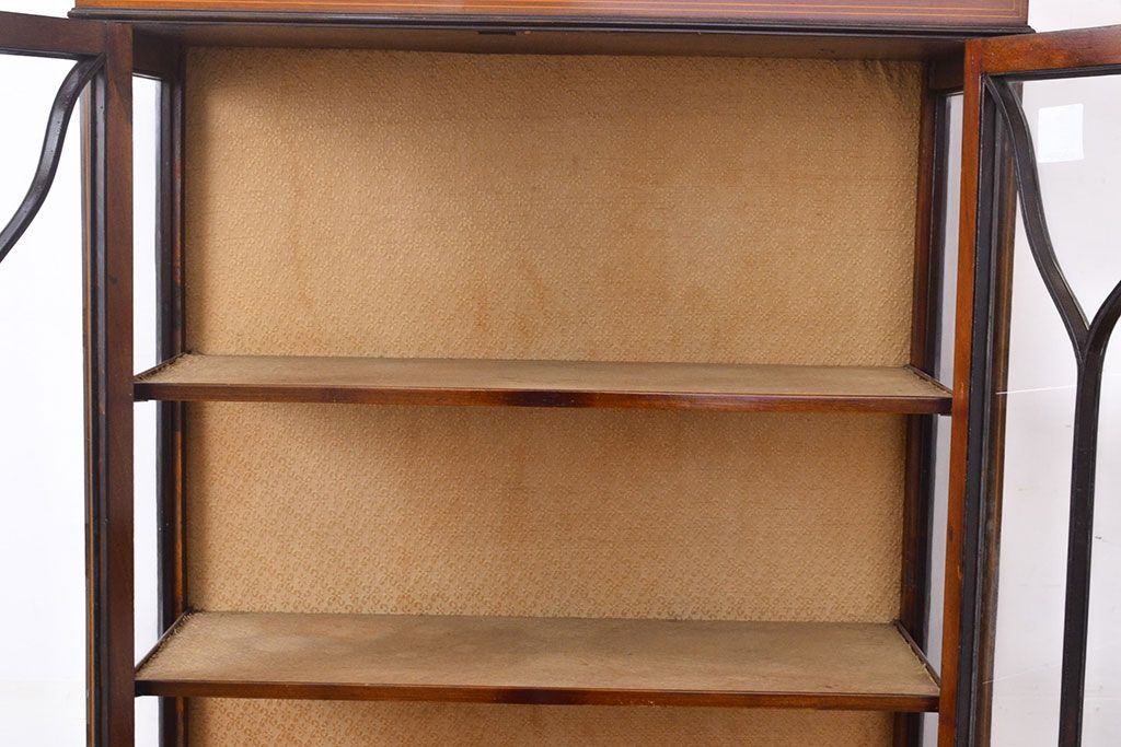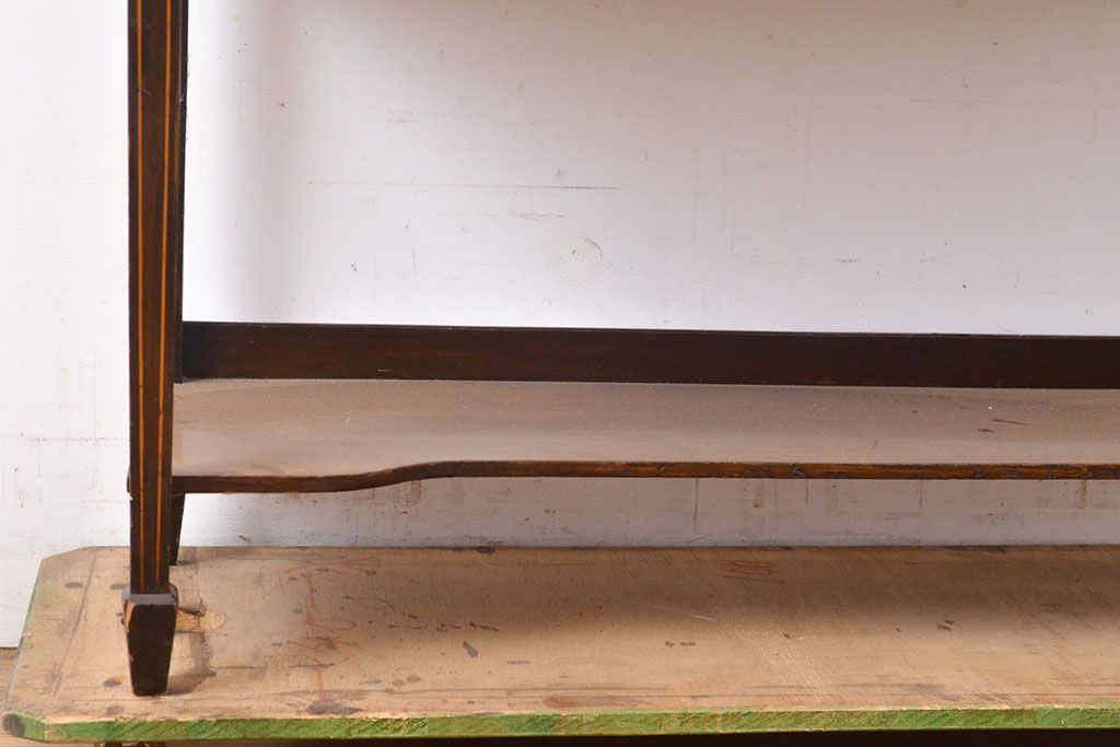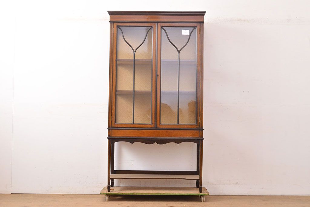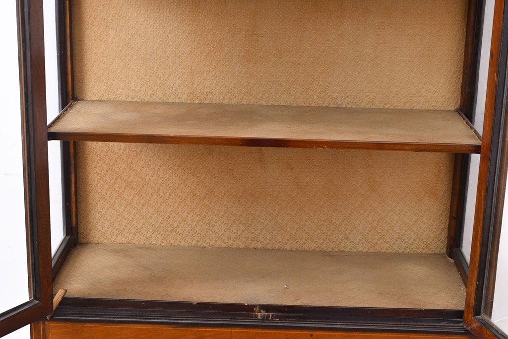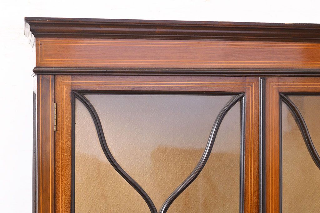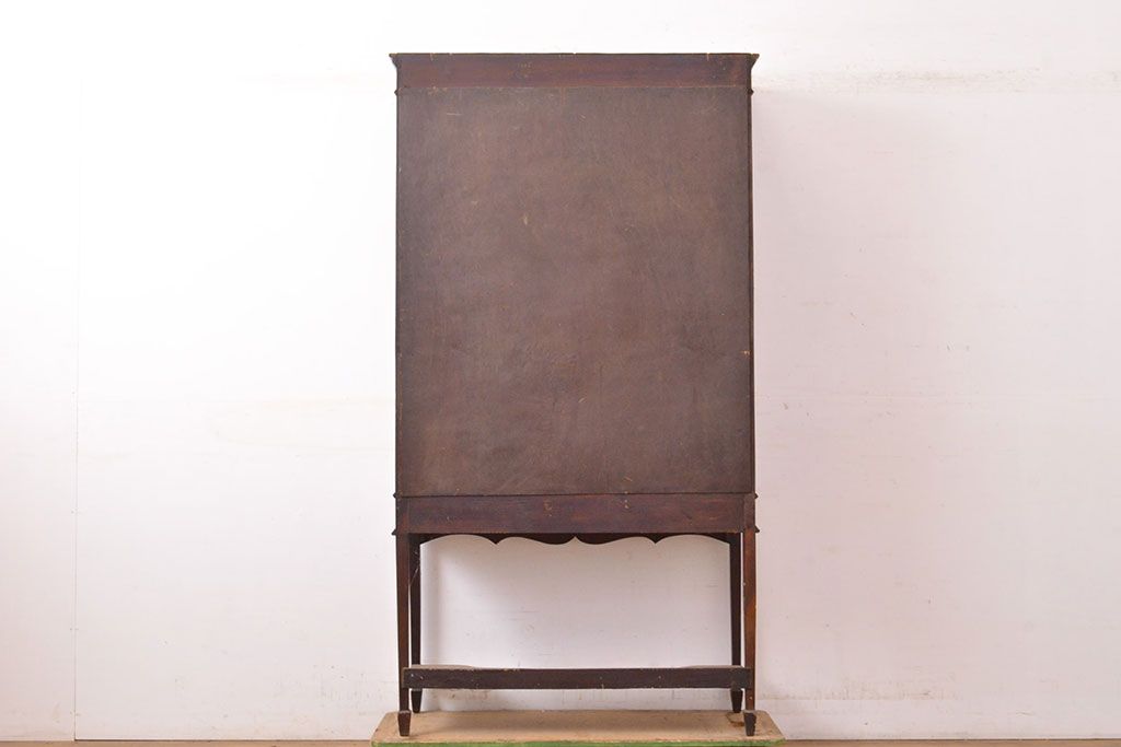 イギリスアンティーク 象嵌入り! シャープな雰囲気の飾り棚(ガラスケース、ショーケース、キャビネット)(R-050241)